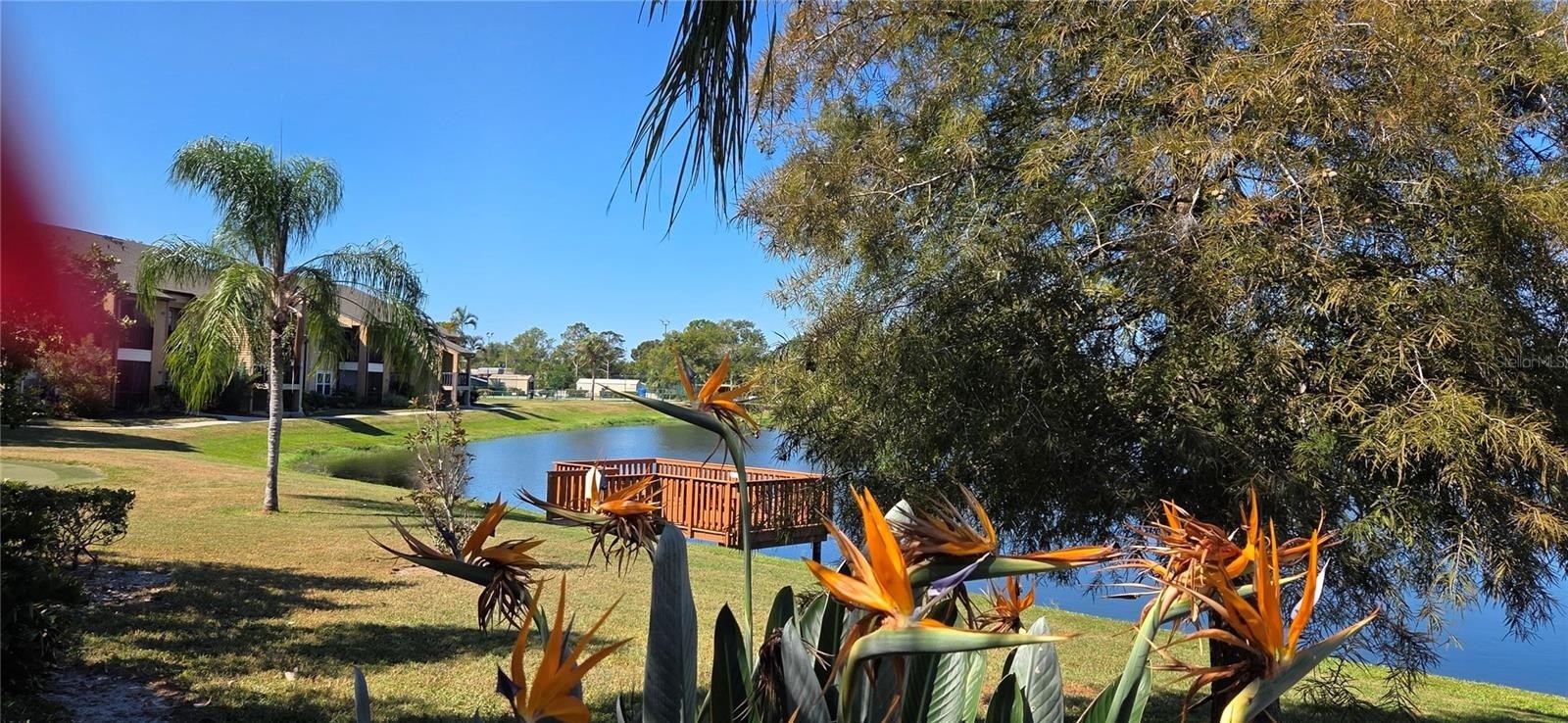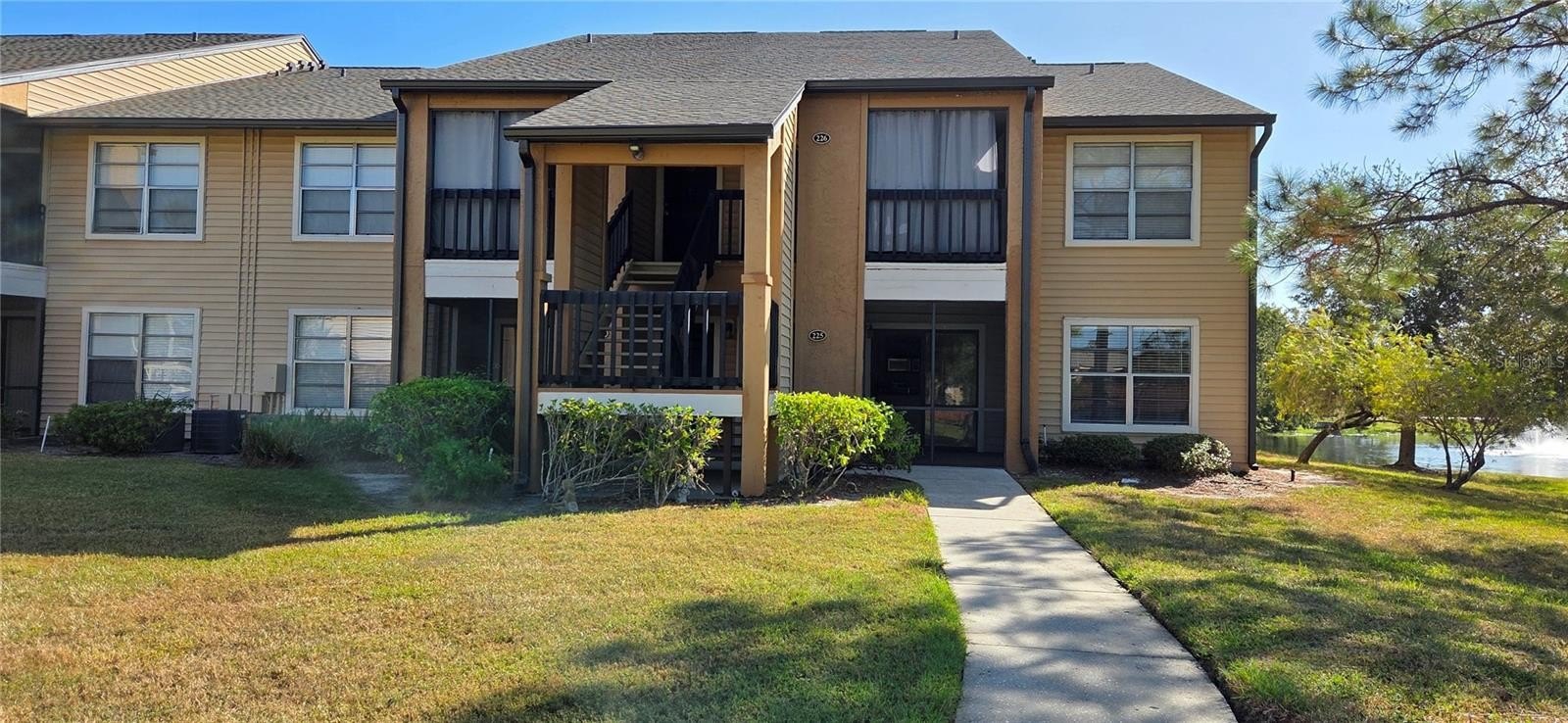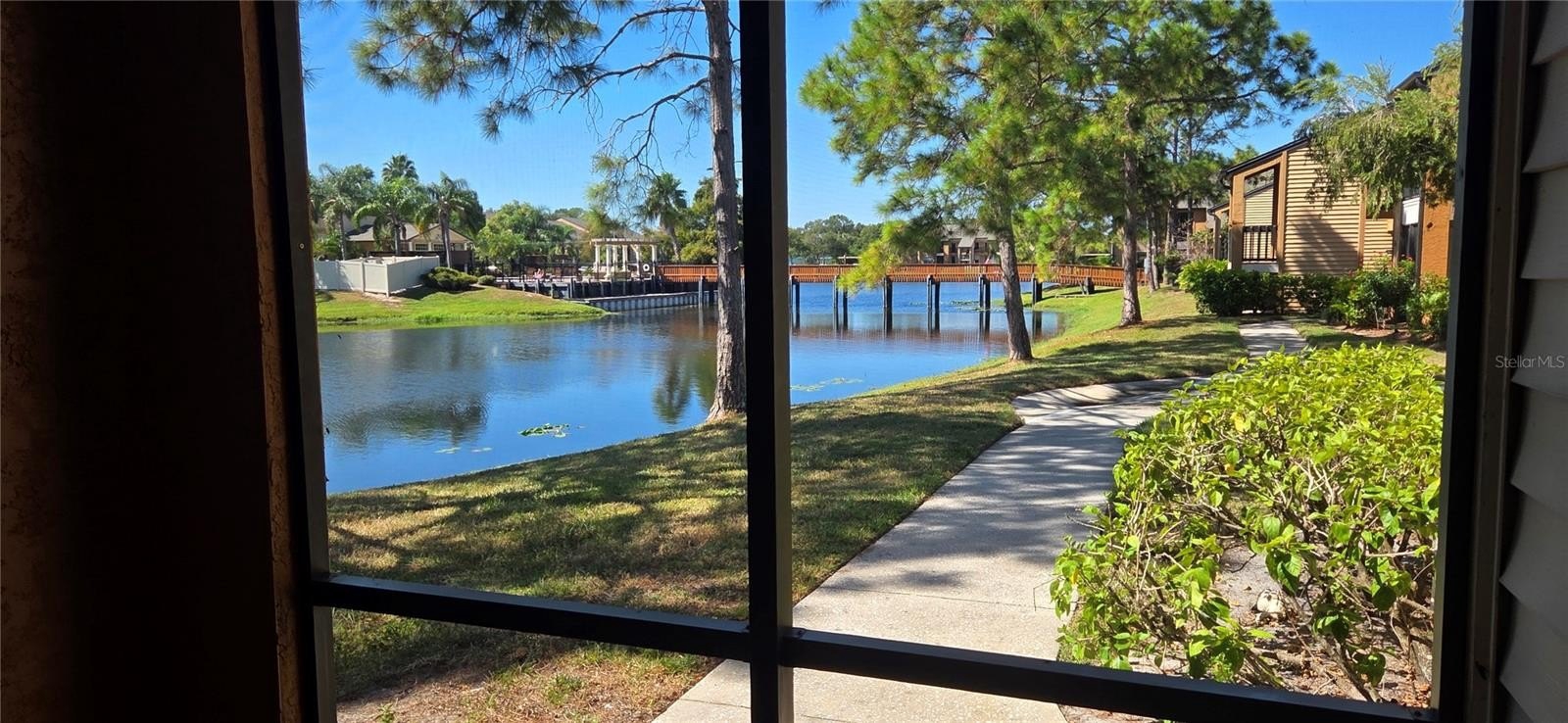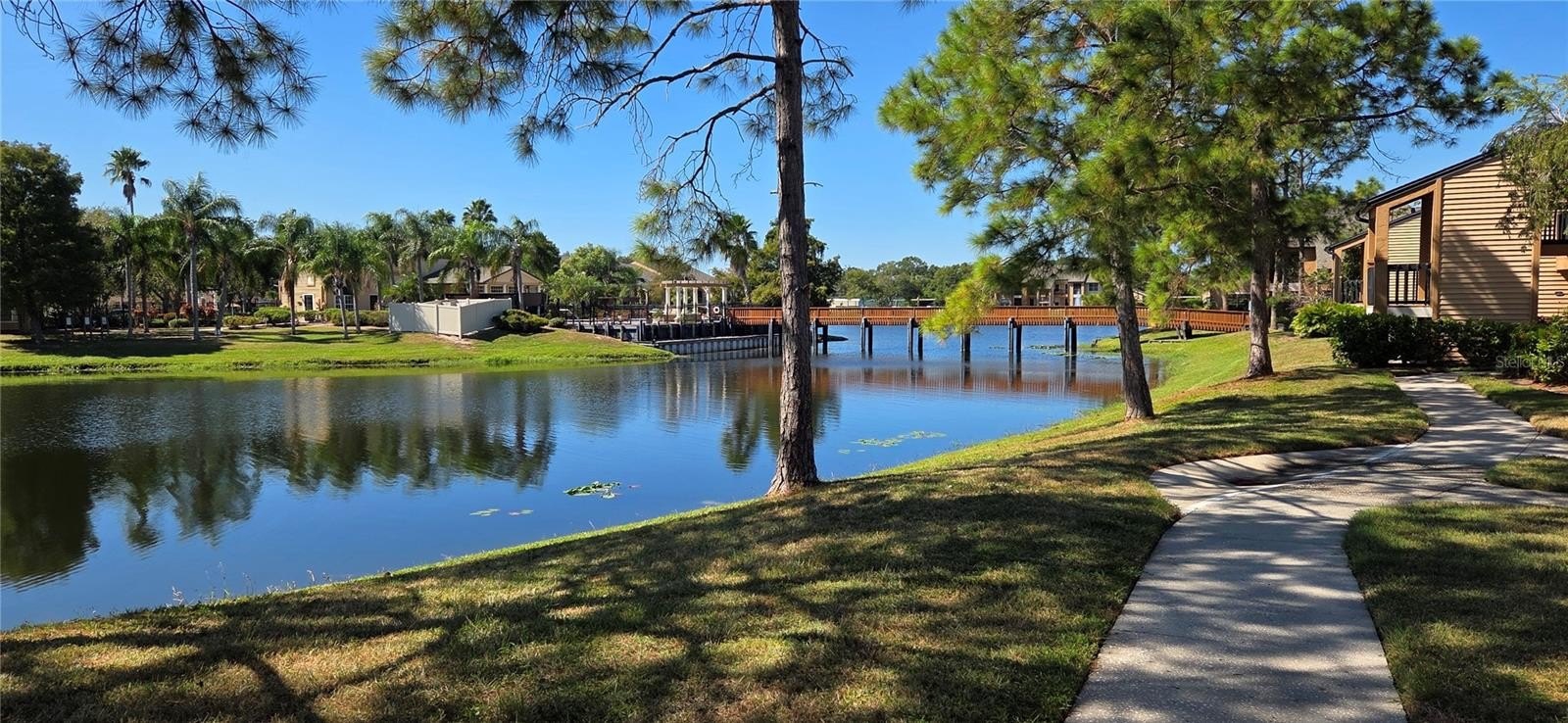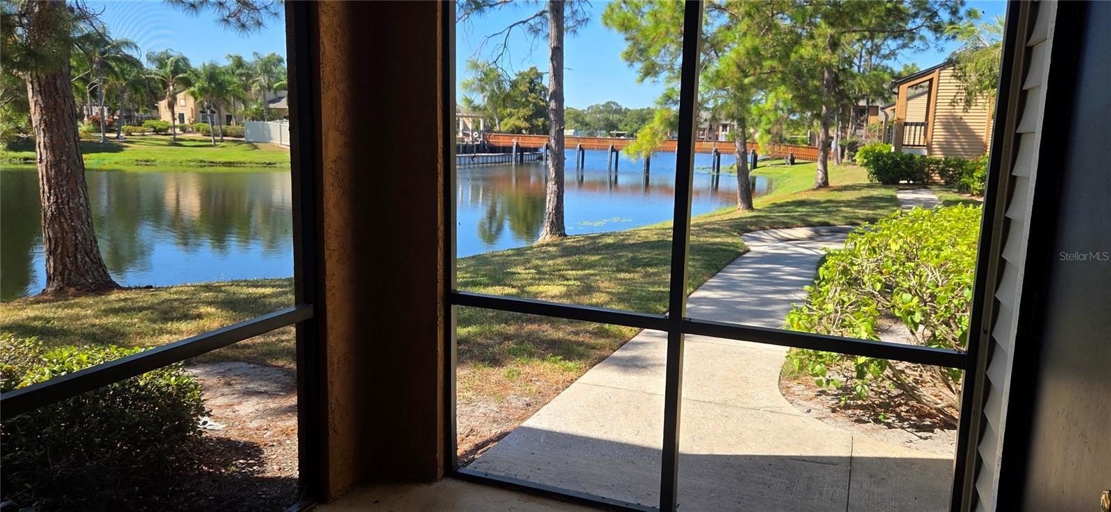 This charming 1 bedroom, 1 bath ground floor corner unit condo has an updated kitchen with stainless steel appliances, granite counters in the kitchen and bathroom, track lighting, ceiling fans, washer and dryer, storage closet on the screened in patio with views of the lake. Assigned covered parking. Newly painted, popcorn ceilings removed and new luxury vinyl plank flooring. The gated community of Bal Harbour with a clubhouse, community pool, fitness center, tennis courts, outside grills, volleyball court, putting green, fishing pier is centrally located to everything. Great primary residence or investment property. Pets are welcome. Call today and schedule a showing.