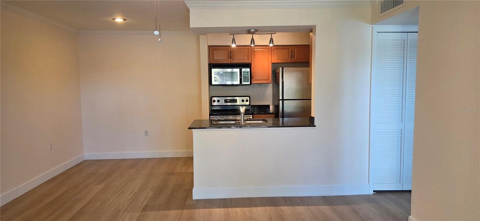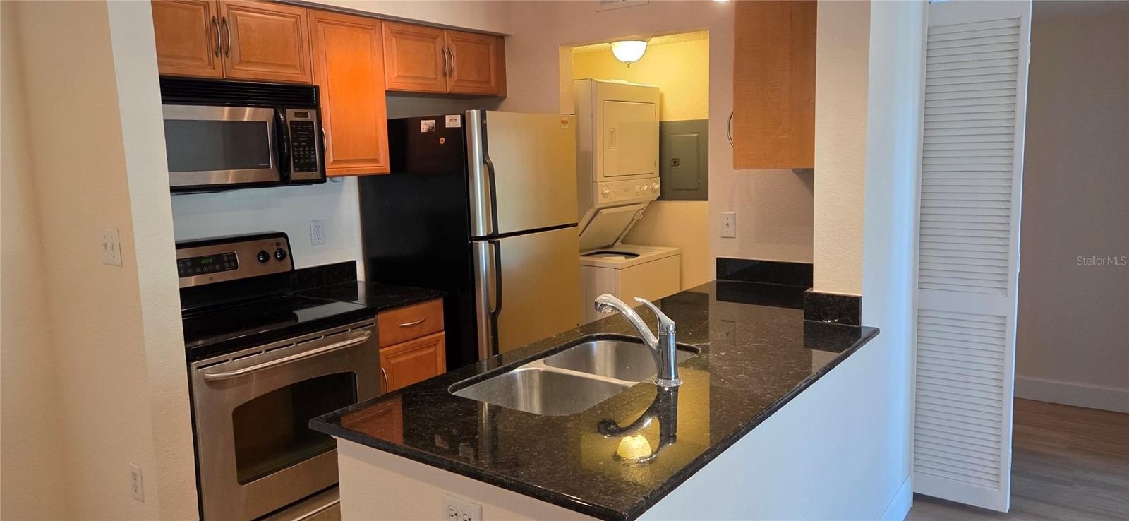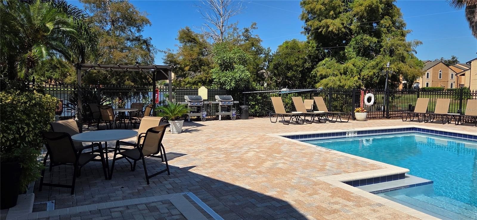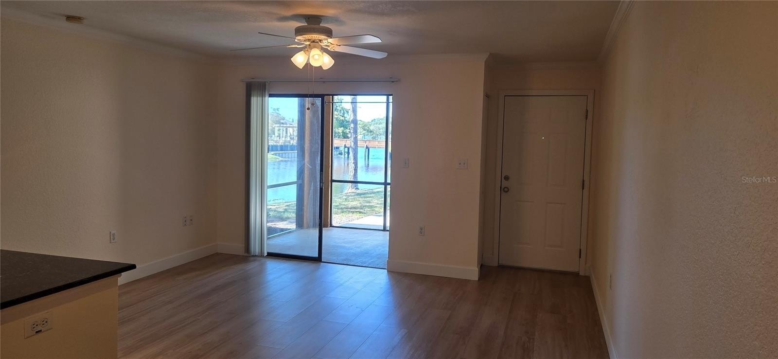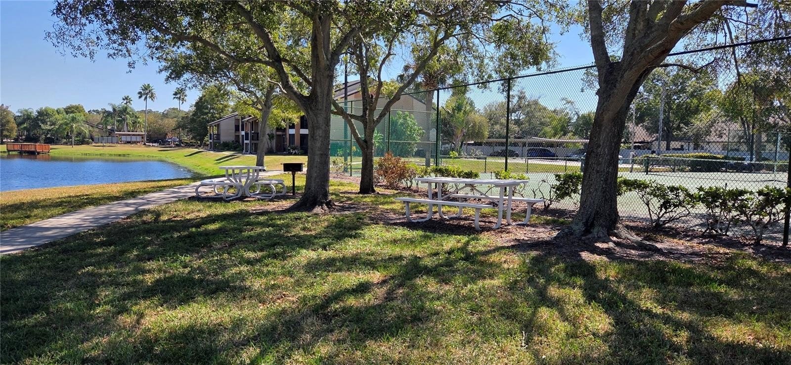 This charming 1 bedroom, 1 bath ground floor corner unit condo has an updated kitchen with stainless steel appliances, granite counters in the kitchen and bathroom, track lighting, ceiling fans, washer and dryer, storage closet on the screened in patio with views of the lake. Assigned covered parking. Newly painted, popcorn ceilings removed and new luxury vinyl plank flooring. The gated community of Bal Harbour with a clubhouse, community pool, fitness center, tennis courts, outside grills, volleyball court, putting green, fishing pier is centrally located to everything. Great primary residence or investment property. Pets are welcome. Call today and schedule a showing.