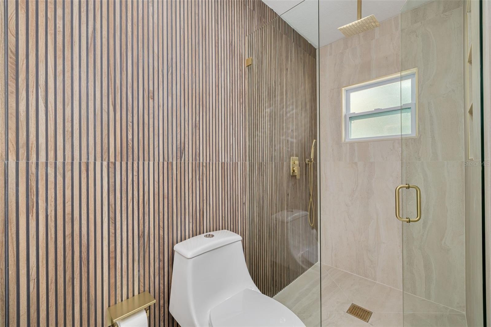 The primary suite offers a split-bedroom layout for privacy and boasts a huge walk-in closet and a stylish en-suite bath with a contemporary barn door, multiple shower heads, and a frameless glass shower for a sleek, spa-like feel.