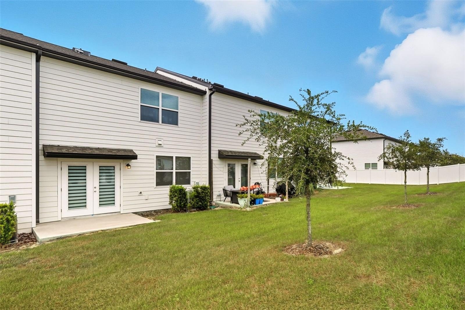 french doors to an expansive backyard—ideal for gatherings and outdoor living. Upstairs, the