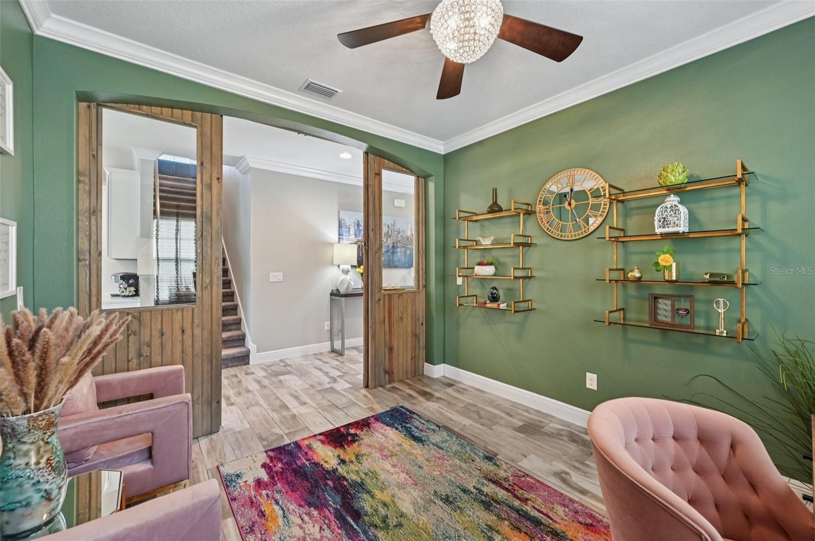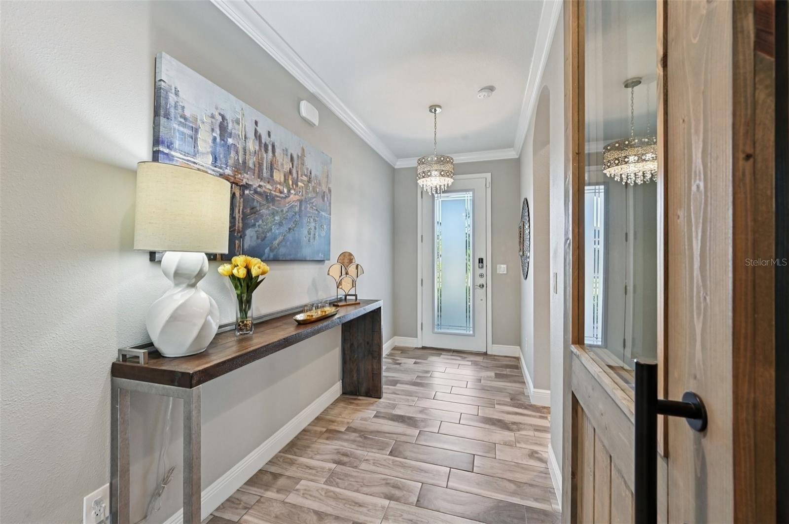 Step inside to an airy, light-filled floor plan where style and function meet. Flowing from the entry foyer, a first-floor bedroom with an adjacent full bathroom creates a private retreat for guests or multi-generational living. Nearby, a versatile study/flex room with designer barn doors offers the perfect spot for work, play, or your imagination.