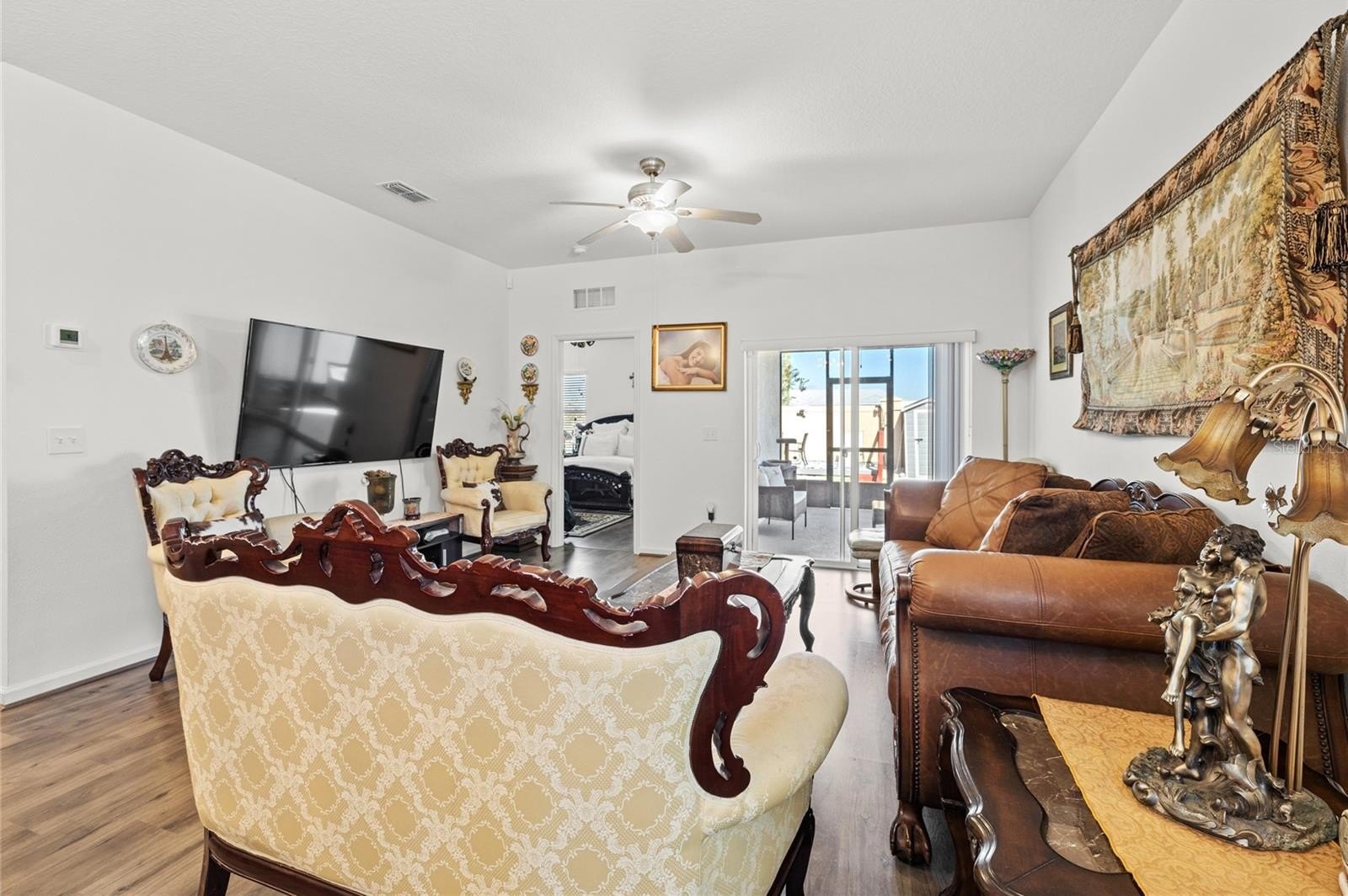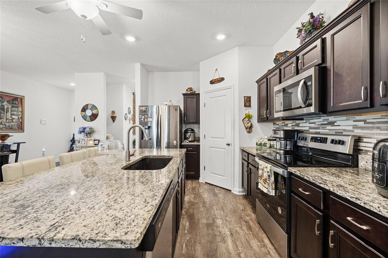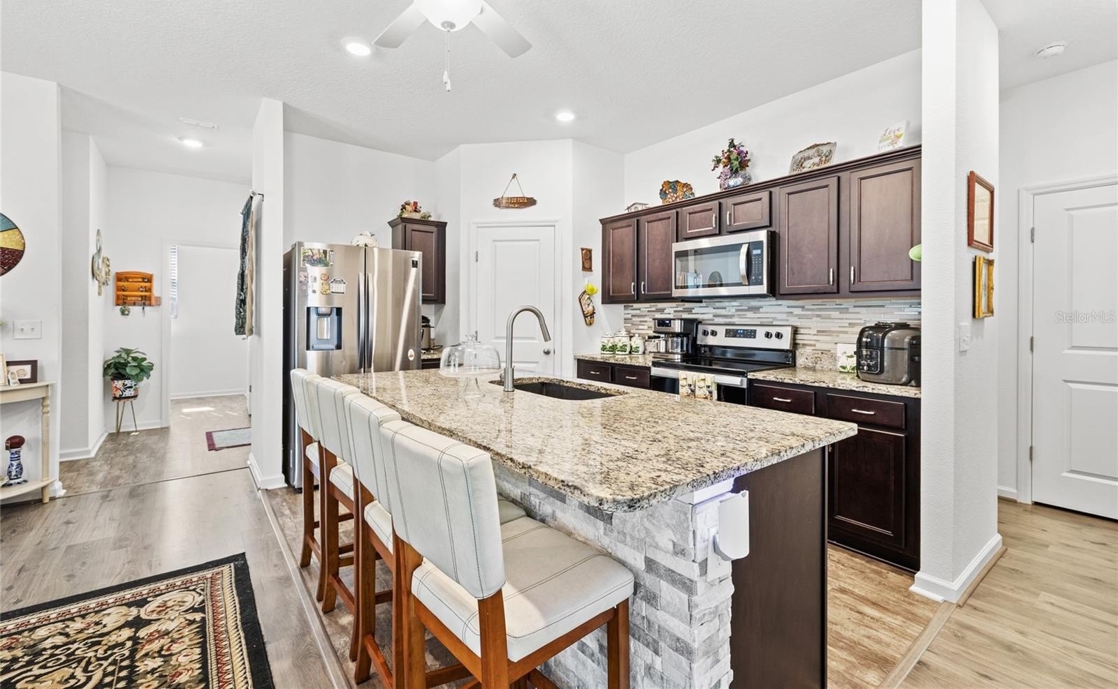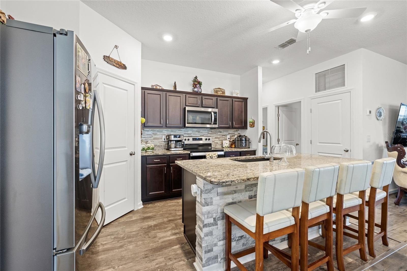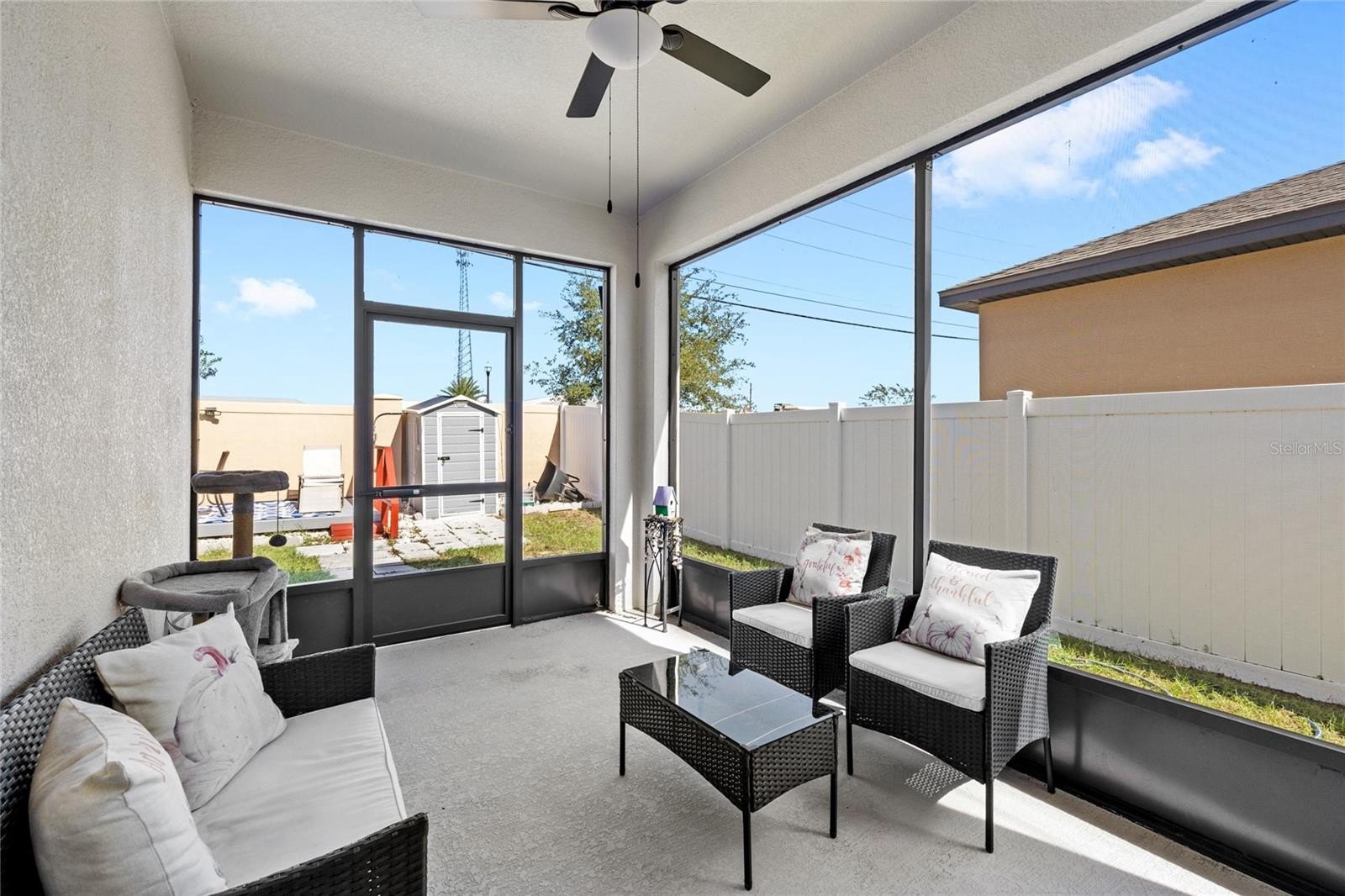 Welcome to 801 Orchid Grove Blvd in Davenport, a beautifully upgraded 3-bedroom, 2-bath home featuring over $80,000 in enhancements, including a paid-off solar system with battery backups—no more renting your power, you own it. Inside, enjoy luxury vinyl plank flooring throughout, granite countertops, 42” cabinets, upgraded appliances, and a stylish backsplash, plus new light fixtures and fans in every room. Both bathrooms feature upgraded walk-in showers, and the garage mini-split A/C with added insulation overhead provides valuable under-air square footage perfect for a gym or workshop. Step outside to a screened-in lanai overlooking your fully fenced backyard with a renovated wood deck, electrical hookups, beautiful landscaping, and a tranquil waterfall feature—your ideal outdoor oasis. With stonework detailing, a modern exterior, and resort-style community amenities including a pool, clubhouse, and fitness center, this home delivers the perfect blend of comfort, efficiency, and luxury Florida living. Schedule your private showing today and experience the lifestyle 801 Orchid Grove has to offer!