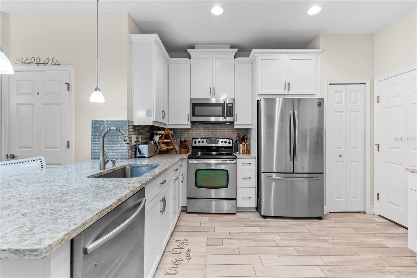 Major price reduction just in time for the holidays! The seller wants to know what it would take to put a bow on this beautiful home for you, let's talk. Close this year to file for homestead and keep your taxes lower making NOW is the time to make wonderful Windermere Estates and THIS inviting home yours. Well-maintained and offering all the right features; stone counters throughout, stainless appliances, ceramic, wood plank floors down and lux carpeting up, a spacious 1 car garage accessible to the kitchen for your convenience and a cozy screened patio overlooking serene conservation. The natural views offer exceptional privacy from your gracious living area and open concept first level. The designer kitchen sparkles in white, shaker cabinets, an undermount stainless sink and a bonus, matching, built-in coffee bar addition! The cook's kitchen opens to a welcoming dining and living space over a wide breakfast bar that makes entertaining a breeze when paired with the striking built-in custom bar with a quartz top that accentuates the stylish dining area. The primary and secondary bedrooms are located on the second level separated by an enormous open loft that can serve any purpose your imagination can dream of including conversion to a third bedroom if you wish. The inside laundry closet has built in shaker cabinets, and a beautiful, full-size washer and dryer conveniently located between the bedrooms for convenient access. The primary suite overlooks the serene conservation for quiet nights, offers dual closets and is complimented with an accommodating ensuite bath with dual sinks, a walk-in shower and linen closet. The secondary bedroom overlooks the decorative front elevation and is awash with abundant, natural lighting and has easy access to the second full bath with a tub and shower. This is a quality-built MI builder, Andover II home. Windermere Estates is superbly located near everything Wiregrass has to offer and is convenient to Bruce B Downs and I-75. You'll enjoy quick access to top rated schools, the shops at Wiregrass, many wonderful restaurants, Center Ice/Ice Hockey, Epperson Lagoon for swimming, kayaking and paddle boarding, 2 hospitals with a 3rd , Orland Health hospital opening in 2026, parks, trails, nature preserves and an exciting "coming soon" new 30 acre entertainment and shopping Urban Downtown called Legacy being built just 1 mile north. There's so much more to list, but Wiregrass is the premier, growing development in Wesley Chapel and highly sought after. This is the place to buy and still be at an early stage to take full advantage of the equity that comes with being an early stakeholder in a major development. It's the right time and this is an ideal home to start your life's journey or to slow down and enjoy all that's here to enjoy! Call today to schedule your private tour.
