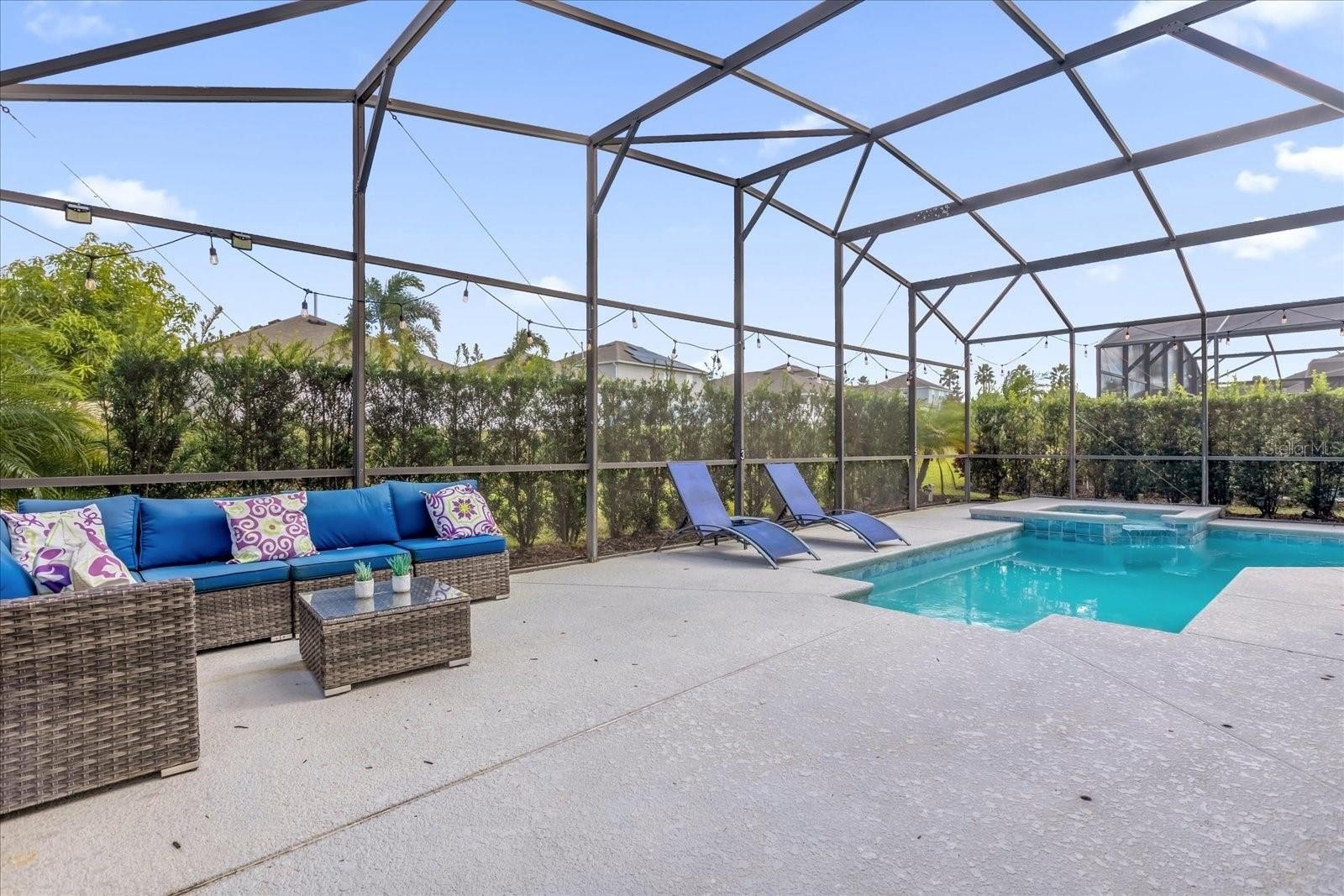 EXCELLENT AIRBNB HOME JUST A FEW MINUTES FROM DISNEY *** WELCOME TO THIS BEAUTIFUL, FULLY FURNISHED home in Davenport, Florida. It is conveniently located in the highly sought-after community of CALABAY PARC with an EASY COMMUTE to Central Florida’s THEME PARKS closest to Disney and Margaritaville. You are only a 3-minute drive away from the new PUBLIX, Starbucks and other fastfood eats. All on 1 Floor, no stairs or steps, this gorgeous 4 bedroom, 3 bathroom home comes with an ideal SPLIT FLOORPLAN and 2 PRIMARY BEDROOMS with BATHROOMS. Both primary suites have their own full bathroom and access to the SPARKLING POOL area. You and/or your guests can enjoy your morning coffee out by large heated POOL & SPA under the COVERED LANAI, or wind down from a busy day of work or theme park hopping. This home would make a great primary residence or short term vacation home if you want to try your hand at AIRBNB. SHORT TERM RENTALS are allowed. When you first walk in to the home, you will notice the exciting GAME ROOM to your right. Continue moving into the home and you will see the main living area with the OPEN CONCEPT KITCHEN and BREAKFAST BAR area. Enjoy peace of mind with a BRAND NEW HVAC system installed in 2020, flooring and wall paints NEW. You don’t want to miss this one. Has been completely, beautifully upgraded by its caring owner from home features wall-to-wall to exquisite furniture! Once you stay here, you would not want to leave!