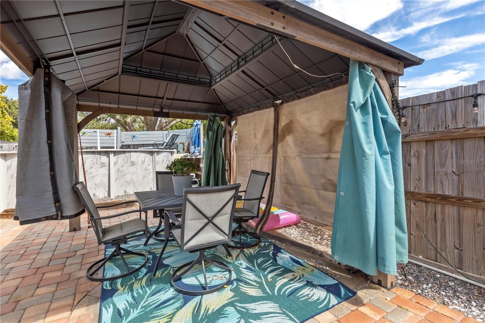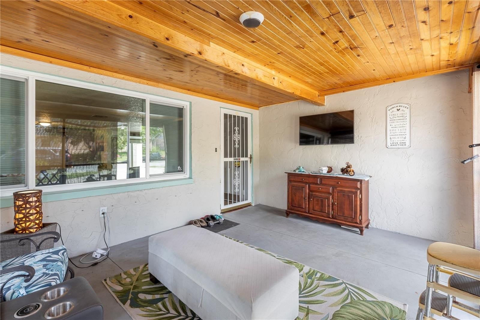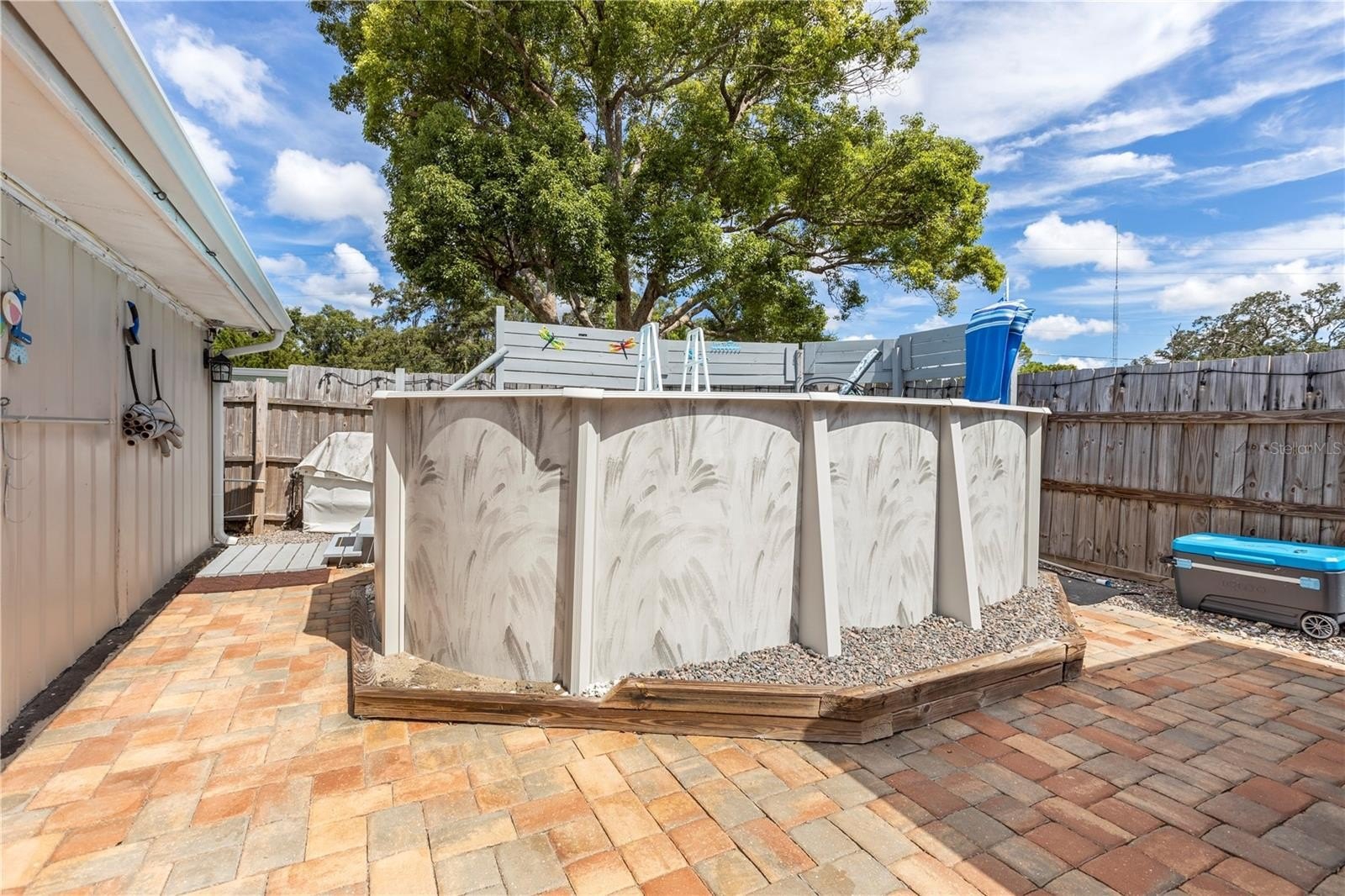 The above-ground pool has been integrated seamlessly into the backyard, providing a cool oasis on a sunny day. A circular driveway ensures ample parking for you and your guests and the golf cart carport provides a space for your smaller vehicles. The home's enhanced landscape includes customized drainage and a communal area in the front yard.