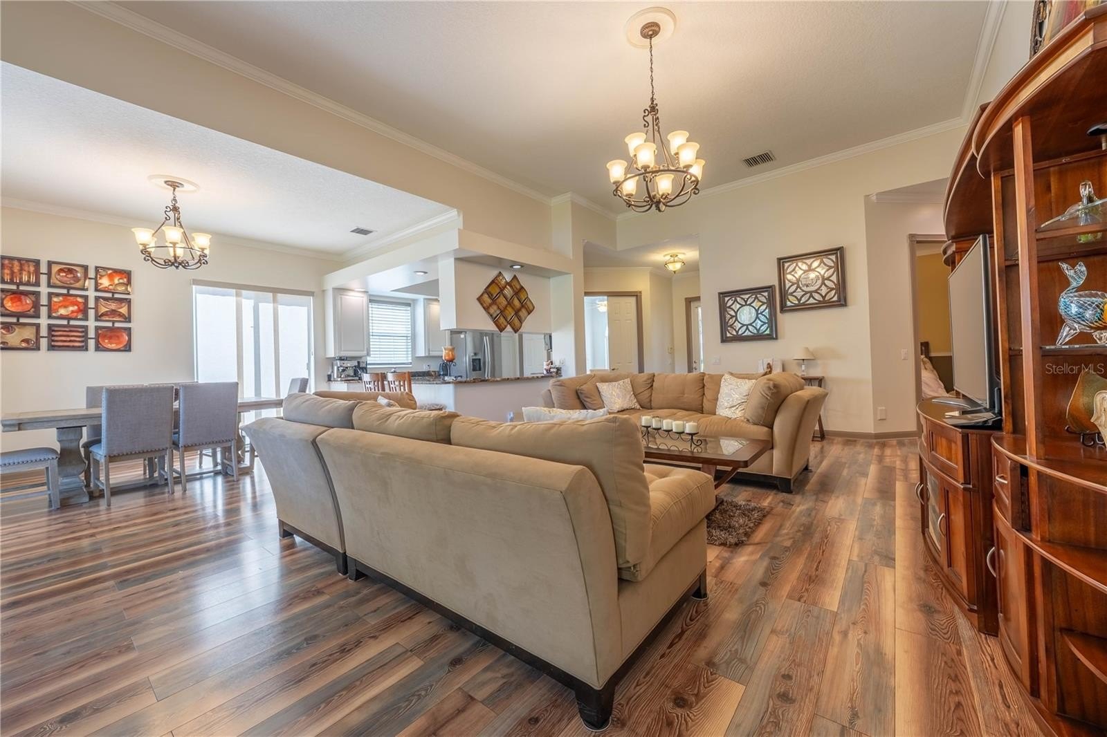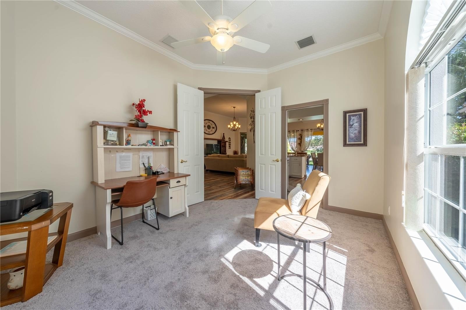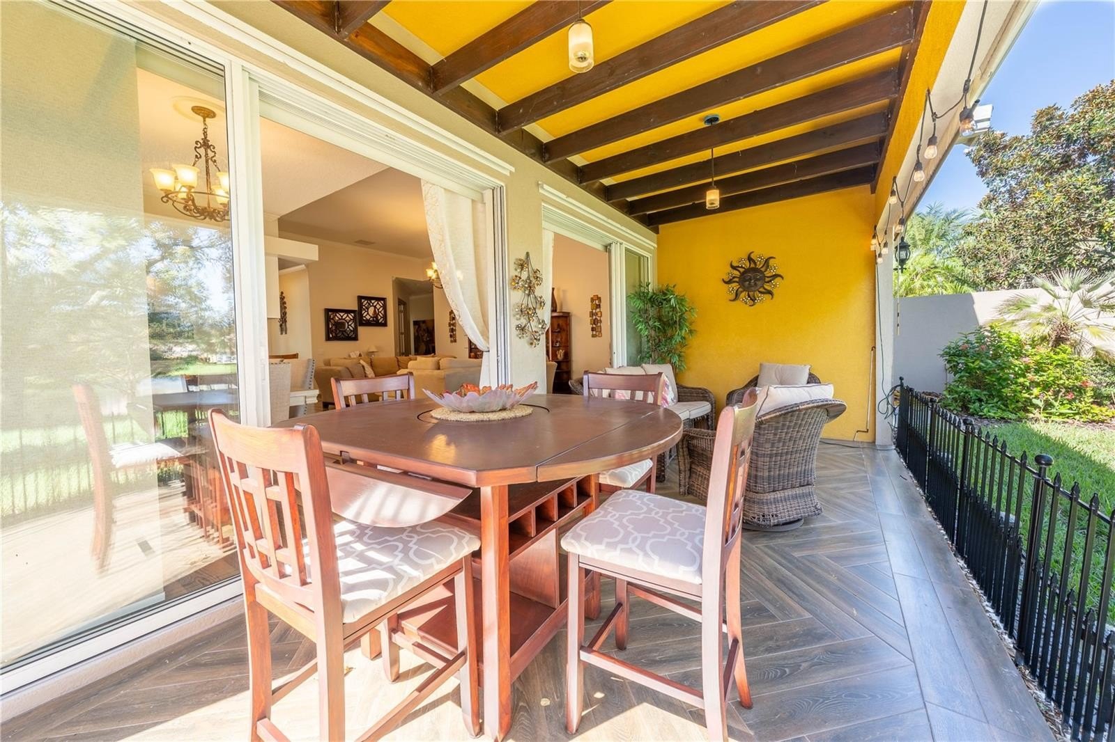 Welcome to this beautiful 24-HOUR GUARD GATED community of VillageWalk! This stunning 3-bedrooms plus OFFICE, 2-baths single family home with a 2-car garage offers an open floor plan bathed in natural light and serene lake view. FRESHLY transformed with new interior and exterior PAINT, beautiful new flooring, Newer AC, crown molding, kitchen counter tops, resurfaced cabinets, new hardware, new disposal and both bathrooms beautifully updated for MODERN comfort. Step out to your PRIVATE tiled patio with beamed ceiling-perfect for year-round entertaining. Village Walk's resort-style amenities include parks, walking trails, fitness center, heated lap pool, heated resort pool, community deli, on-site gas station, tennis courts and endless activities. In addition you'll love the easy access to major highways (528, 417) Close to Orlando International Airport, Medical City, Boxi Park, Lake Nona Town Center, top-rated schools, and Nona Regional Shopping Center. Enjoy the lifestyle of luxury and convenience. Schedule a viewing today and experience all that this exceptional community has to offer. Buyer to verify all MLS information.