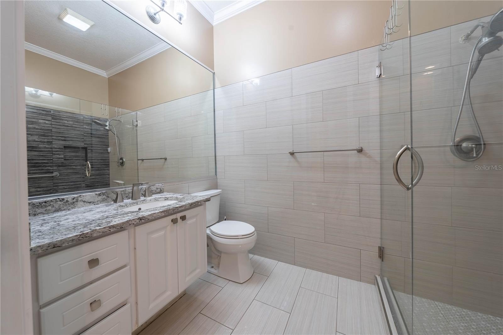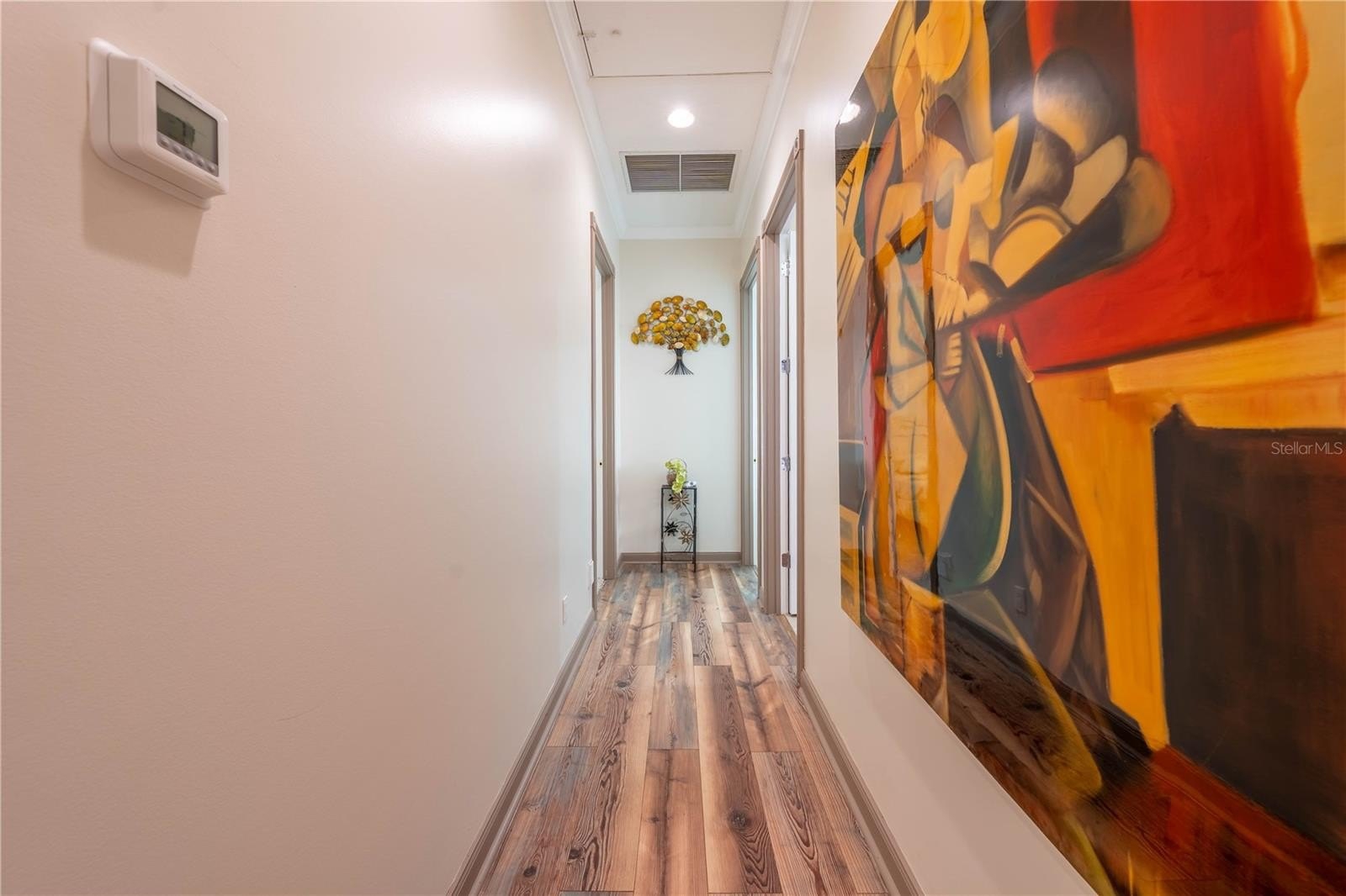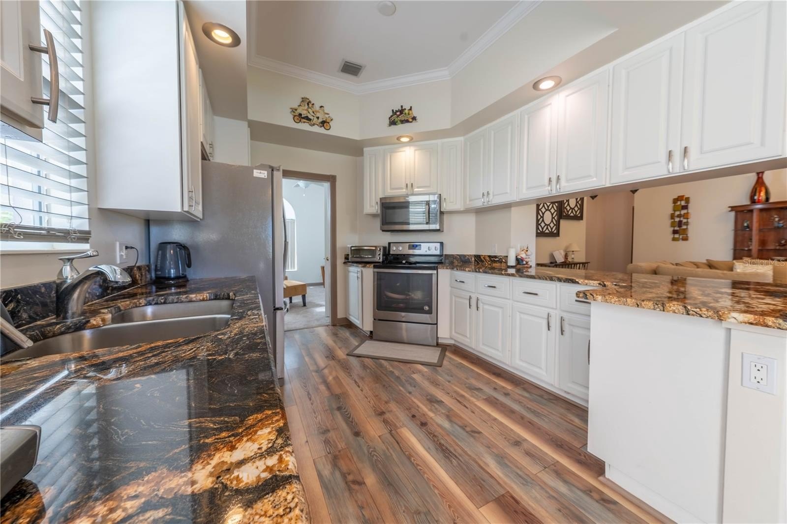 Welcome to this beautiful 24-HOUR GUARD GATED community of VillageWalk! This stunning 3-bedrooms plus OFFICE, 2-baths single family home with a 2-car garage offers an open floor plan bathed in natural light and serene lake view. FRESHLY transformed with new interior and exterior PAINT, beautiful new flooring, Newer AC, crown molding, kitchen counter tops, resurfaced cabinets, new hardware, new disposal and both bathrooms beautifully updated for MODERN comfort. Step out to your PRIVATE tiled patio with beamed ceiling-perfect for year-round entertaining. Village Walk's resort-style amenities include parks, walking trails, fitness center, heated lap pool, heated resort pool, community deli, on-site gas station, tennis courts and endless activities. In addition you'll love the easy access to major highways (528, 417) Close to Orlando International Airport, Medical City, Boxi Park, Lake Nona Town Center, top-rated schools, and Nona Regional Shopping Center. Enjoy the lifestyle of luxury and convenience. Schedule a viewing today and experience all that this exceptional community has to offer. Buyer to verify all MLS information.