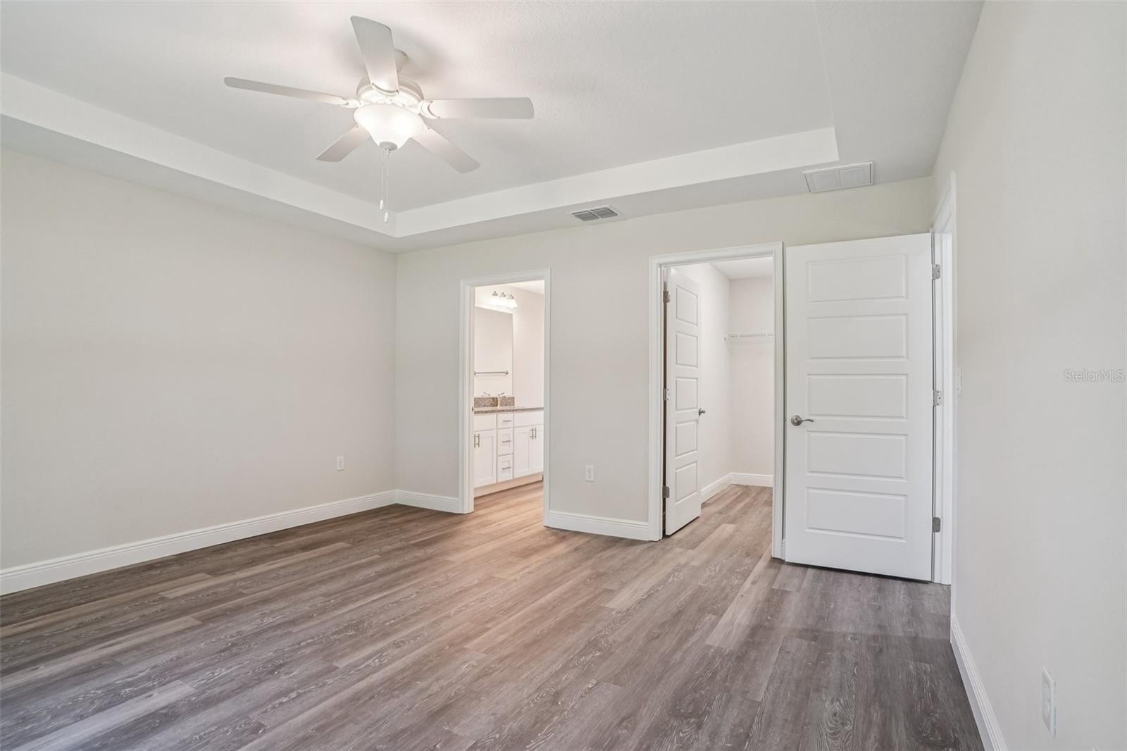 The kitchen is a true centerpiece, featuring sleek stainless steel appliances, recessed lighting, and a generous kitchen island perfect for cooking, a breakfast bar, or casual dining. The owner's retreat offers a touch of luxury with tray ceilings, a large walk-in closet, and an en suite bathroom complete with dual sinks and a walk-in shower finished with exquisite floor-to-ceiling wall tile.