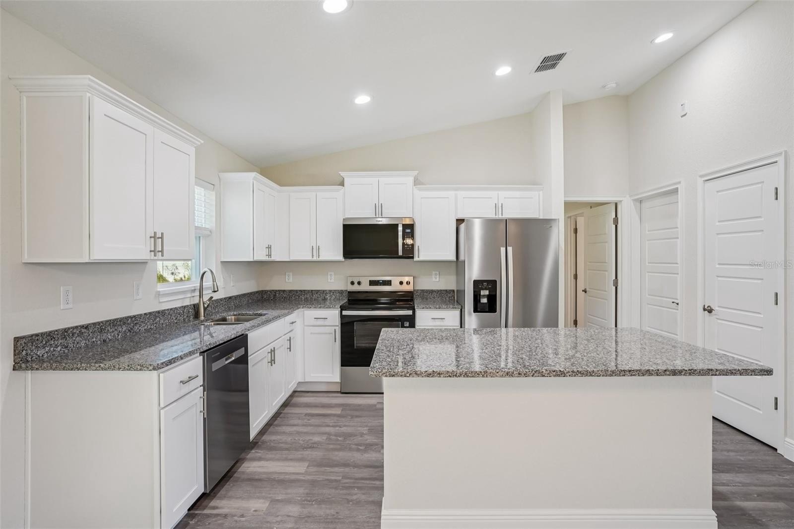Step inside to appreciate the spaciousness created by high ceilings and the effortless flow of the open-concept layout. The thoughtful split-floor plan ensures privacy for all. Durable and stylish luxury vinyl plank flooring spans every room, offering an elegant look that's easy to maintain. The kitchen and bathrooms boast high-quality features, including soft-close cabinets and beautiful granite countertops.