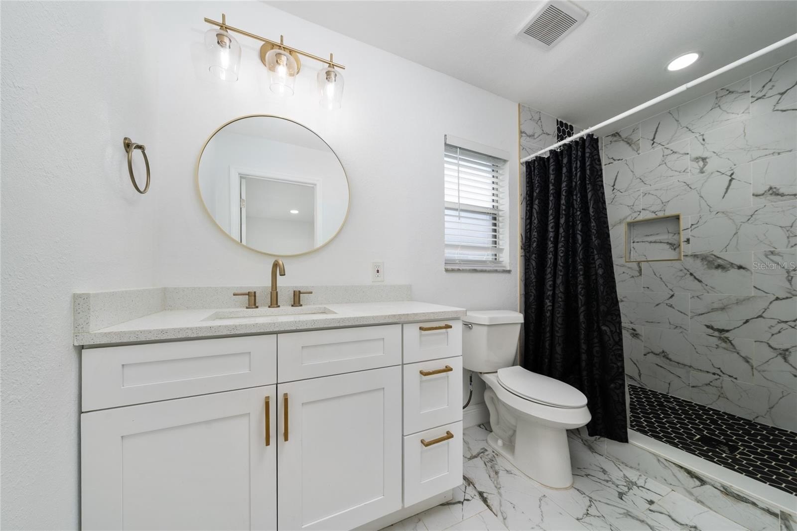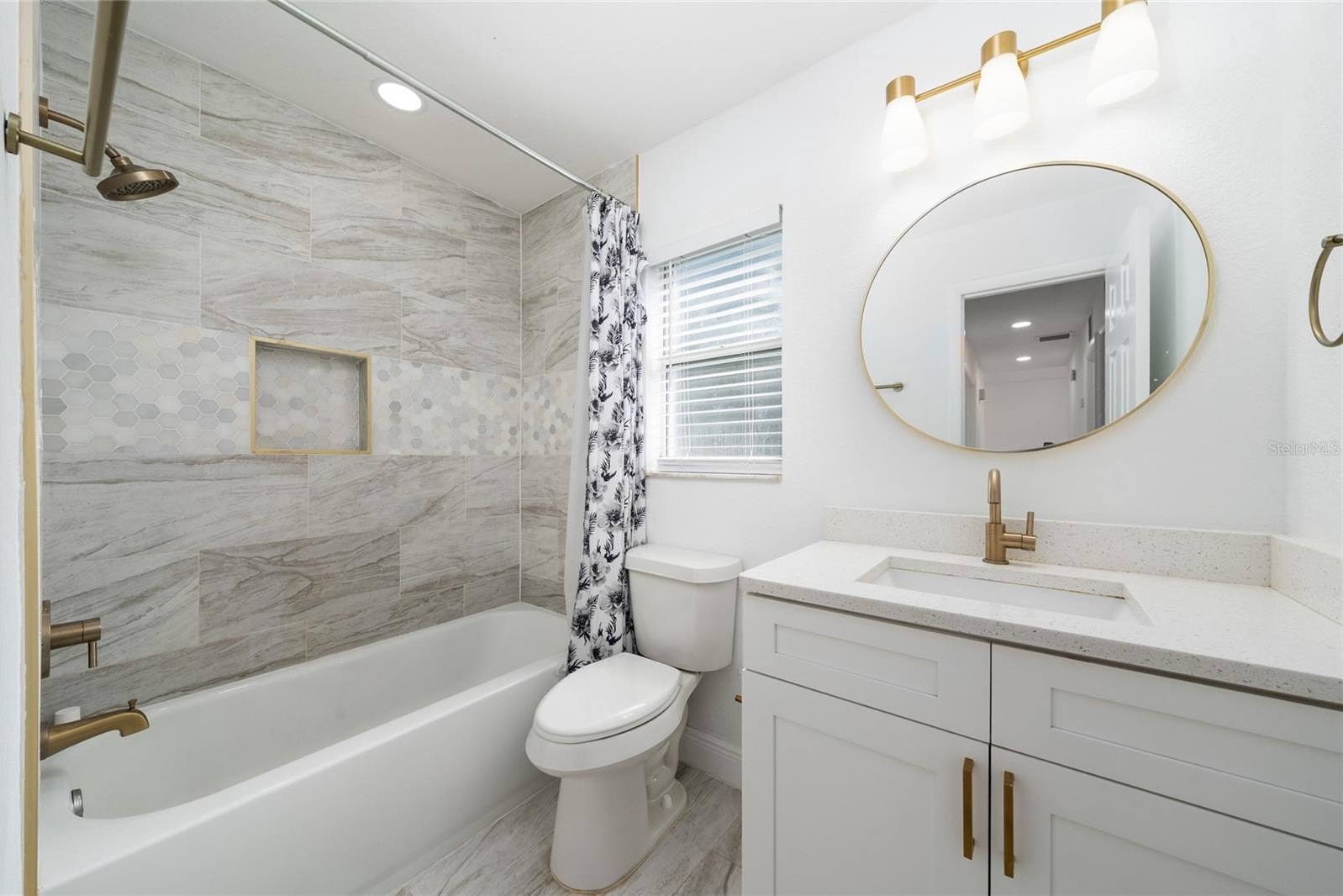 Enjoy low HOA, no rear neighbors, and a new roof (Sept 2022) on a .20-acre cul-de-sac lot. The kitchen and baths feature sparkling Italian quartz countertops, gold accents, and updated blinds, washer, dryer, and vanity sinks. The home is bright and airy, enhanced by new light fixtures, LED lighting, and ceiling fans.