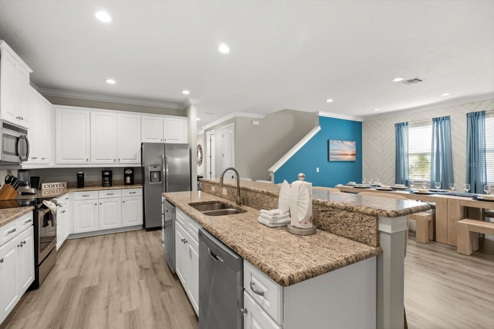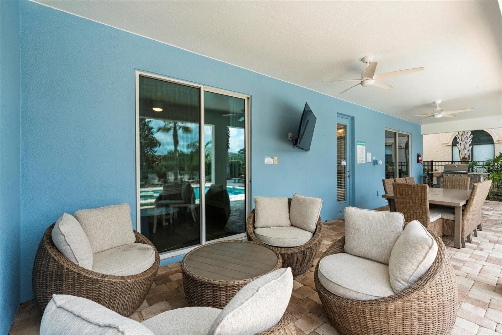 **Active Reunion Club Membership** Welcome to the costal cottage, located in the renowned guard gated golf community of Reunion Resort this 9 bed 10 bath home is a must see! Recently renovated, this home is being sold fully furnished, with over 200k in brand new name brand furniture, and upgrades throughout, no details were missed, this home is rental ready! Starting out front, the driveway was completely re-done with new pavers, and expanded to be more than double the width of the original driveway. As you enter the home you will immediately notice the light and bright, open concept first floor living area, complete with 2 first floor bedrooms, open concept kitchen / living room, table gaming room complete with a bath that leads directly to the pool, and a fully equipped converted gaming garage. The converted garage has been completely re-done, complete with a wall mounted mini split a/c, commercial grade arcade games, and a Foresight golf simulator, making this a room where both adults and kiddos can have abundant fun. The dining room / kitchen features a spacious bar top in the kitchen, making it a true eat in kitchen, the kitchen also features a keydrop area complete with its own charging station for the perfect place to do homework or work on your laptop. The dining room is open to the kitchen and living room and is complete with an oversized dinner table with space for 14. The entire wall from the dining room to the living room was upgraded to feature a haring bone design wood panel accent wall, making the space feel modern and luxurious. Entering to the outdoor pool oasis you will enter into the covered rear patio which spans the entire width of the home, which is complete with ample seating for outdoor dining and leisure. The outdoor pool area also features an outdoor grill and countertop, and the pool deck pavers were extended an additional 10 feet, adding more space for lounge chairs. All outdoor furniture, lounge chairs, and table are brand new. Heading upstairs you will enter into one of two loft areas, the first loft area at the top of the stairs features two gaming console stations complete with the latest xbox's and Nintendo switches. The second loft area is utilized as a second living room / family room complete with an oversized lounge couch, large wall mounted tv, and a cozy and inviting vibe, making this area a fantastic place for family and friends to come together and enjoy a movie. There are a total of 6 bedrooms upstairs, all bedrooms have been completely upgraded to include brand new furniture, and their own warm and contemporary design. Most notable are the two theme rooms that are located upstairs, the first theme room at the top of the stairs is a treehouse theme, complete with built in bunk beds, custom lighting including ceiling mounted fiber-optics, hand painted murals, and 5 beds in total, making this room will be a place where the little ones will feel safe, comfortable, and entertained. The second theme room upstairs is truly one of a kind, this room is twice the size of any typical room, and features 4 built in bunk beds, custom led lighting throughout, a slide and play fort, and an elevated walking tunnel. These theme rooms are truly one of a kind, and are Guarenteed to impress even the most picky kiddos This house has so much to see, more than can be fit in this description, and truly needs to be seen in person to appreciate. Now is your time to own a piece of paradise, Wellcome home!