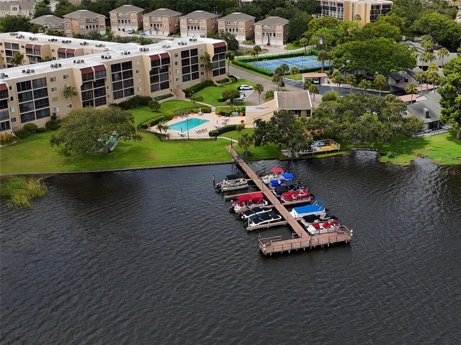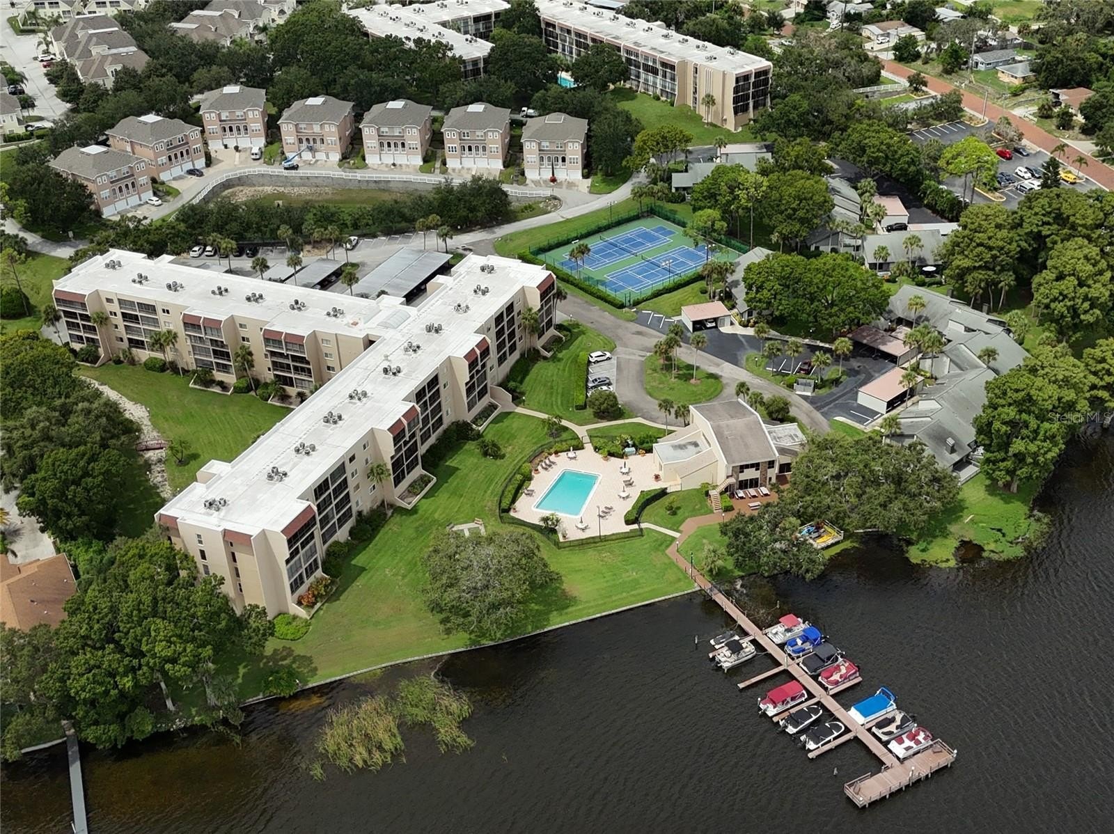 The view is just as special. From this third-floor vantage point, enjoy peaceful scenes of Lake Tarpon and the community tennis courts. Club 3 residents have access to their own heated pool year-round, plus private docks, tennis courts, and a boat ramp. The Club 3 pool/storage key also provides access through the community gate to a nearby waterfront dining spot. This condo also includes its own assigned covered carport parking space, plus an additional parking spot and extra storage, adding to the convenience.
