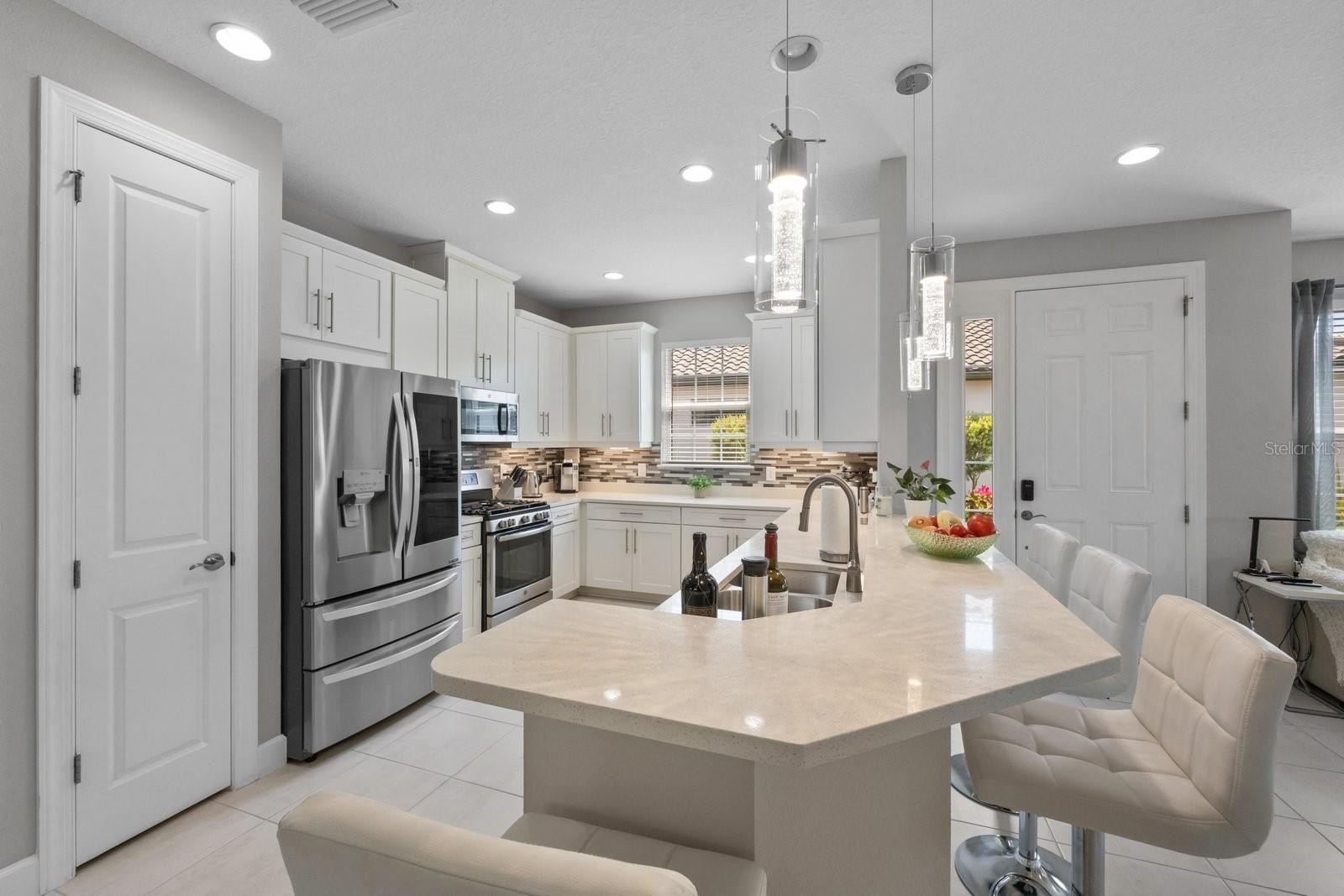 Welcome to LUXURY living at its finest in this exquisite Taylor Morrison Roma model located in the exclusive GATED community of Esplanade at Starkey Ranch in Odessa! PRIME LOCATION! Boasting 2 bedrooms, 2 bathrooms, and a versatile OFFICE or DEN, this home shines sophistication. Upon entry, you are greeted by VAULTED ceilings, an airy OPEN FLOOR plan, and elegant 8-foot doors throughout. The kitchen features upgraded QUARTZ countertops and top-of-the-line STAINLESS STEEL appliances (GAS STOVE ), gorgeous back splash, plenty of storage and counterspace. The breakfast bar seats and light fixtures add a touch of class to an already gorgeous kitchen. In addition, the kitchen seamlessly flows into the dining room and family room, perfect for hosting gatherings. The master suite is a retreat with TRAY ceilings, a generously sized bathroom featuring a frameless shower, and large WALK-IN closet. Additionally, the office/DEN area offers flexibility and could easily be converted into a third bedroom. Convenience is key with a spacious laundry room equipped with cabinets, a sink, and included washer and gas dryer. The garage boasts a sleek epoxy finish. Relish your downtime in the comfort of your SCREENED-IN extended paved lanai (2020- 15K) ; a perfect to spot to enjoy the Florida lifestyle .WATER SOFTENER was installed in 2020. Nestled within a gated neighborhood of the sought-after Starkey Ranch community, residents enjoy exclusive amenities including a 6,000 sf clubhouse with lifestyle director, concierge services, pool, fitness center, pickleball and tennis courts, cards & billiards room, multi-purpose room, message room and in-door and out-door kitchens. Conveniently located near a plethora of shopping and dining options, with easy access to the Veterans Expressway, this home offers the epitome of convenience and luxury living. Schedule your appointment today to experience this exceptional home firsthand!