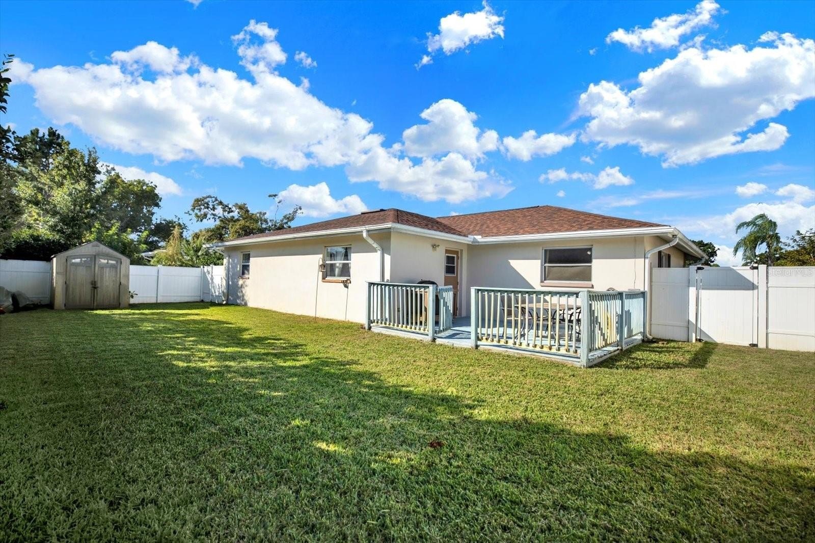 The large backyard offers plenty of privacy with a white vinyl-fenced yard and opens to a wooden deck perfect for entertaining. Enjoy plenty of space to garden, play, or relax under the Florida sunshine. A 1-car garage provides storage, convenience from the elements and a washer/dryer. The newer roof (2020) offers peace of mind along with being located in No flood zone!