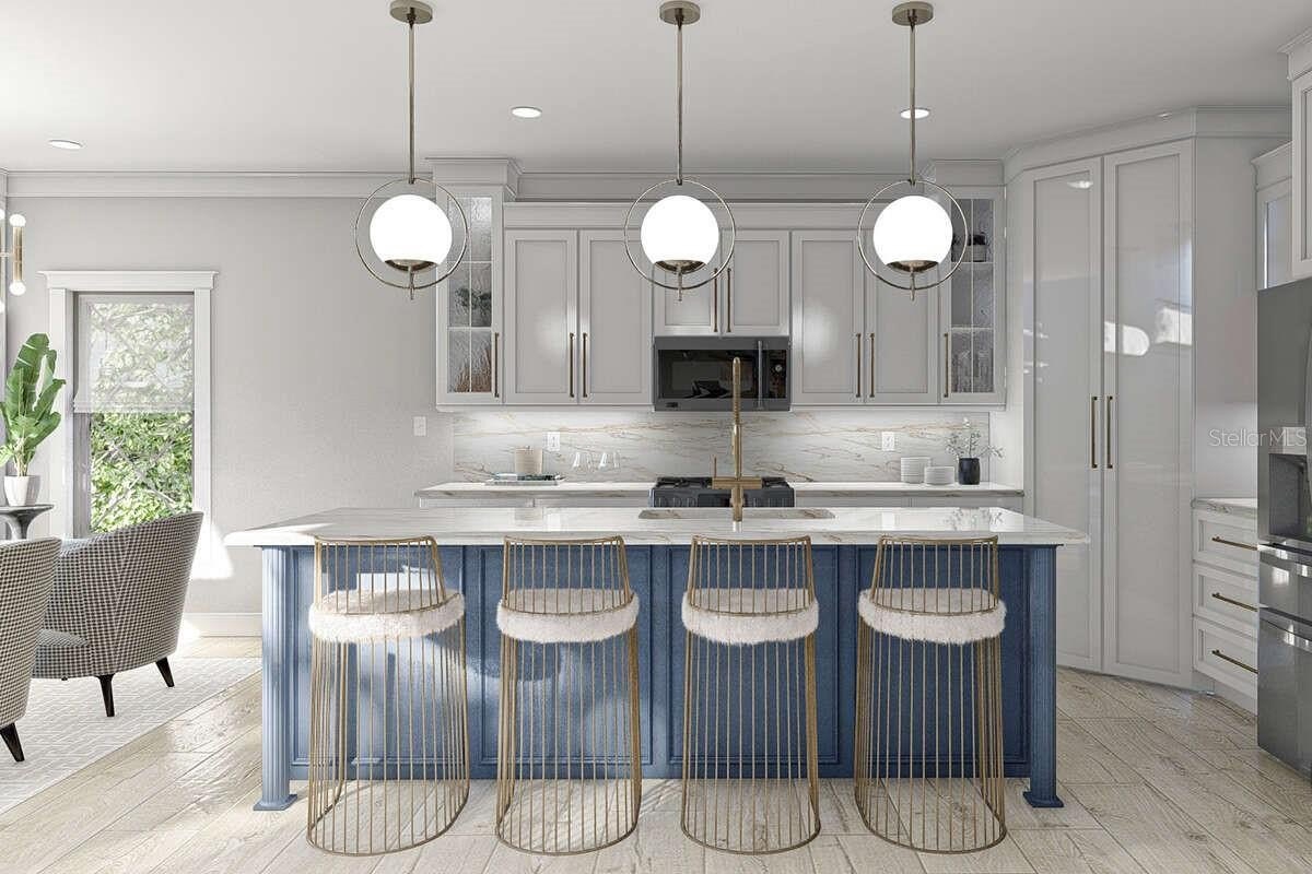 Pre-Construction. To be built. Welcome to this exceptional 4-bedroom, 2 full / 2 half-bath, 3-story residence offering 2,774 sq. ft. of heated living space with timeless architectural detail and modern luxury. From the moment you arrive, the home’s arched entry, stone accents, and dramatic rooflines set the tone for its distinctive style. Inside, you’ll find elegant design and thoughtful craftsmanship throughout. The main level opens to a spacious family room with fireplace and custom built-ins, flowing seamlessly to a covered porch ideal for entertaining or relaxing. A private elevator provides convenient access to all three floors. The heart of the home is the chef’s kitchen, featuring an oversized island, sleek cabinetry, high-end fixtures, and a walk-in pantry. Open to the great room and dining area, this space is perfect for gatherings, with doors extending to a large deck for indoor/outdoor living. The primary suite is a true retreat with a spa-inspired bath including dual vanities, a soaking tub, and a walk-in shower. Upstairs, three additional bedrooms and a full bath provide ample space for family, guests, or home office needs.