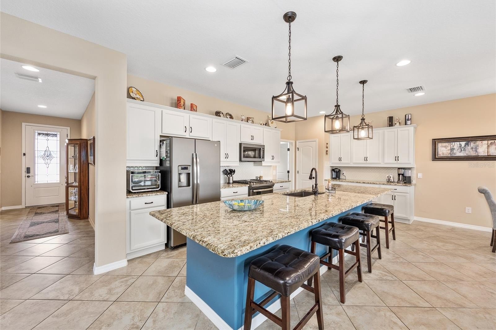, comfort-height toilets and closet organizers. Smart and energy efficient features a NEST programmable WIFI thermostat, 50 Gallon STATE hot water heater and a PELICAN two stage water filtration system. The garage is equipped with an overhead storage rack system and durable floor coating. Custom light fixtures, an irrigation system, gutters and downspouts and numerous upgrades complete this move-in ready home.