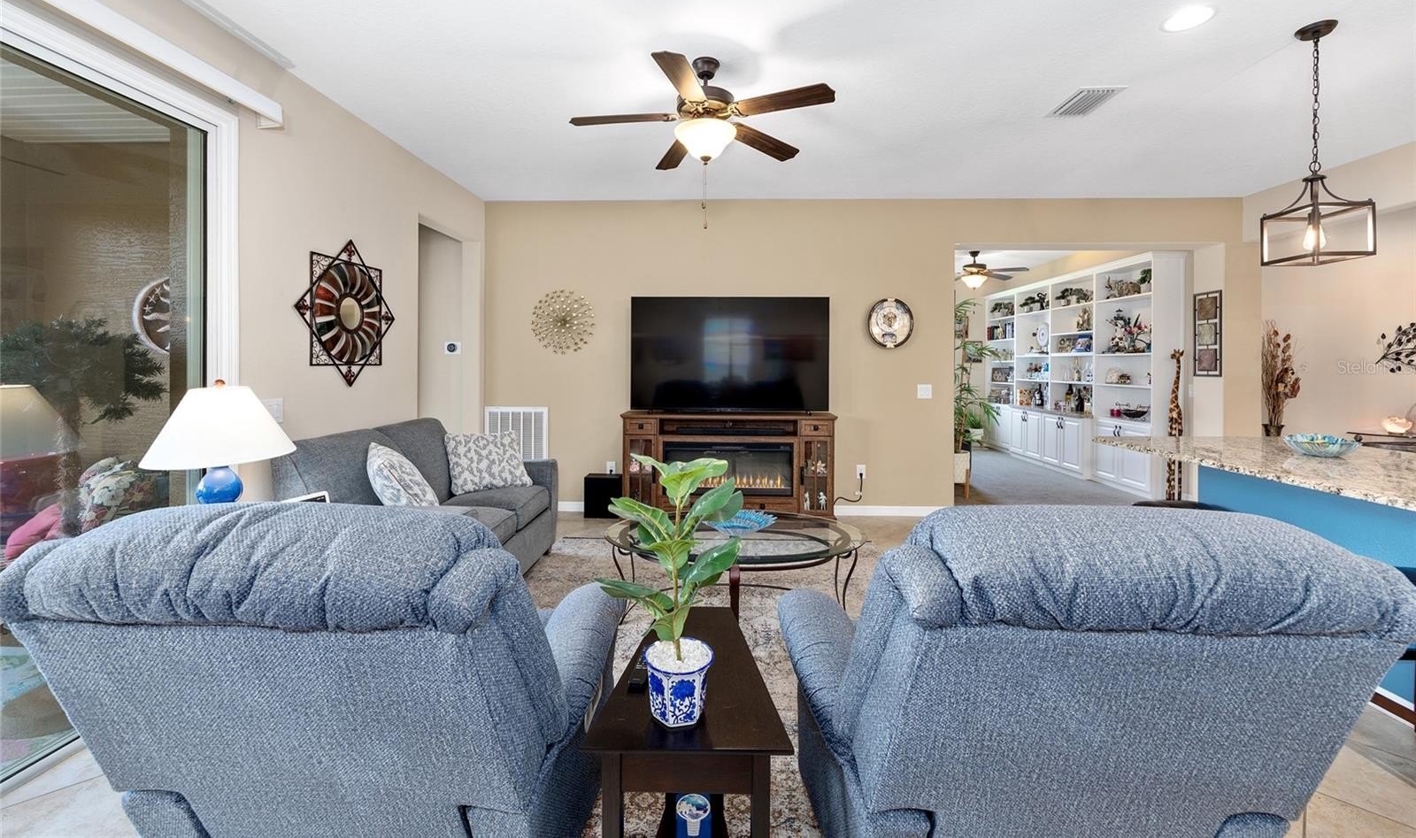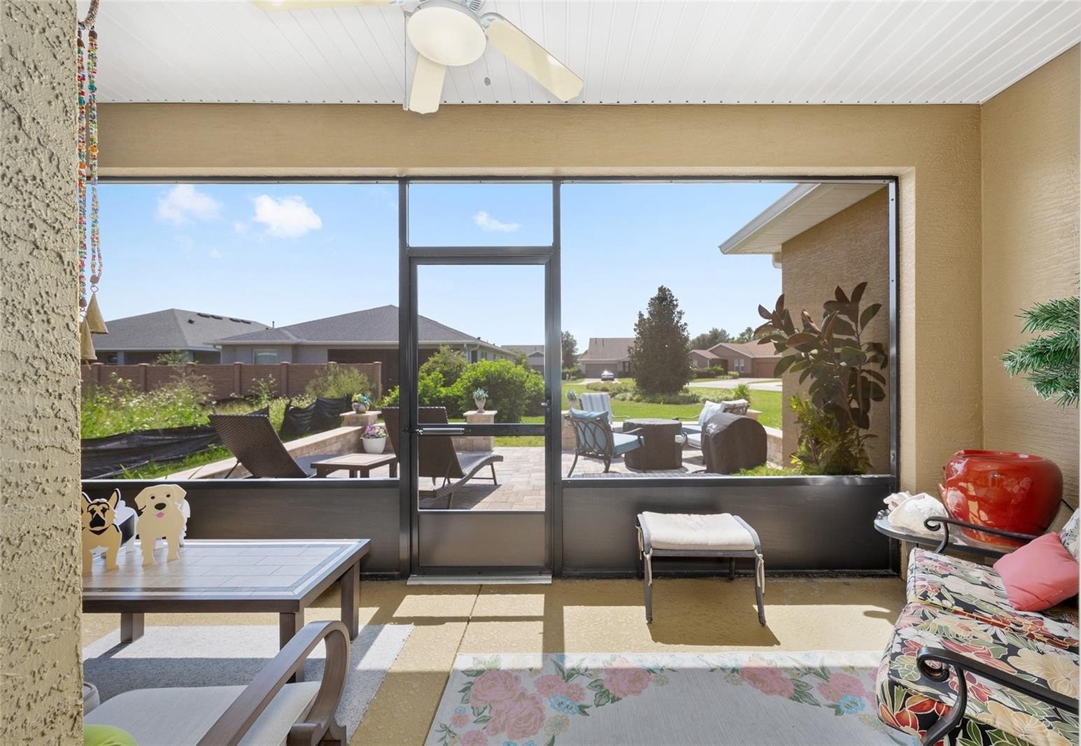 PRICED HAS BEEN REDUCED! This home has it all, don't miss this opportunity ! Resort-Style Living in a Shea Home - Connect upgraded model! This well-designed block home, set on a corner lot with no rear neighbor, features a stone facade and a widened brick paver driveway with an additional two feet on each side. Outdoor living is enhanced by custom landscaping, a 16 x 21 brick paver courtyard with stone knee-wall & a pre-plumbed gas line with shut off valve. There is also a comfortable screened lanai with an upgraded ceiling fan. Inside, the flexible floor plan offers 3 bedrooms and a den, office, work-out room with built in bookshelves; highlighted by granite counters, bullnose corners, 36" upper kitchen cabinets with LED under cabinet ambient lighting. Upgraded appliances, island with sink, casual dining area and extra cooking space ideal for baking, etc. Additional features include