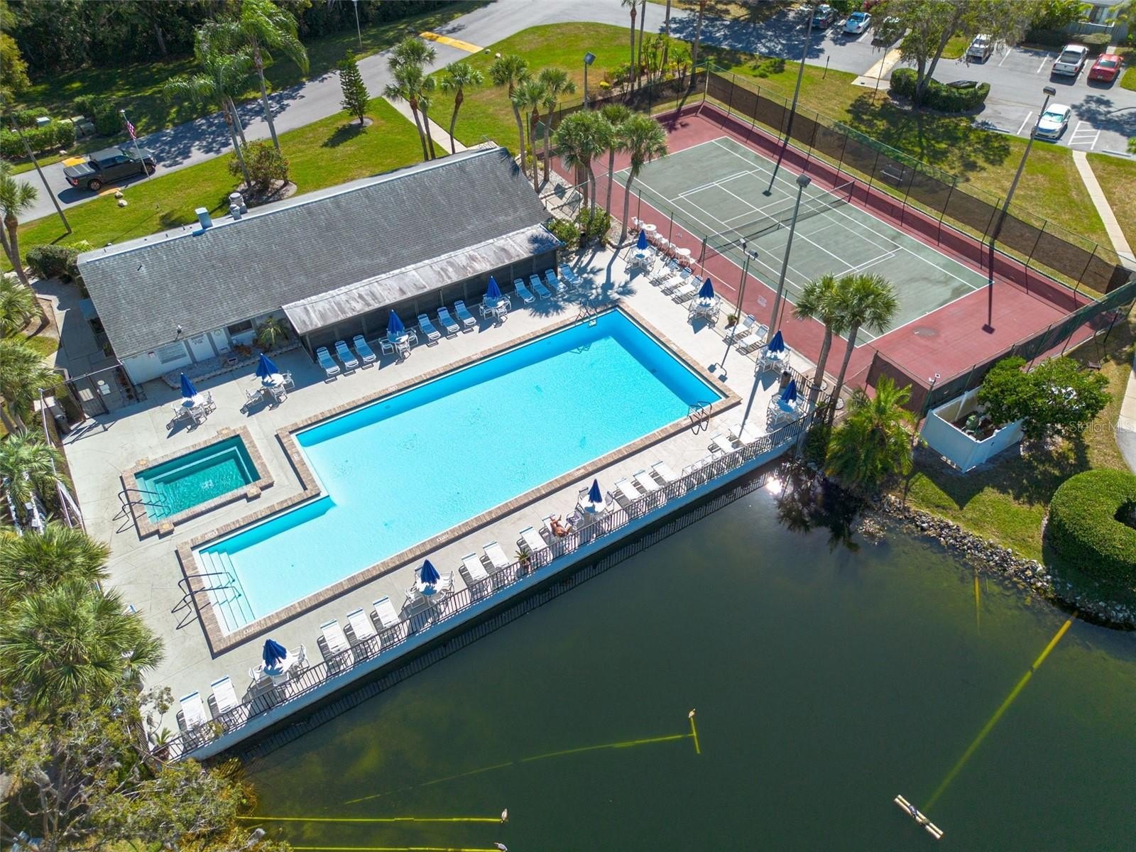 Pine Ridge at Lake Tarpon Village One, a beautifully maintained community designed for both relaxation and recreation. Residents here enjoy a large heated pool and spa overlooking a scenic lake, perfect for peaceful afternoons or sunset swims. For those who love to stay active, the community offers tennis courts, scenic walking paths, and a recreation building where neighbors gather for activities and social events. This inviting setting perfectly blends tranquility with a vibrant sense of community.