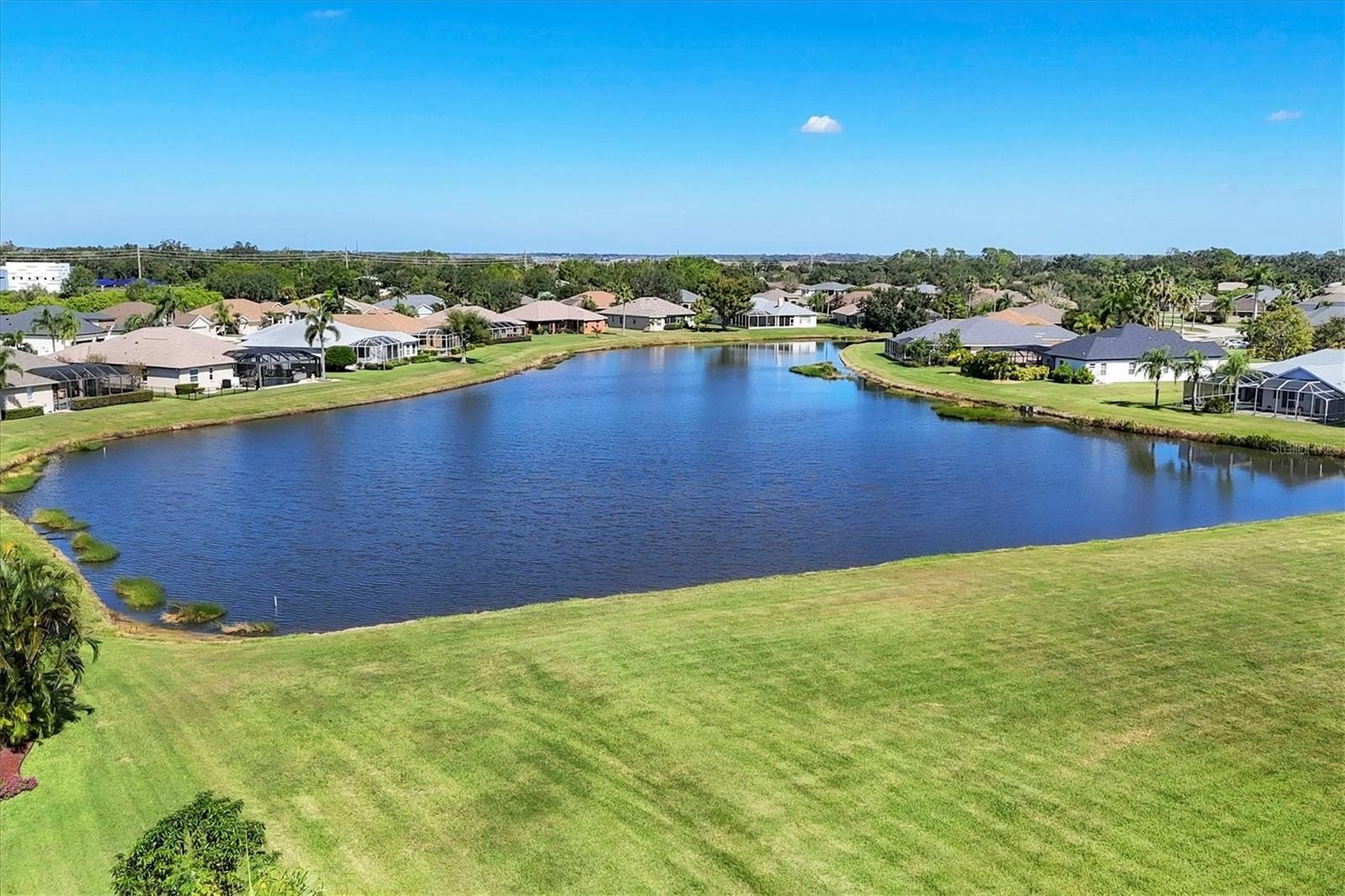 ACCEPTING BACKUP OFFERS!!!! Ancient Oaks sought-after pool home on a tranquil waterfront lot with numerous updates. Furniture and furnishings INCLUDED in sale. Double-door entry opens to an airy, open-concept plan with cathedral ceilings. NEWER HVAC (2020) & NEWER ROOF (2020) & No FLOOD INSURANCE Required!!! Tile throughout and three sets of sliding glass doors provide natural light and lead to the fully screened pool lanai offering both covered and open areas. The kitchen features a large breakfast bar and newer appliances and flows into the great room. There's an extra space currently being used a formal dining area that could easily become a play room or game room. The primary suite includes dual vanities and two closets, plus direct access to the lanai. A convenient half bath opens to the pool area. Two additional bedrooms and another full bath make this home a true "split plan" for privacy. The laundry room offers storage cabinetry and a utility sink and connects to the spacious two-car garage. Exterior highlights include a oversized pool with iridescent tile accents, mature trees, and a screened patio for outdoor living. Updates include a newer roof and upgraded appliances. Low HOA and no CDD. Minutes to Creekside Commons, outlet mall, schools, dining, and major roadways (US-301, US-41, and I-75).