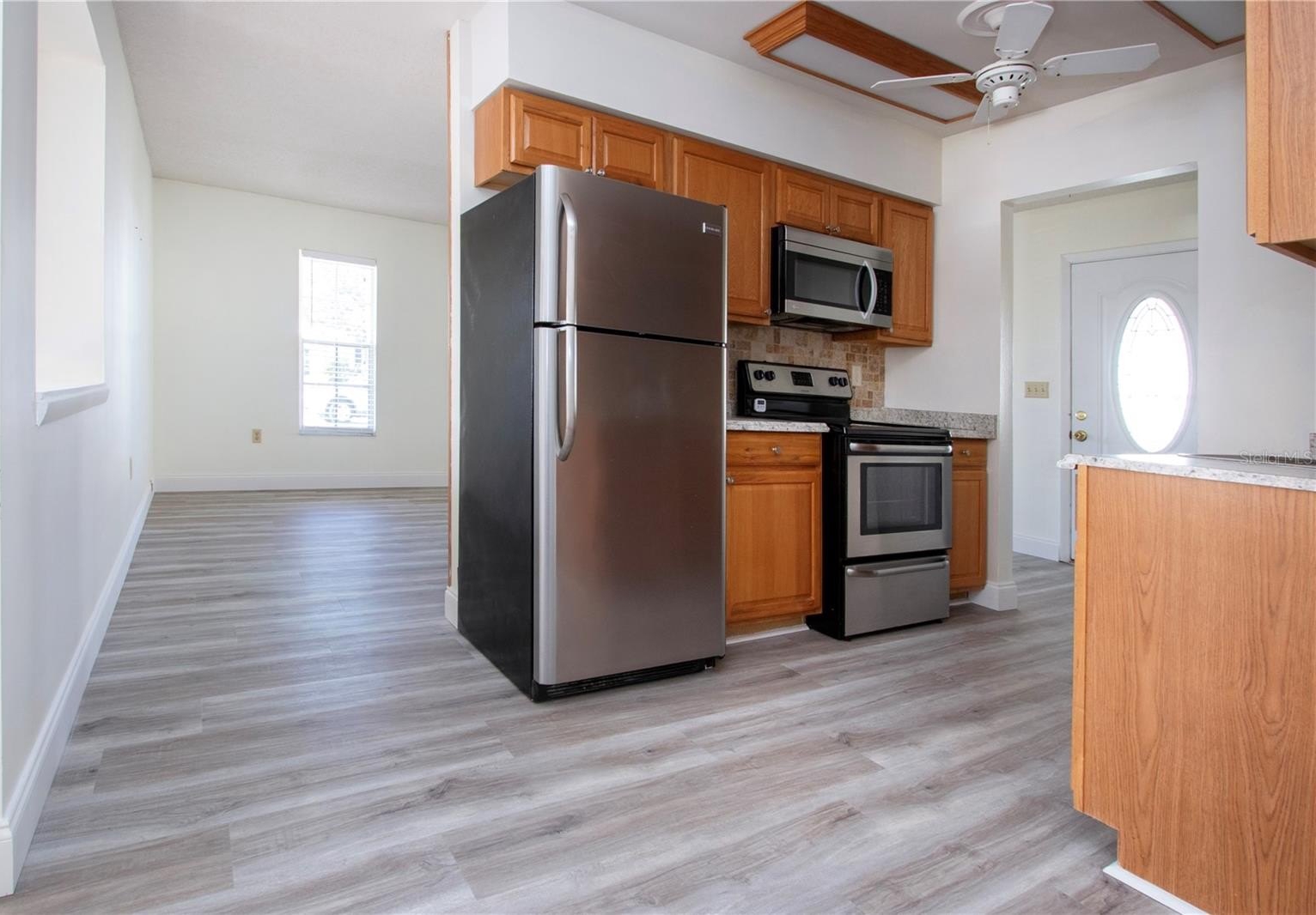 Welcome to your dream retreat in this vibrant deed restricted community, with a golf course! Enjoy a low monthly HOA fee of just $60 while living in a well-maintained neighborhood. This charming property boasts two spacious bedroom, walk-in closets and two baths, featuring a split-suite layout. With a single car garage and a covered carport, there's plenty of space for your vehicles and the additional golf cart garage in the rear of property! Step into the heart of the home, where you'll find updated appliances, plenty of space and cozy eat-in kitchen, while the separate dining is ideal for entertaining family and friends. An indoor laundry adds convenience to your daily routine. Newly renovated flooring throughout showcases luxury vinyl planking. Retreat to the newly built Lanai, perfect for entertaining, enjoying the beautiful Florida weather. Golf enthusiasts will love the convenience of the nine-hole golf course right at your doorstep, allowing year-round play. For more leisure activities, visit the clubhouse featuring an over-size pool, heated and cooled for year-round enjoyment. Participate in the active community calendar filled with events, or unwind in the fitness room, game room, or large event space, perfect for parties, dancing, and meetings. Located with easy access to I-75, this property is conveniently situated near medical facilities, places of worship, a variety of restaurants, and shopping options. Plus, with two nearby airports and public transportation, getting around is a breeze. Don't miss your chance to live near beautiful Ana Maria Island and other stunning beaches. Schedule your showing today, to begin living your best life in this amazing community!