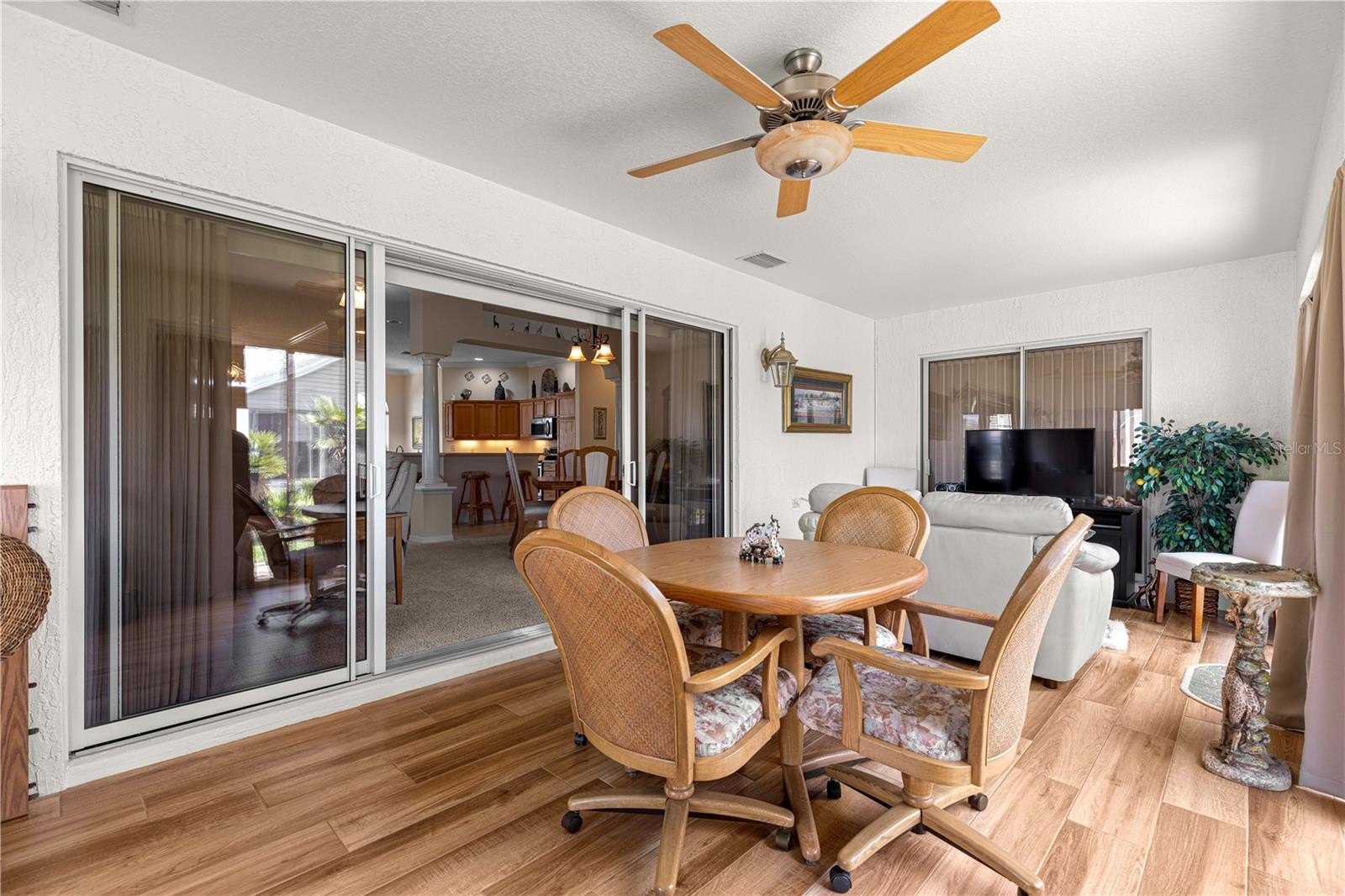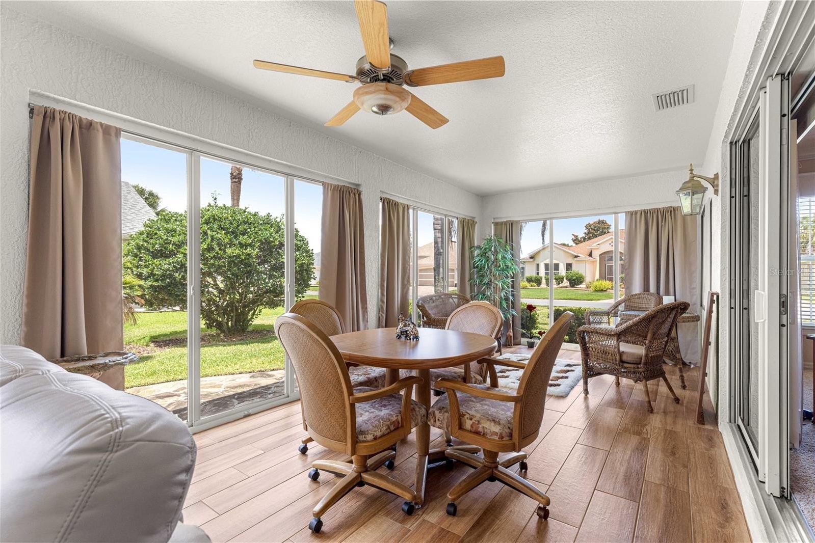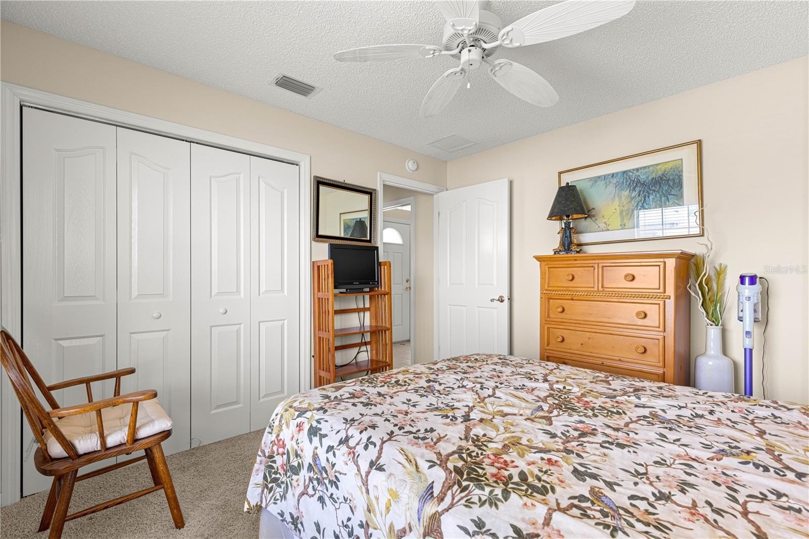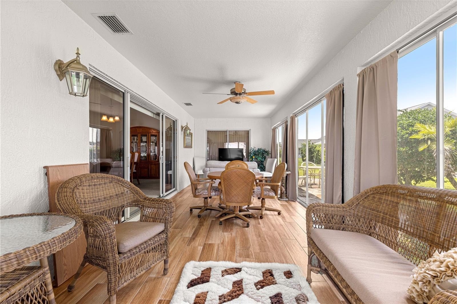 Enjoy seamless indoor-outdoor living with an enclosed lanai and grilling patio—perfect for entertaining. The spacious primary suite features dual closets and a beautiful en-suite bath. The front guest room offers flexibility with a Murphy bed, ideal for guests or as an office. The second guest room also includes a lovely bedroom set, creating a warm and welcoming atmosphere.