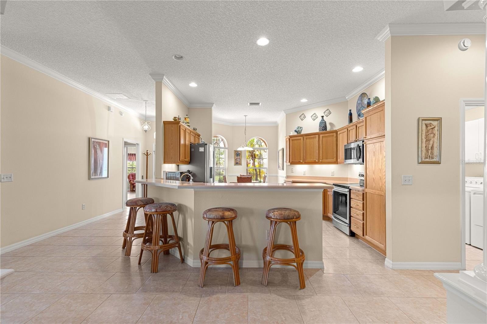Step into this stunning, fully furnished 3-bedroom, 2-bath GARDENIA MODEL home, ideally located on a corner lot in the charming Village of WINIFRED. From the moment you enter through the luxurious foyer, you’ll be captivated by the bright, airy ambiance and high-end finishes. The kitchen boasts stainless steel appliances and an abundance of natural light, while the living room offers a cozy, inviting space to unwind. Crown molding throughout adds an elegant touch.