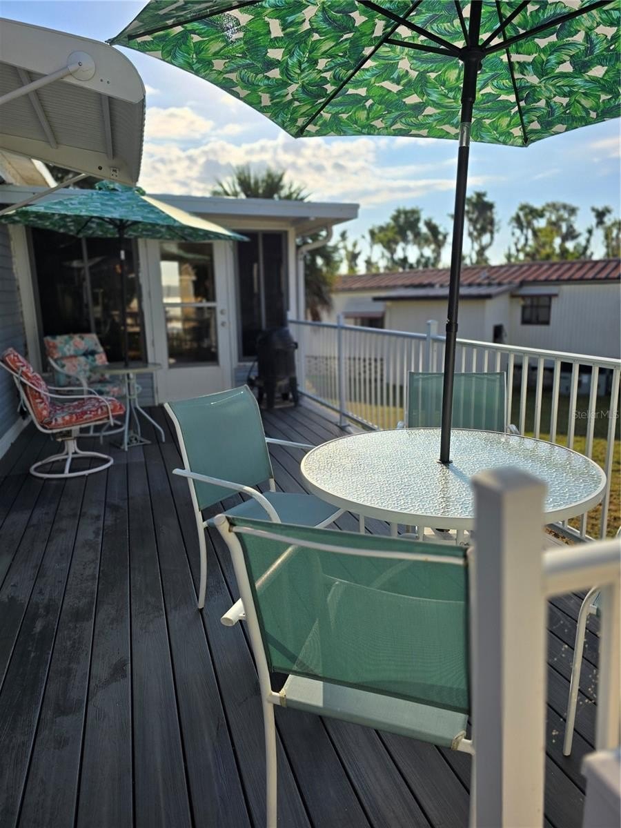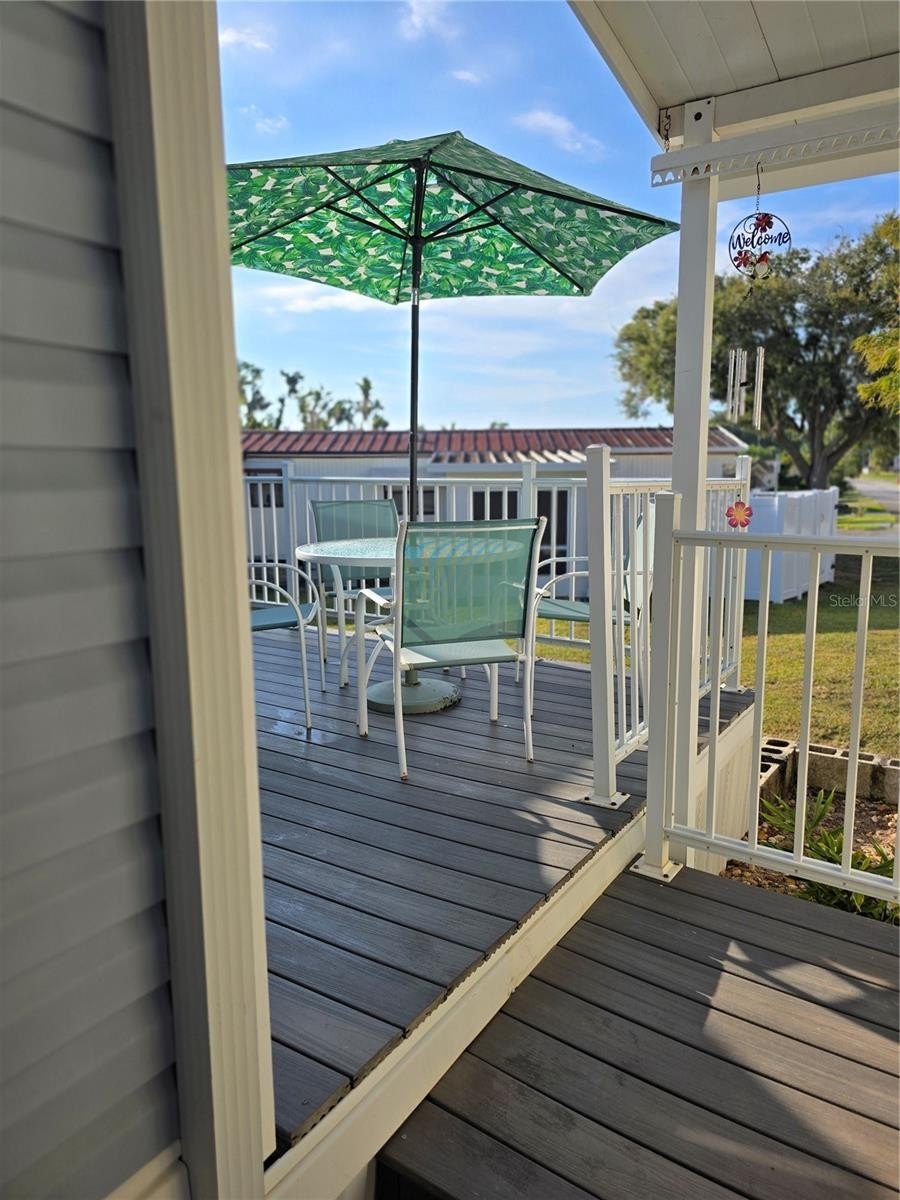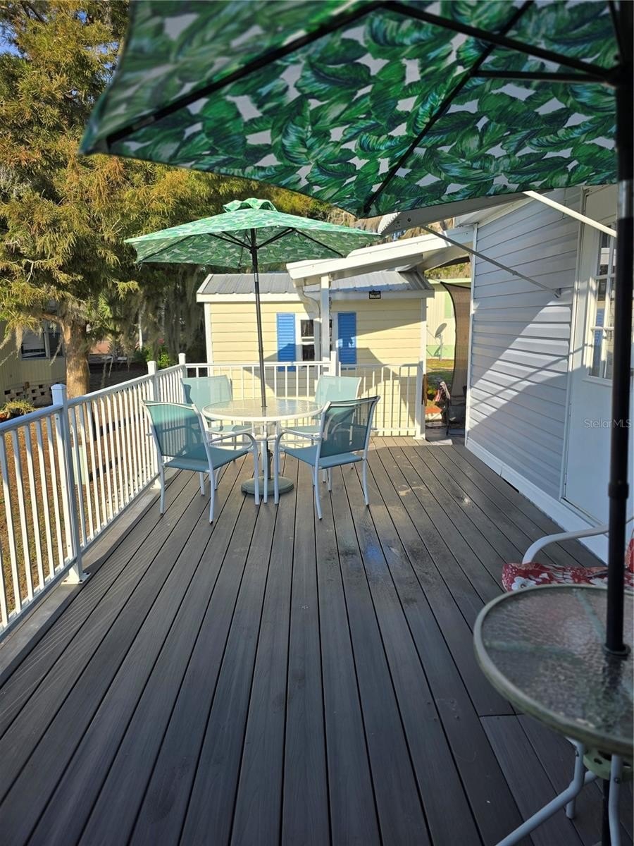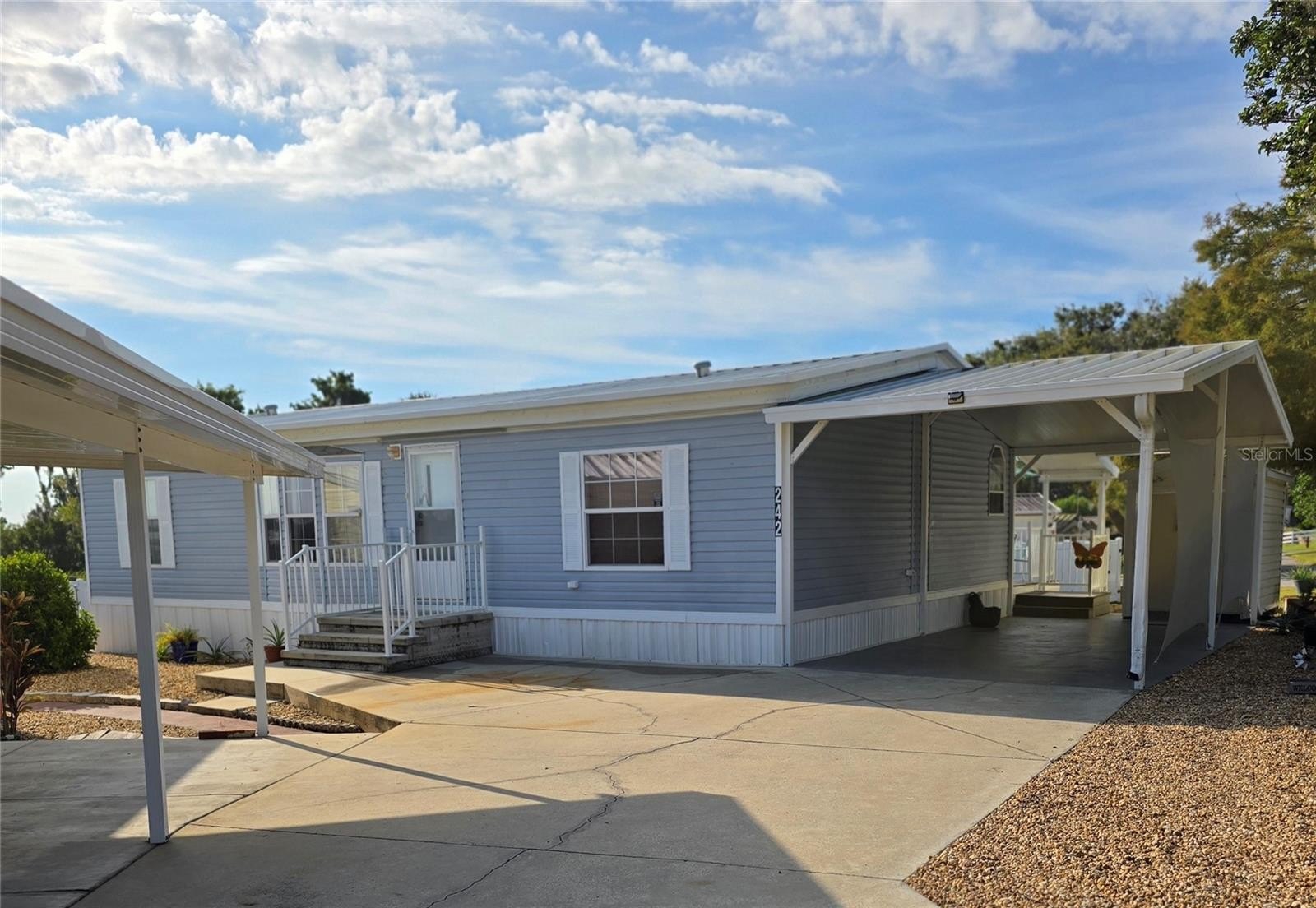 If you are looking for a spacious home in a beautiful community, look no further. This home is located in the 55+ Resident Owned community of Griffwood. Being in a resident owned community, you can easily afford the low maintenance fees (not lot rent) which also includes your water, sewer and trash pickup. With 3 large bedrooms, 2 full baths, Corian countertops, a garden tub, a composite wood deck and a lanai that has a view of the lake (and you can see rocket launches from this lanai!), this home has it all. A metal roof over was installed a few years back that will last the lifetime of this home. The Central A/C & Heat Unit is just 2 years old. The attached carport can park the largest of trucks, plus there is plenty of room to park a golf cart or 2. With no grass to cut you will have plenty of time for fishing or swimming in the communities heated pool and attending the many dinners and activities that take place. Like more entertainment? The Villages is just a few minutes from Griffwood, you can enjoy their shops, restaurants and entertainment without paying to live in The Villages. Come take a look!