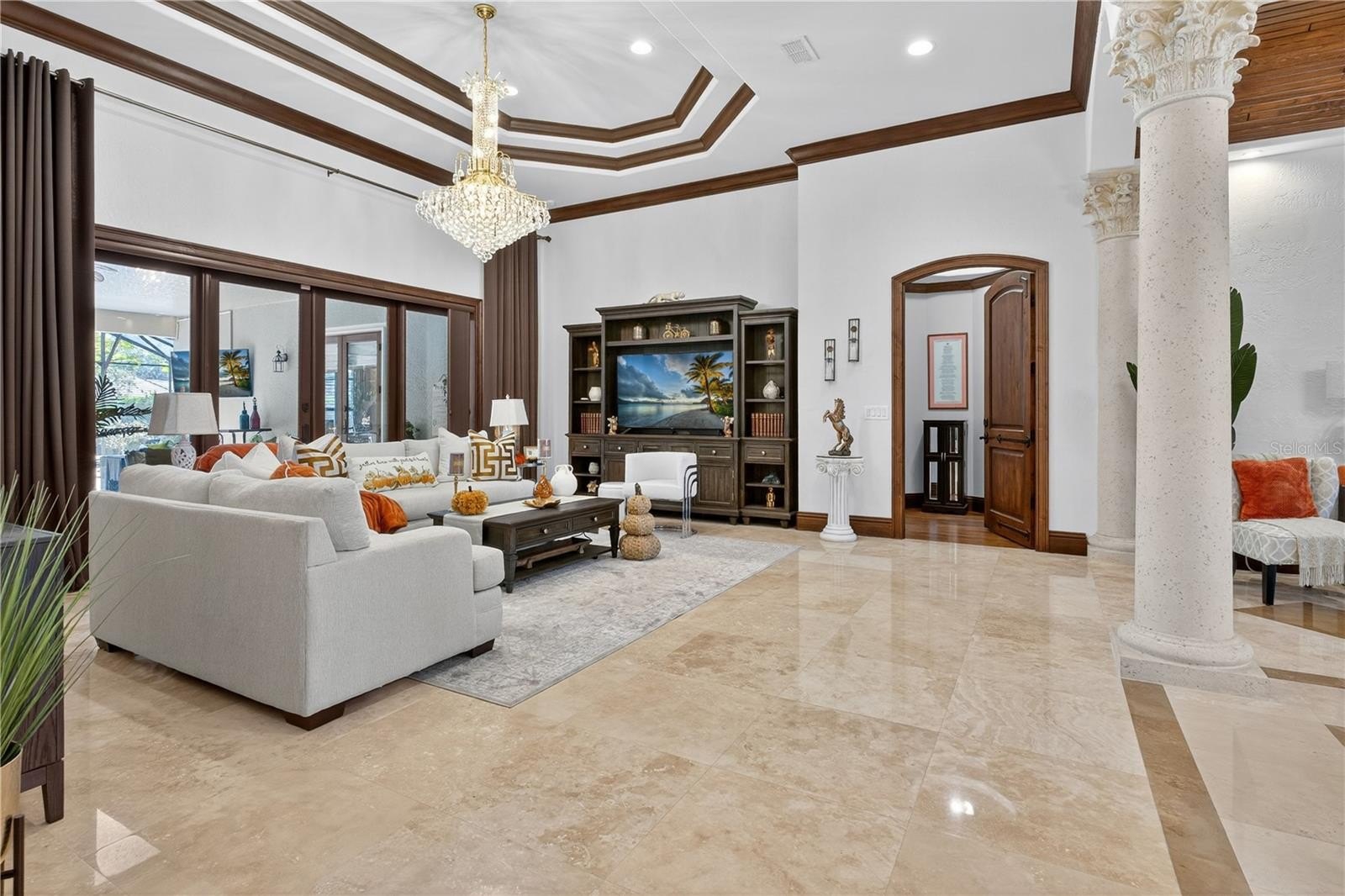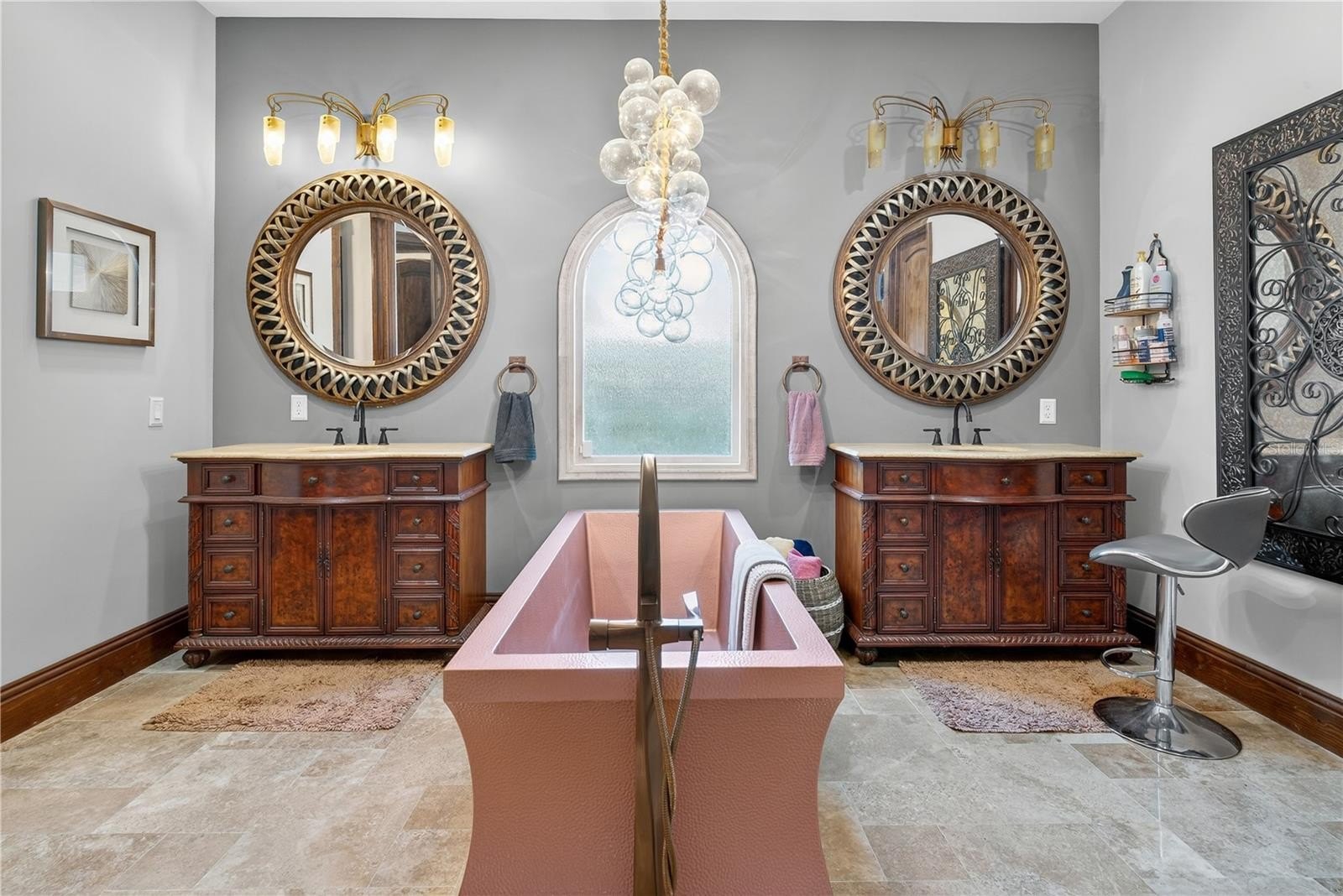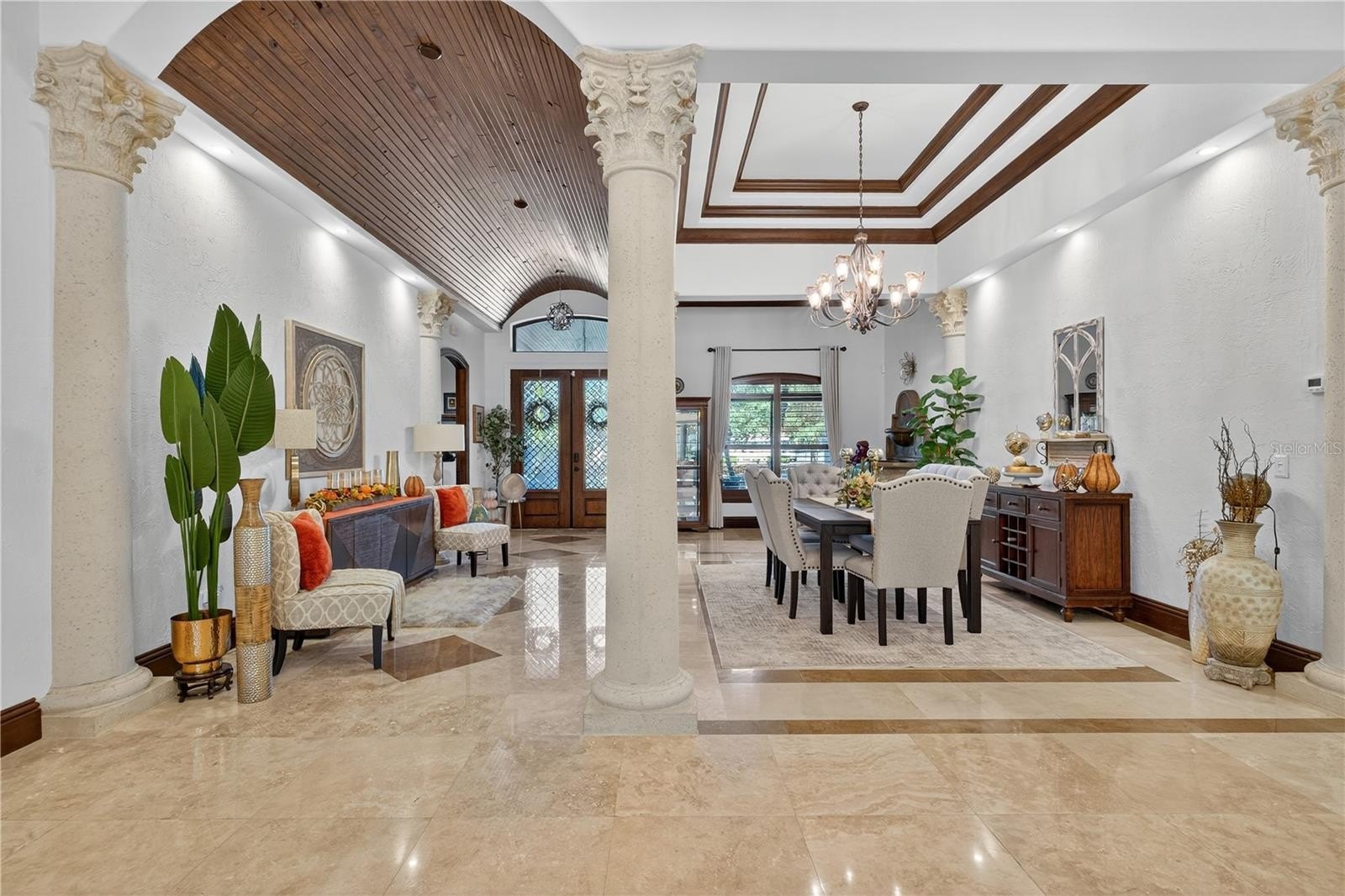 Elegant and timeless, this beautifully renovated home blends classic design with modern comfort. Located on a private cul-de-sac, it features travertine floors, Corinthian columns, and a spa-inspired primary suite with a custom walk-in closet and pool views. The chef?s kitchen offers refinished cabinets, gas cooktop, custom coffee bar, and updated appliances. The fifth bedroom is perfect as a theater, game room, or flex space to fit your lifestyle. Energy-efficient windows with shock sensors, custom shades, luxury chandeliers, fresh interior and exterior paint and smart keyless locks add security and style. The garage includes extra storage with three overhead racks. Outside, enjoy a saltwater pool with new pavers, extended driveway, updated landscaping, and a fenced backyard. Updates include a new hot water heater, washer and dryer, pool pump, and a transferable home warranty valid through Nov 2026. Move-in ready and truly turnkey!