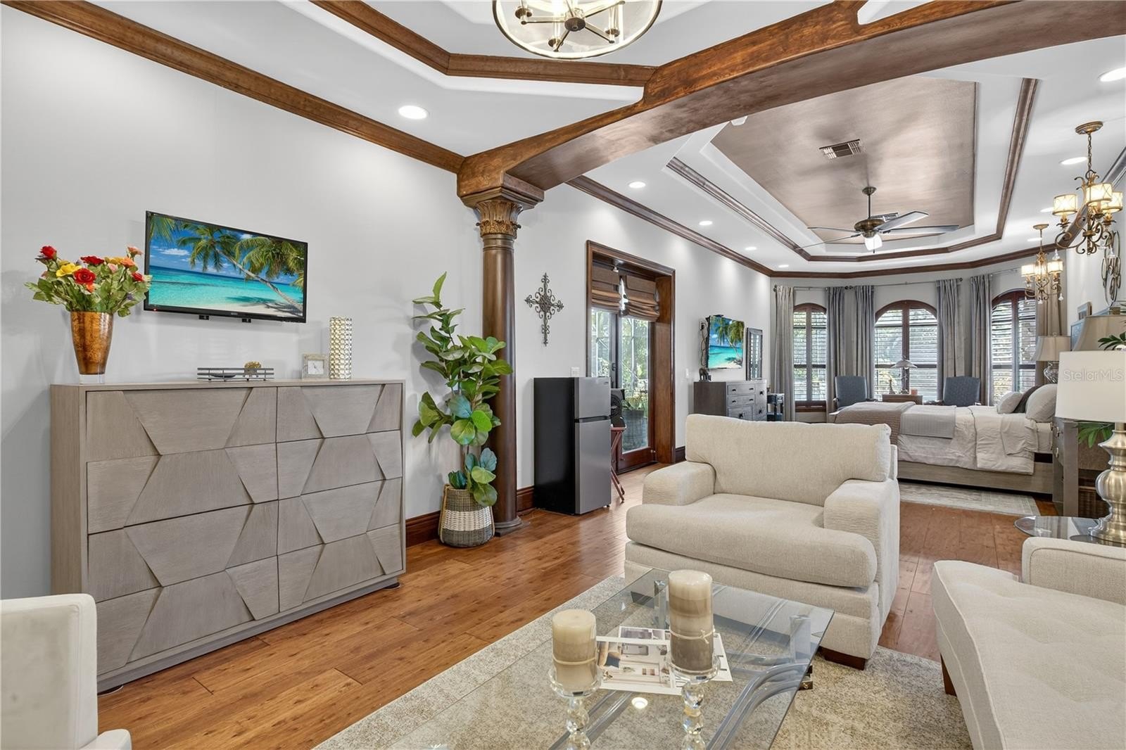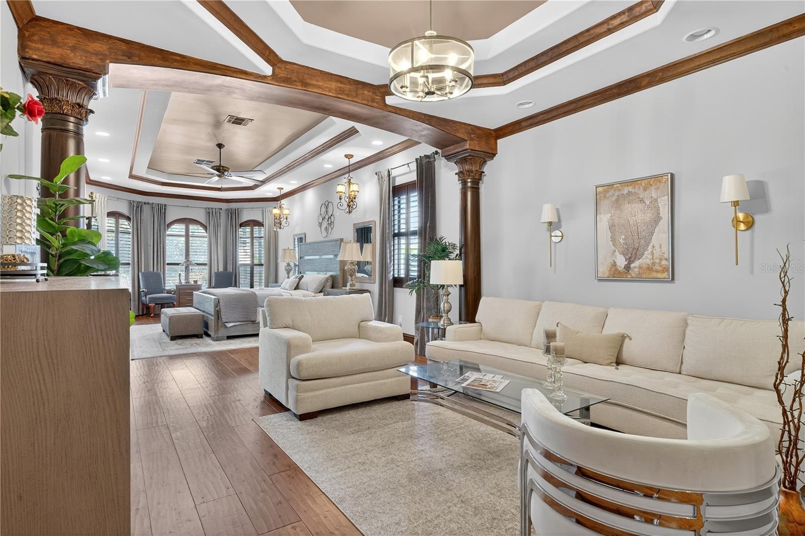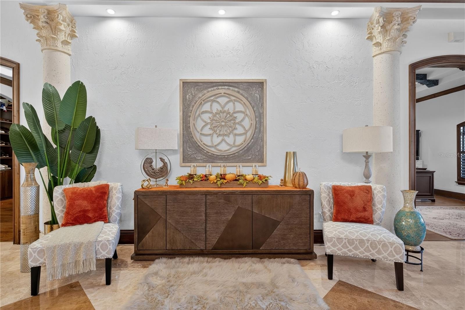 Elegant and timeless, this beautifully renovated home blends classic design with modern comfort. Located on a private cul-de-sac, it features travertine floors, Corinthian columns, and a spa-inspired primary suite with a custom walk-in closet and pool views. The chef?s kitchen offers refinished cabinets, gas cooktop, custom coffee bar, and updated appliances. The fifth bedroom is perfect as a theater, game room, or flex space to fit your lifestyle. Energy-efficient windows with shock sensors, custom shades, luxury chandeliers, fresh interior and exterior paint and smart keyless locks add security and style. The garage includes extra storage with three overhead racks. Outside, enjoy a saltwater pool with new pavers, extended driveway, updated landscaping, and a fenced backyard. Updates include a new hot water heater, washer and dryer, pool pump, and a transferable home warranty valid through Nov 2026. Move-in ready and truly turnkey!