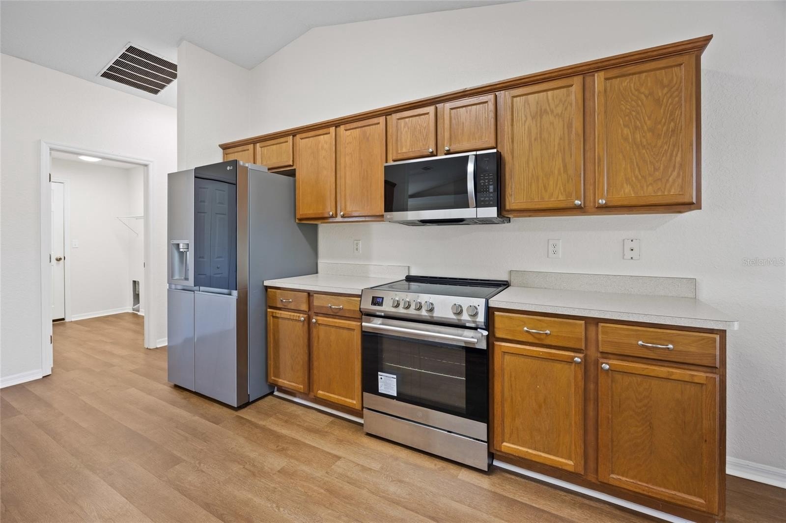 Step inside to find neutral tones, updated vinyl & carpet flooring, and a functional layout perfect for easy living. The kitchen features solid wood cabinets, newer LG stainless steel appliances (rage, microwave, fridge) and a dishwasher too.