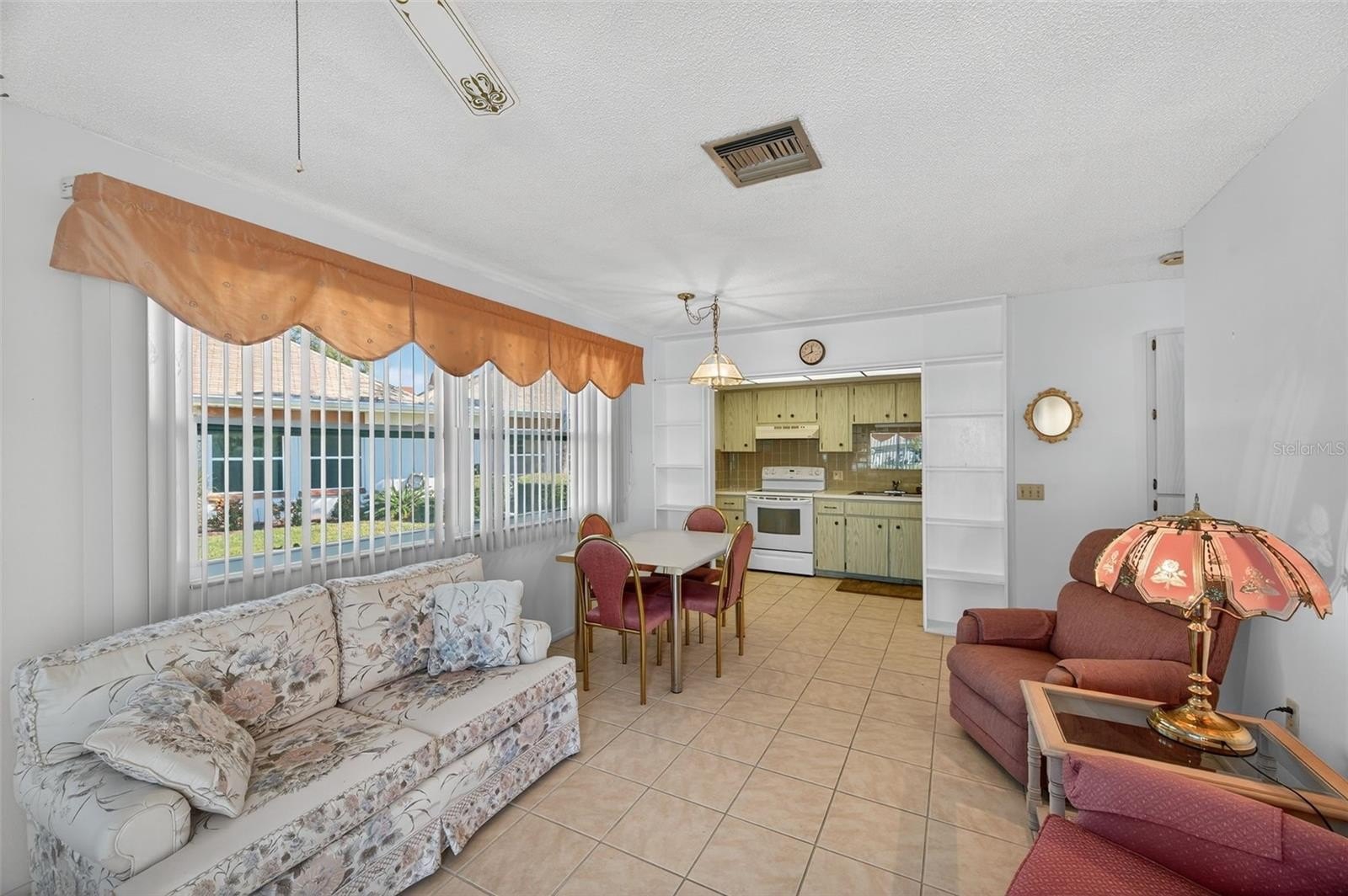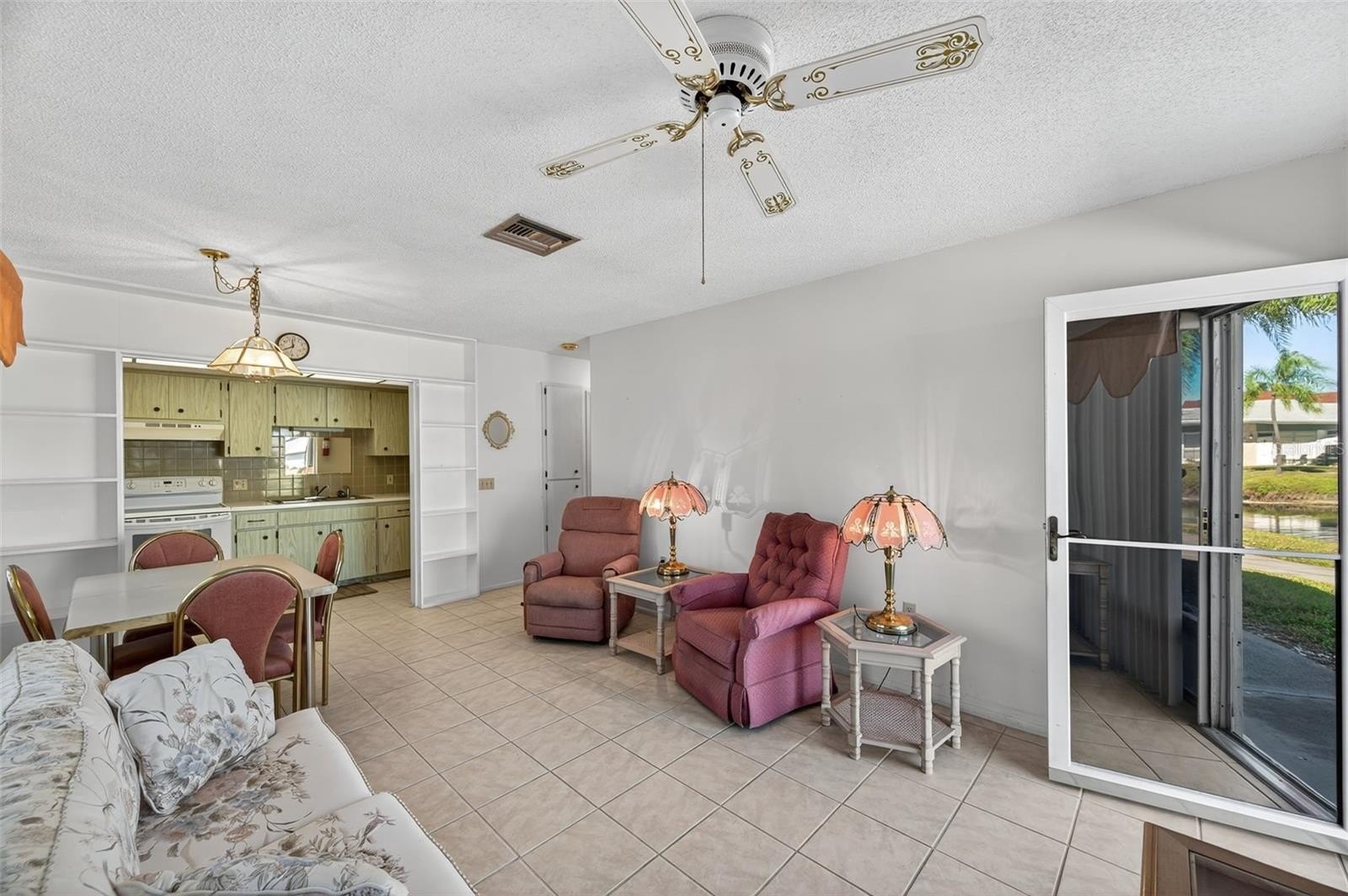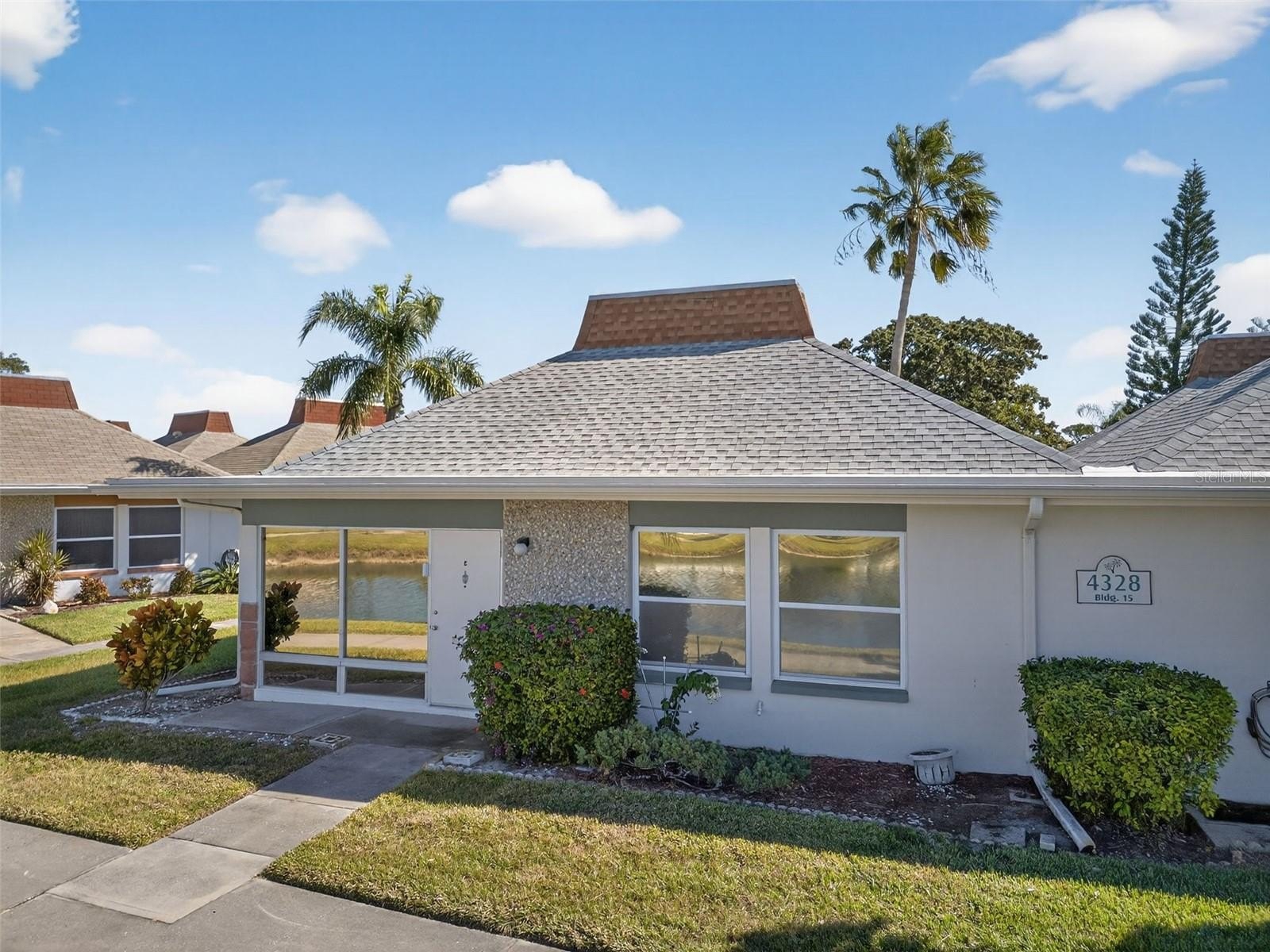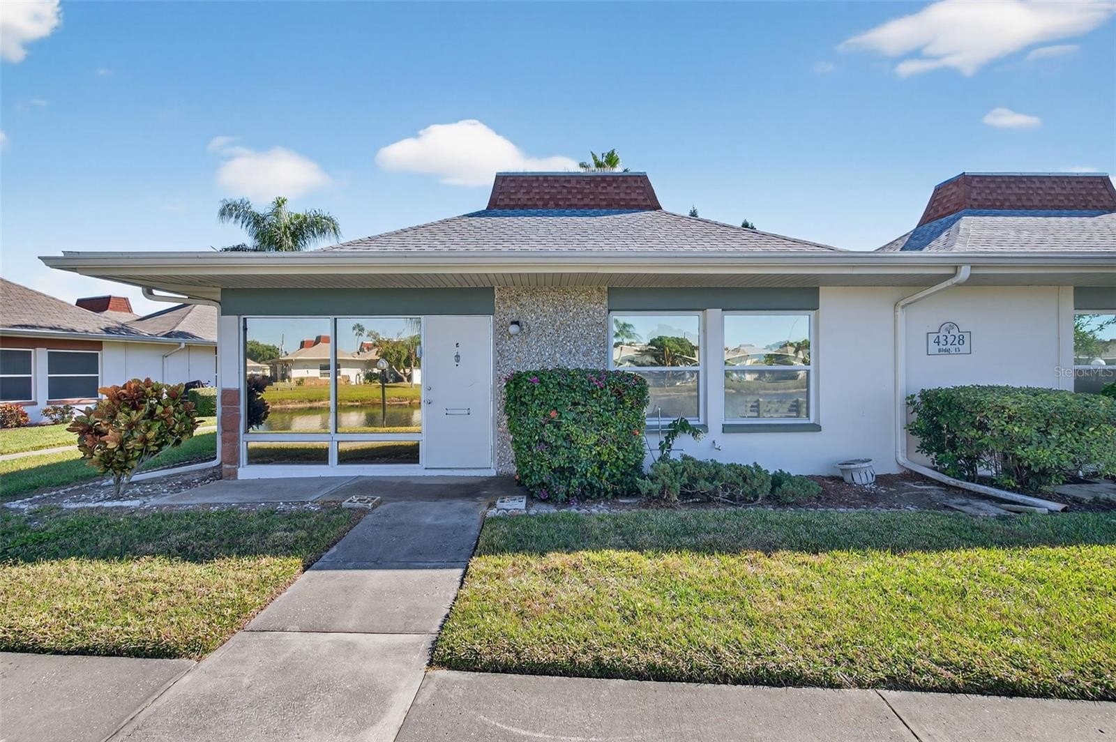 Welcome to 4328 Tahitian Gardens Circle #E, a serene corner-unit condo nestled within the gated 55+ community of Tahitian Gardens. As you enter, natural light fills the living and dining area, where a wall of windows frames peaceful water views and the manicured landscape beyond. The open layout flows seamlessly from the comfortable sitting area to the dining space, creating an inviting setting to relax or gather with friends.