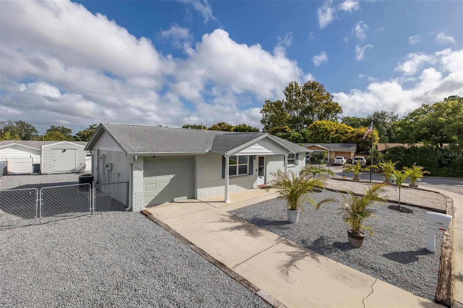 Price Improvement-Motivated Seller! Welcome to coastal comfort at 7739 Salt Lane, tucked away on a charming corner lot in Port Richey, Florida, just minutes from the Gulf’s sandy shores. With 2 bedrooms, 1.5 baths, and a one-car garage, this home offers intimate living enhanced by smart updates and Florida-friendly charm. Arrive to a beautifully landscaped, low-maintenance yard with granite rock accents and tropical palms. The fully fenced backyard and spacious screened porch create the perfect setting for pets, kids, or quiet evening retreats. Nestled in a peaceful, established neighborhood with no HOA, no CDD, and not in a flood zone, this property offers both privacy and freedom. The freshly painted exterior adds fantastic curb appeal, while the cozy interior blends comfort and practicality with an updated kitchen (2021), new laminate flooring (2021), and a welcoming living area ideal for relaxing or entertaining. Outside, enjoy the large fenced yard—great for BBQs and gatherings—and a spacious shed for tools, hobbies, or beach gear. There’s also ample off-street parking for guests, a boat, or multiple vehicles. Major system updates ensure peace of mind, including HVAC (2023), garage door (2021), roof (2018), water heater (2018), and newer double-pane windows—all contributing to lasting value and comfort. This thoughtfully updated home combines modern upgrades, manageable size, and zero HOA headaches—all just minutes from Florida’s Gulf beaches. Whether you’re downsizing, seeking a Florida home base, or dreaming of a coastal retreat, 7739 Salt Lane invites you to live the relaxed Florida lifestyle you’ve been waiting for.