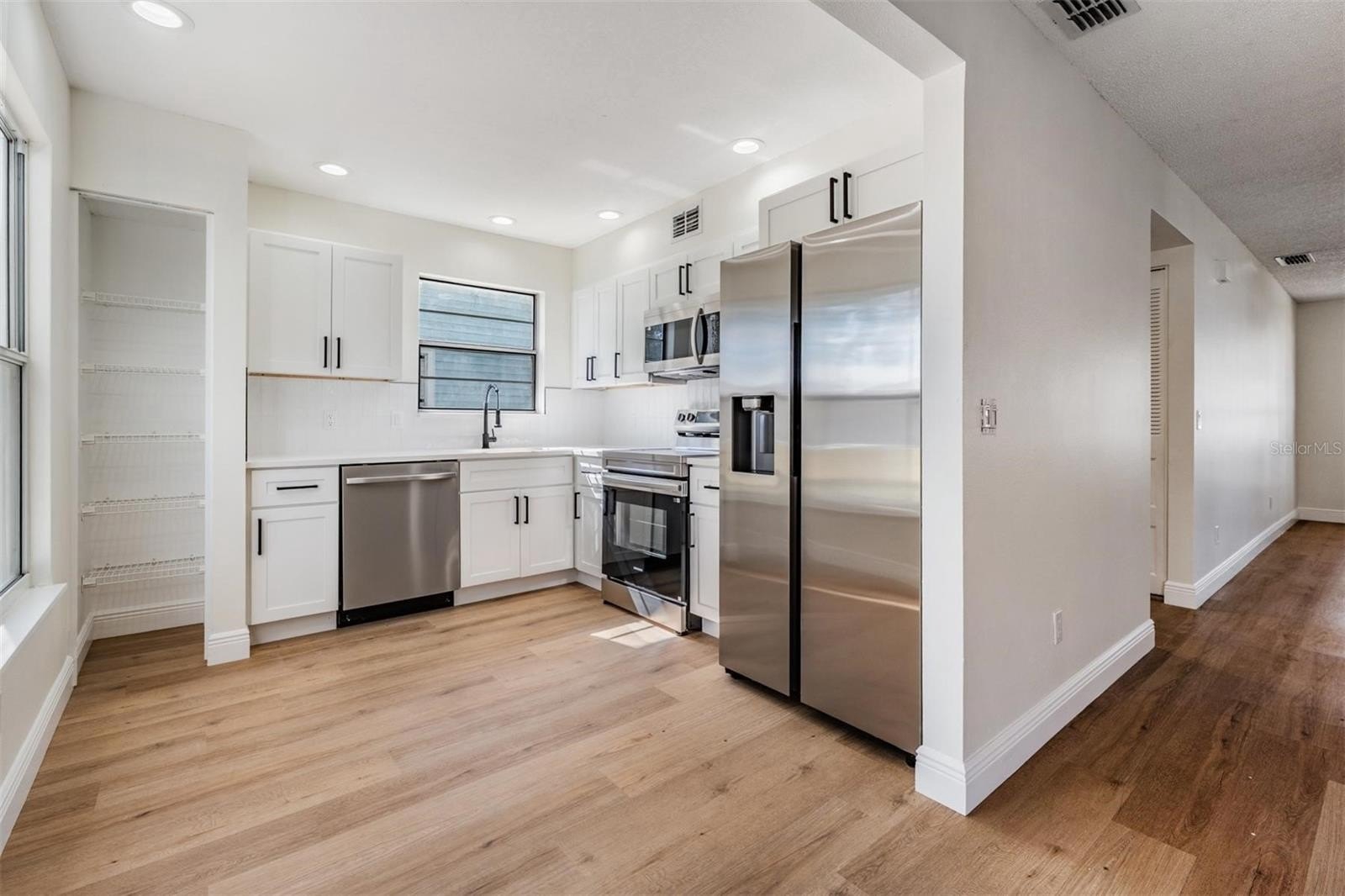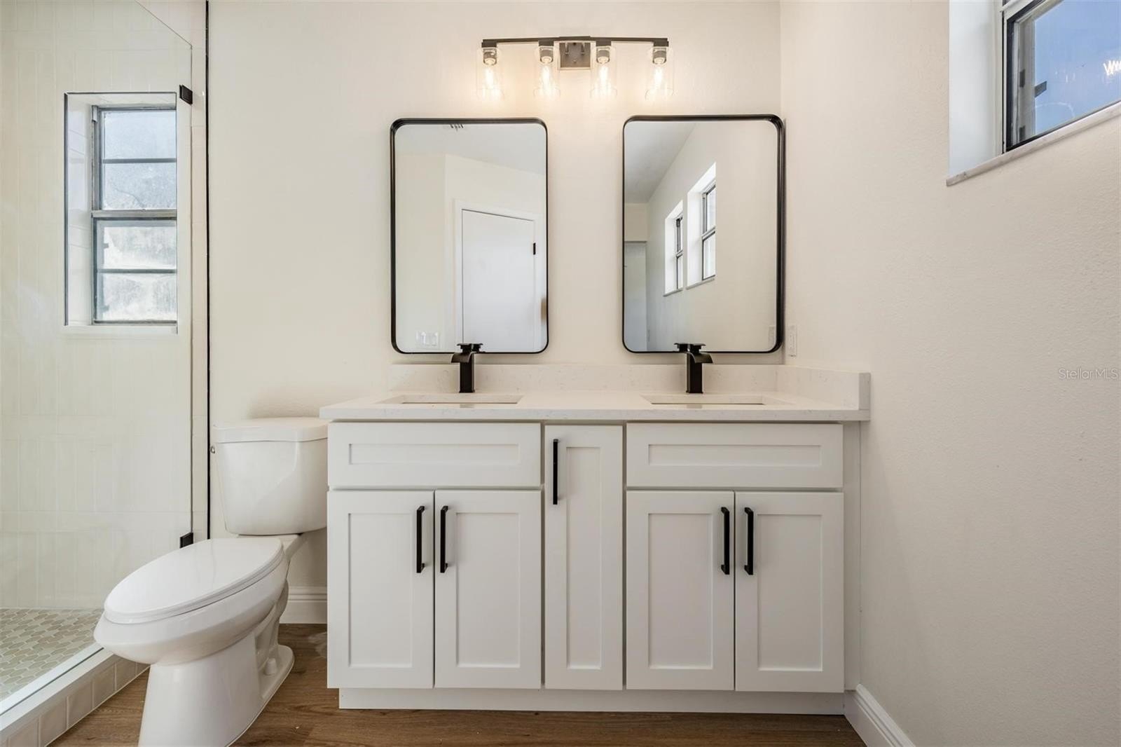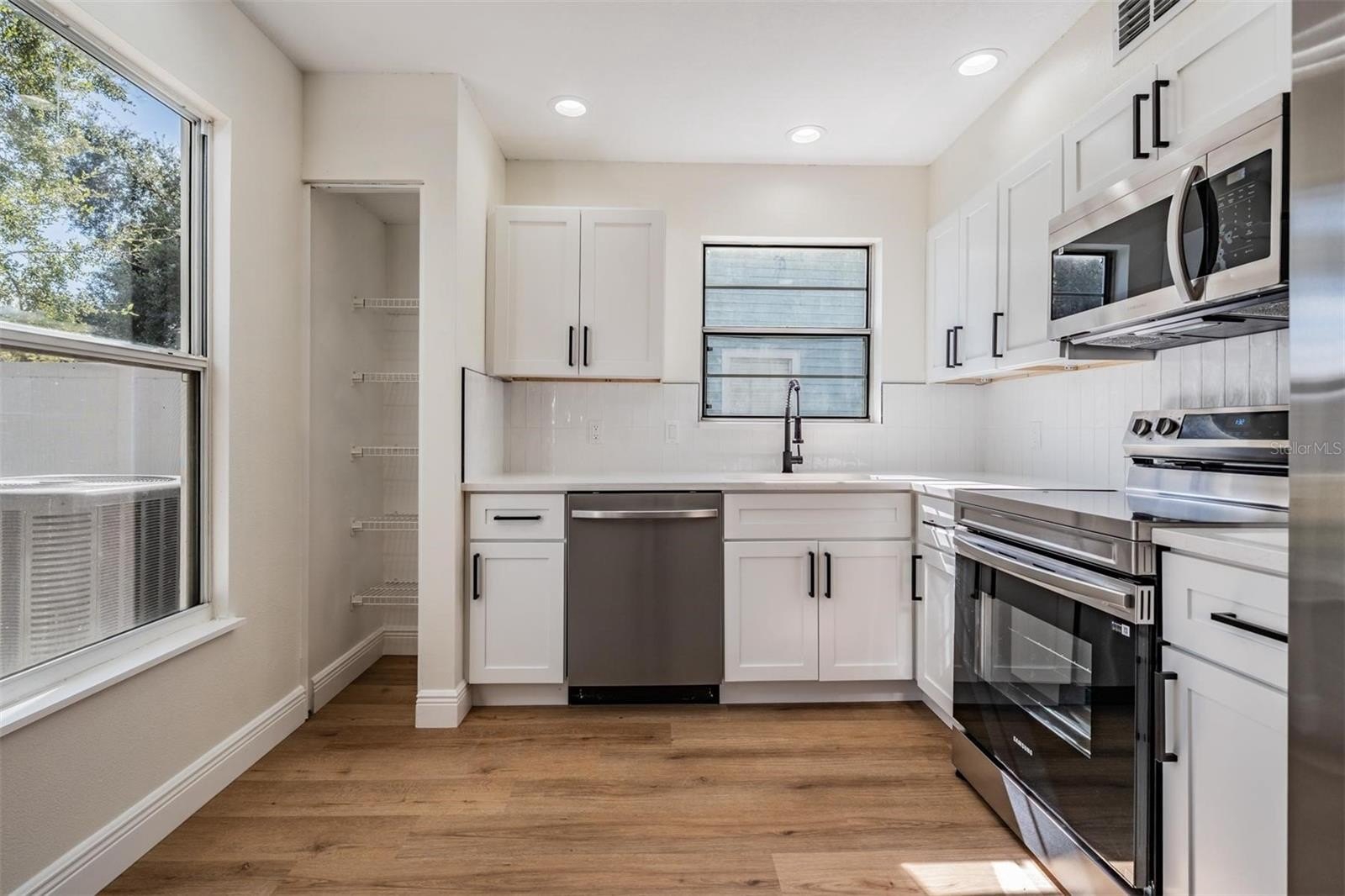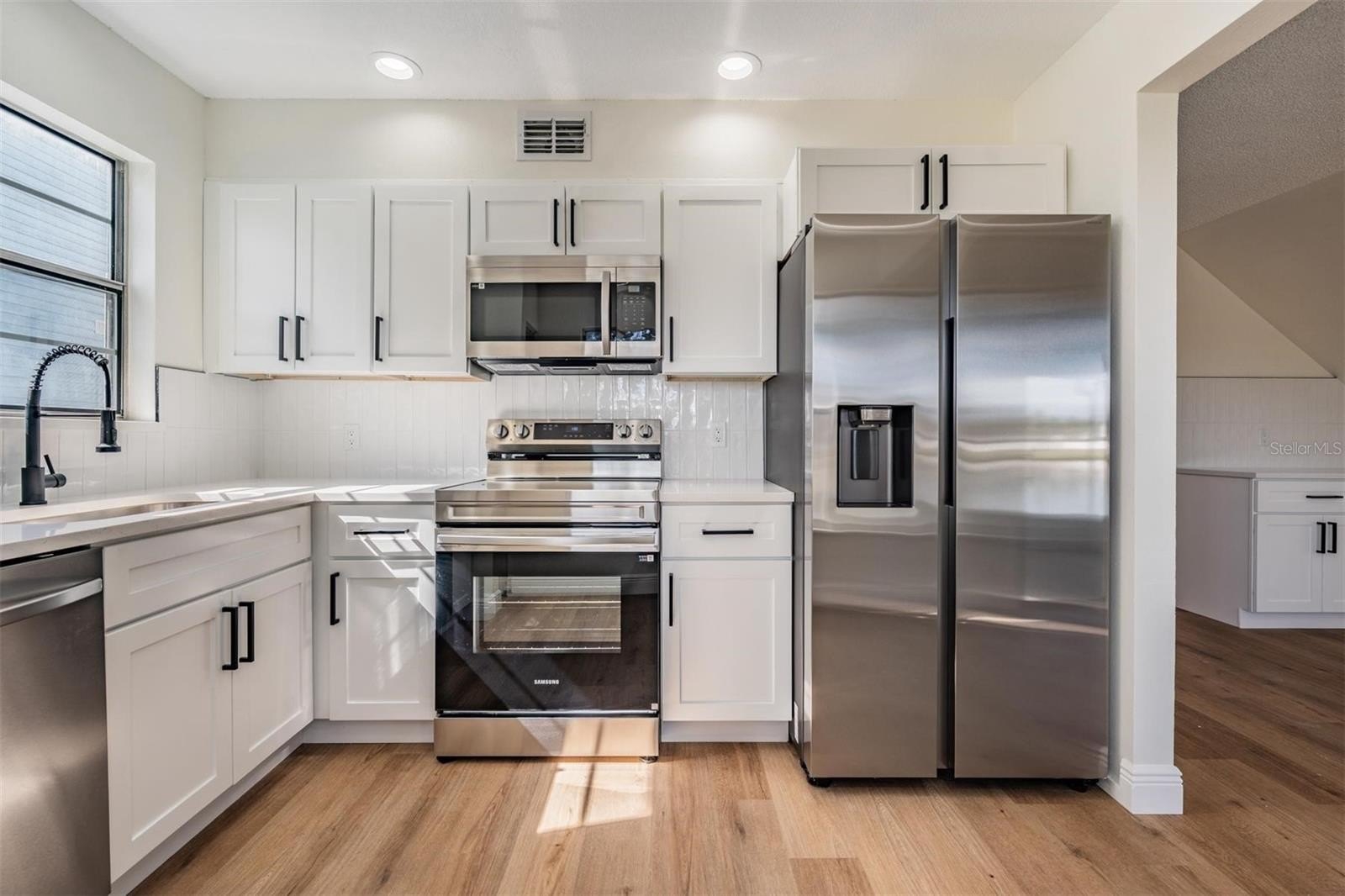Your search is over! Welcome to this beautifully renovated home in Plantation featuring stunning pond views, a wrap-around porch, and a fully updated interior. Upon entering, you’re greeted by an open floor plan with the family room to the right and a modern kitchen with an eat-in dining area to the left. The kitchen boasts stainless steel appliances, quartz countertops, a new backsplash, and solid wood, soft-close cabinetry. A convenient half bath and laundry closet are also located downstairs. Upstairs offers three spacious bedrooms and newly renovated bathrooms. The primary suite features double entry doors and an en-suite bath with dual sinks, perfect for busy mornings. Enjoy cooler evenings on the screened-in patio overlooking the peaceful pond. Additional features include new LVP flooring throughout, fresh interior and exterior paint, and a new hurricane-rated garage door. Ideally located near shopping, dining, gyms, and the Veterans Expressway, this home truly has it all. Schedule your private showing today.