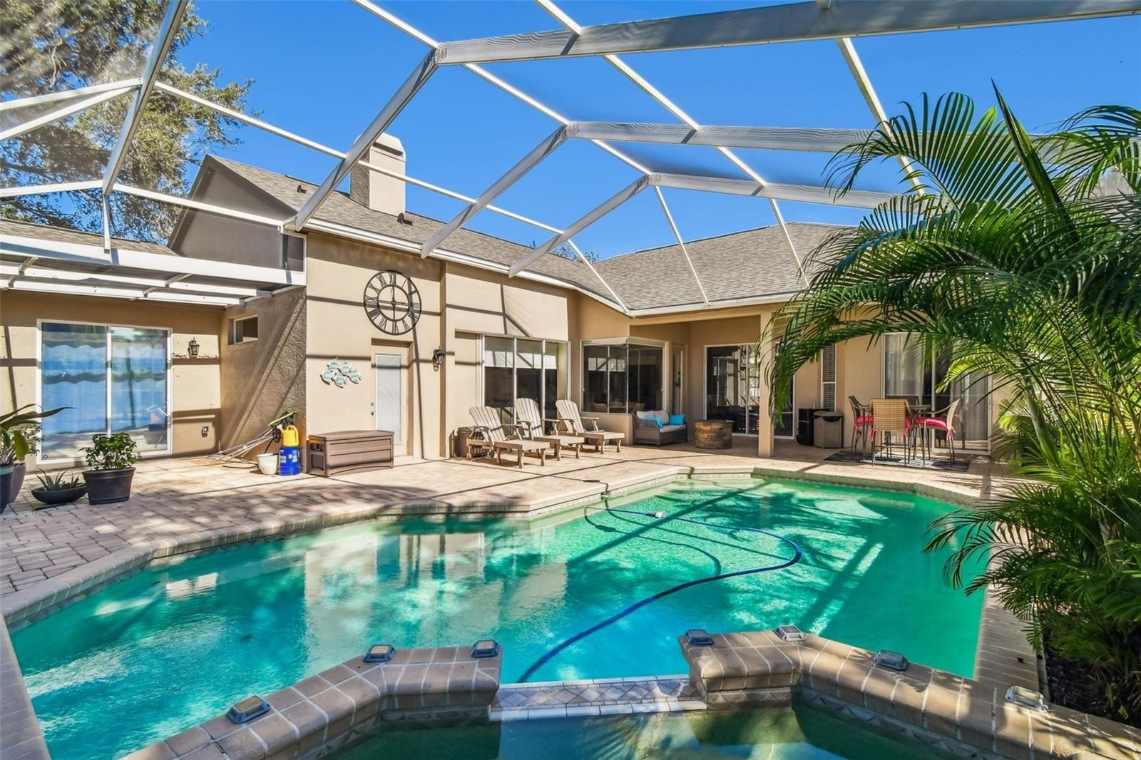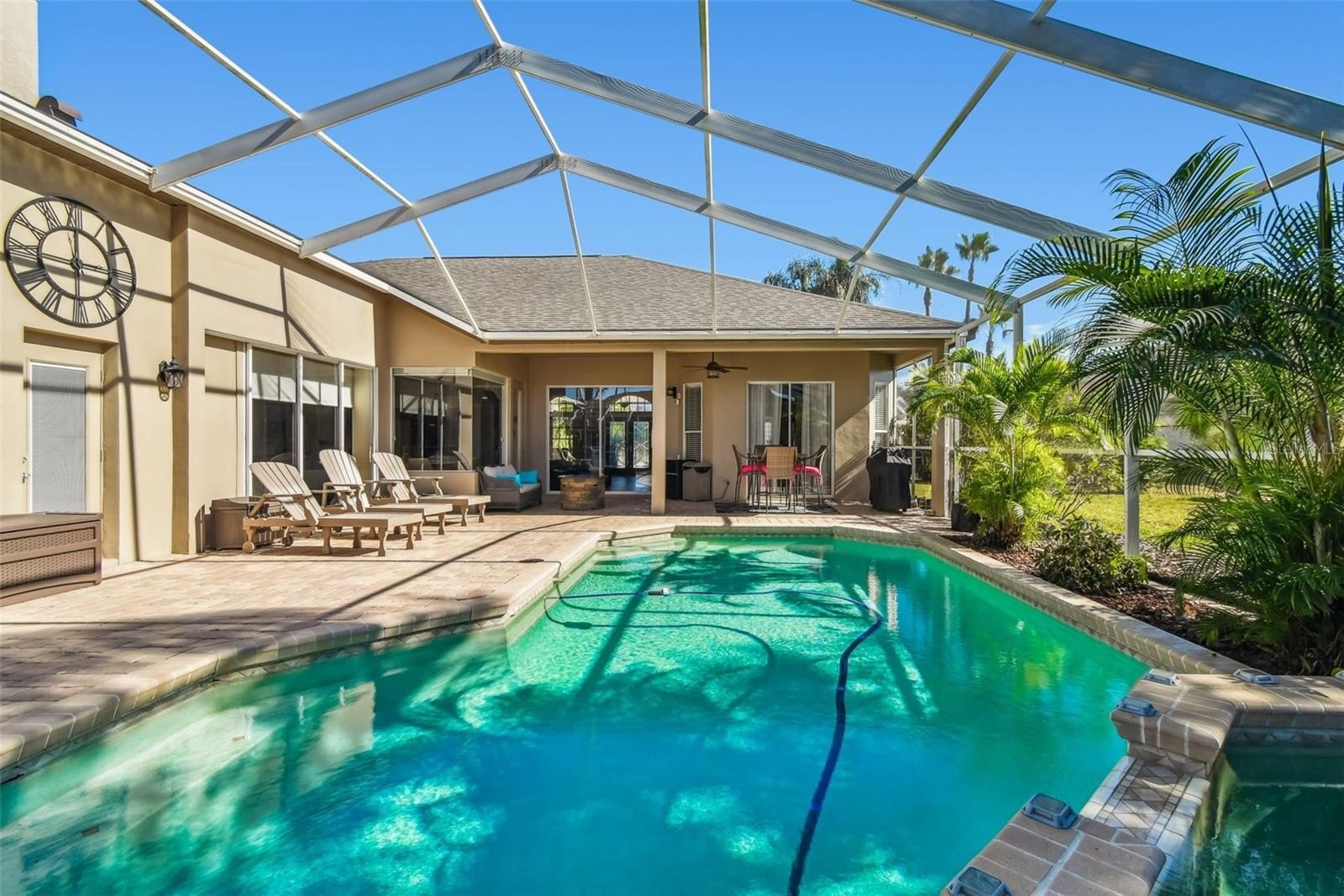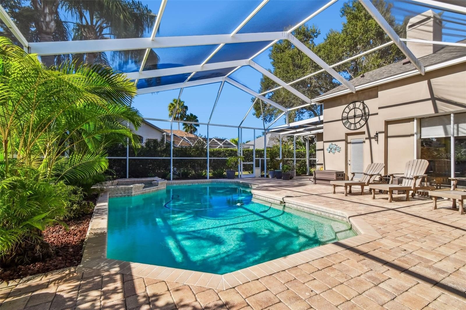 Fabulous Pool Views and Spacious Living in Robinwood at Lansbrook!Enjoy fabulous pool views from almost every room in this beautifully designed home, even the office. Perfectly positioned on its lot, this residence offers a stunning and expansive screened pool area while still leaving plenty of yard space for pets or play.Entertaining is a dream with the large open floor plan and seamless access to the pool from the kitchen. Plus, there’s no need to worry about wet footprints inside, thanks to a convenient full bathroom with direct pool access.This versatile layout features 5 full bedrooms plus an office, providing ample space for everyone. The spacious primary suite includes dual walk-in closets, an ensuite bath with a garden tub, walk in shower and sliders that open directly to the pool area. The smart split floor plan also includes a secondary bedroom with its own pool access — perfect for guests or multi-generational living. A 3-car garage provides plenty of room for vehicles, storage, or your weekend toys. Move in with confidence — all the big-ticket items have been updated. Lansbrook, is known for its top-rated schools, beautiful park like setting, and active lifestyle amenities. Enjoy miles of scenic walking trails where you’ll often spot deer. Residents have access to two exceptional community parks — a gated waterfront park featuring a private boat ramp to Lake Tarpon, restrooms, a pavilion, and a playground, and Lansbrook Commons Park, offering pickleball, volleyball, basketball, a playground, and open green spaces for recreation and relaxation. Golf enthusiasts will love the convenience of having Lansbrook Golf Club within the community and more than ten additional golf courses located within a 30-minute drive. Call today to schedule a private showing!