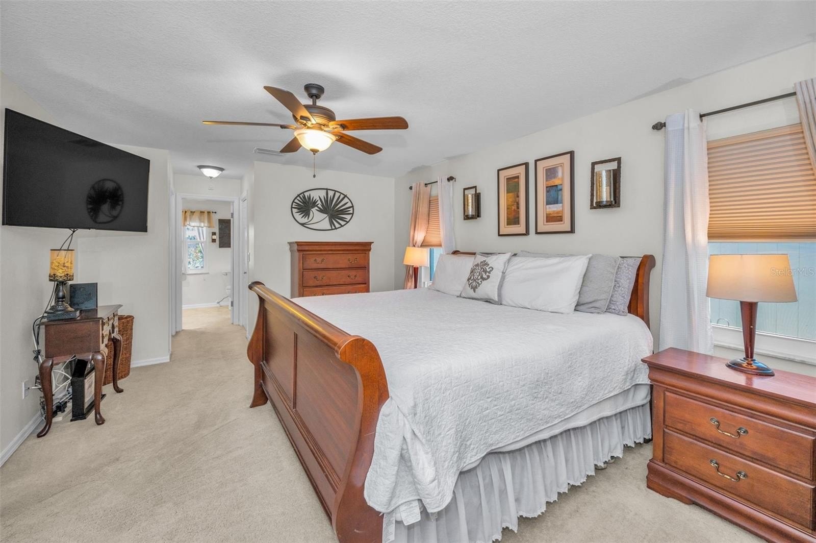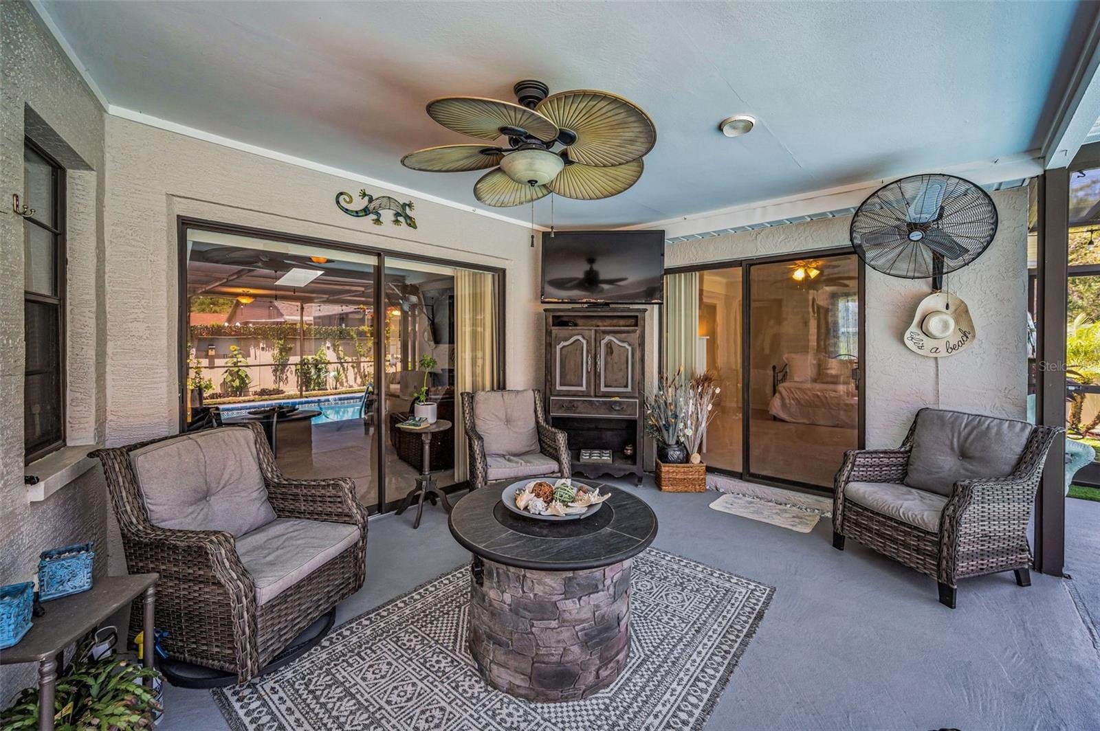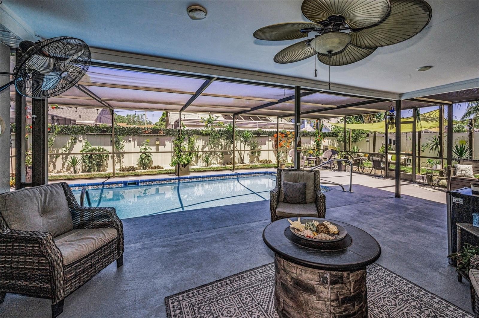 Located in the desirable Hunters Ridge community with low HOA fees, this beautifully maintained 3-bedroom, 2-bath pool home offers the perfect blend of comfort, charm, and outdoor living. From the moment you arrive, the double-door entry invites you into a bright and open floor plan featuring cathedral ceiling, skylights, and a cozy wood-burning fireplace—ideal for gathering with friends and family. With over 2,000 sq ft of heated living space, there’s plenty of room to live, relax, and entertain. The wood floors in the dining room add warmth and elegance, while the spacious layout flows effortlessly into the heart of the home. One of the standout features is a versatile bonus room (15x11) connected to one of the bedrooms, which opens directly to the expansive pool deck. Step outside and enjoy the true Florida lifestyle with a screened-in pool, outdoor shower, designated grilling area, and a covered private patio space in the fully fenced backyard. Major updates give peace of mind, including a new roof (2022), AC (2016), and hot water heater (2022). You’ll also appreciate the whole-house water purification system, modern windows, irrigation system, and Ring security system included with the home. The garage offers pull-down attic access for extra storage, and the home has been freshly painted inside and out in recent years. As a bonus the outdoor TV, dry bar cabinet and outdoor refrigerator all convey—everything you need to enjoy Florida living from day one! Home is conveniently located near shopping, top golf courses, beautiful beaches, and parks. This home checks all the boxes for location, comfort, and lifestyle.