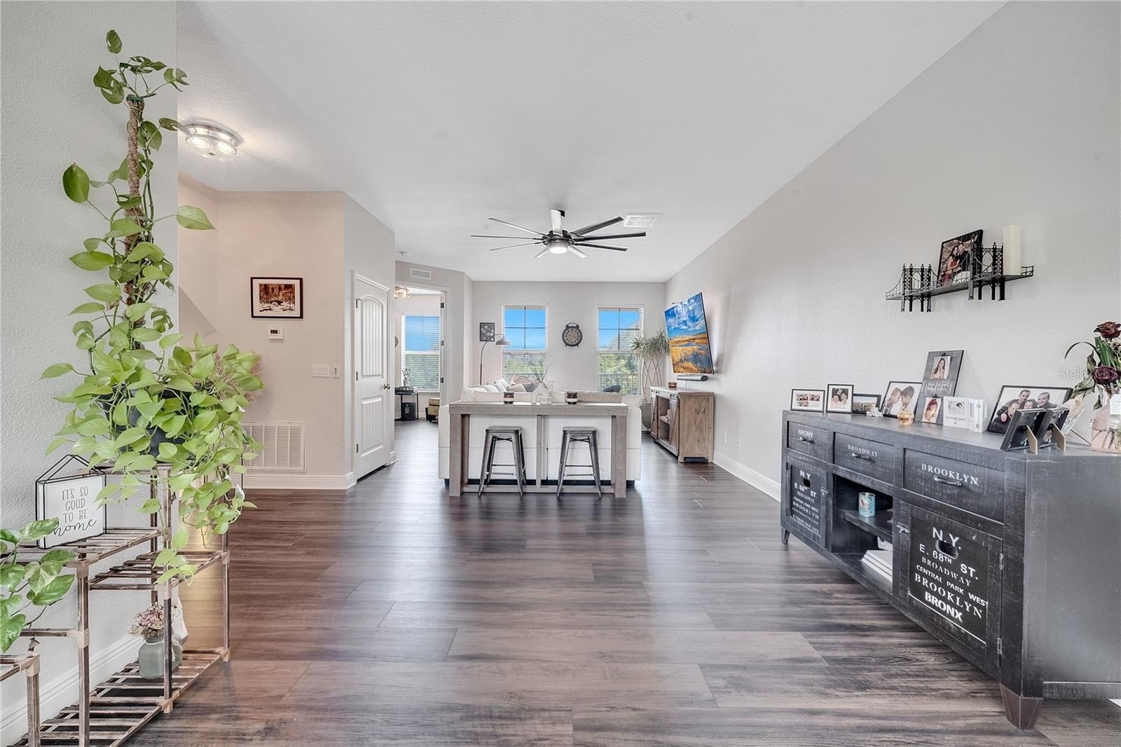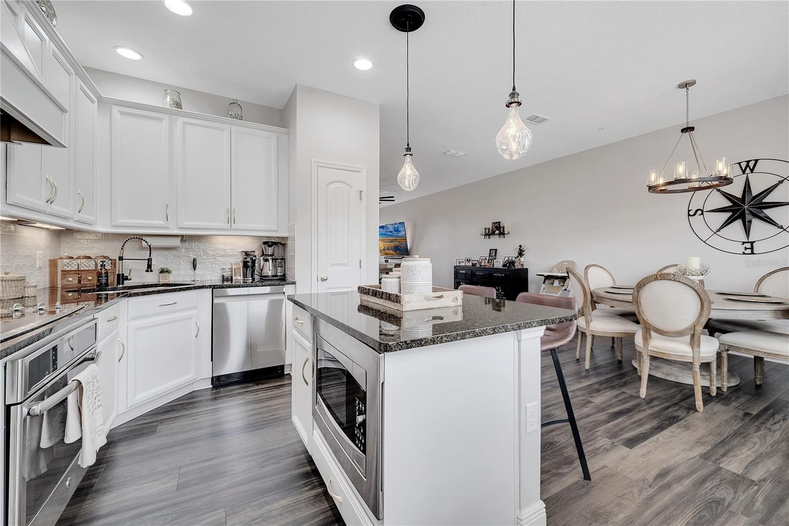 The bright and open second-floor layout features 9-foot ceilings and a seamless flow between the kitchen, dining, and living areas. The kitchen boasts granite countertops, stainless steel appliances, an island, and generous pantry space ideal for cooking, entertaining, or simply enjoying daily life.