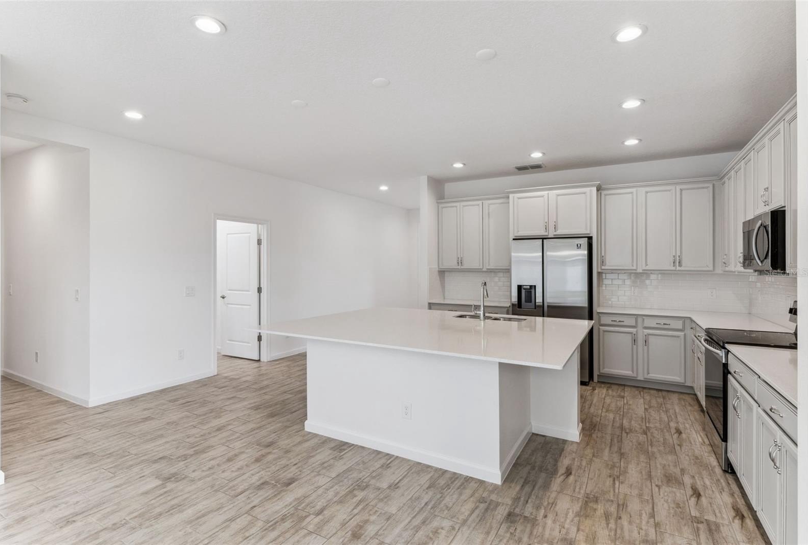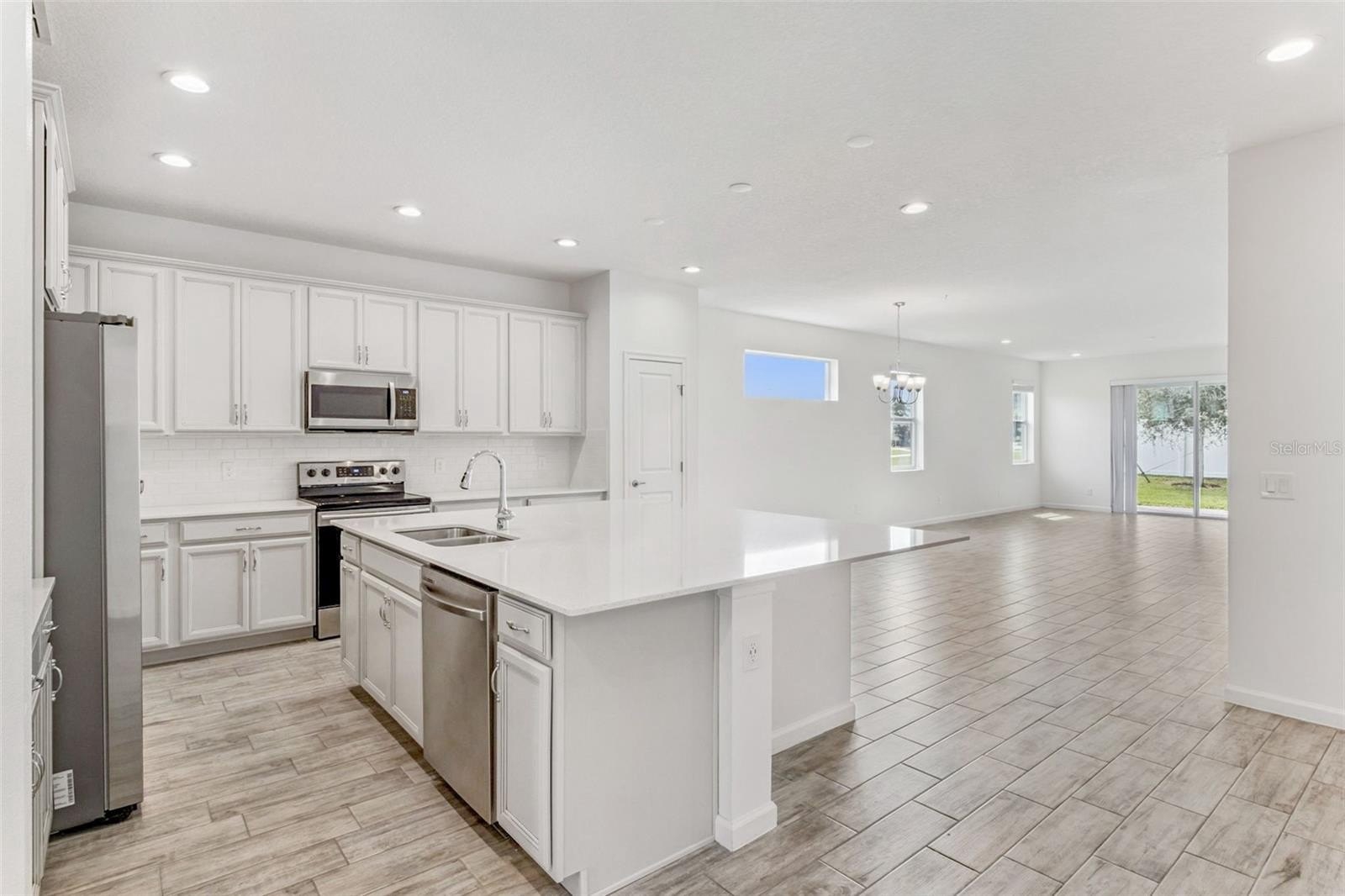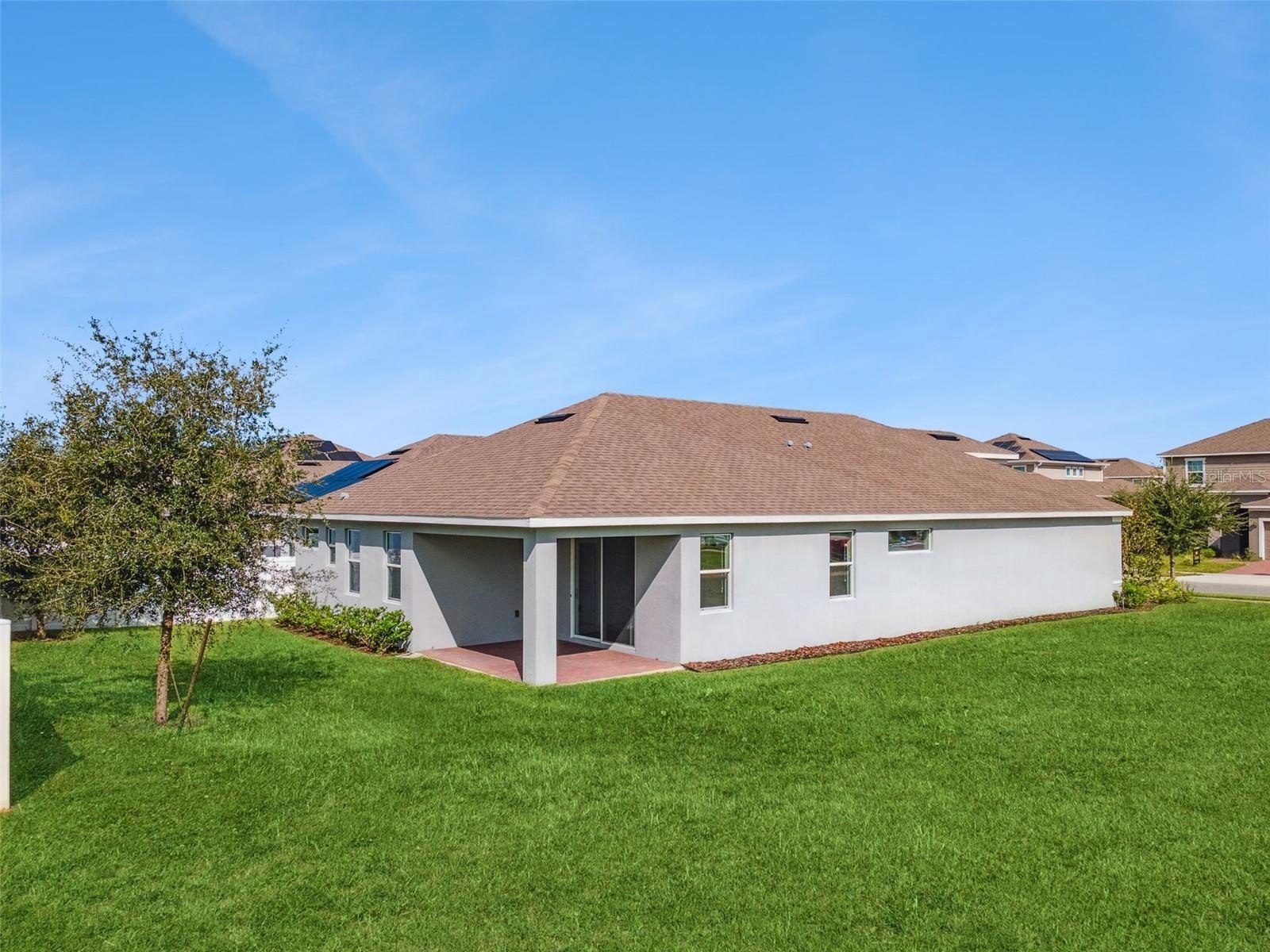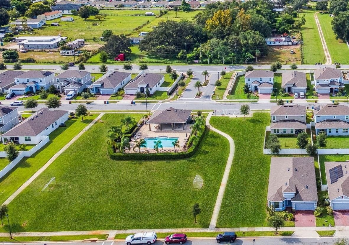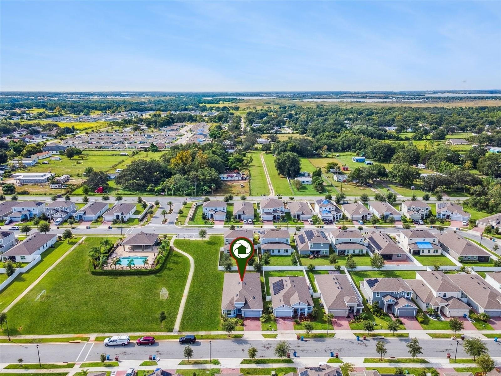 Open Floor Plan | Premium Lot with No Side Neighbor | Located next to the community pool and soccer field, this single story home sits on a premium lot with no side neighbor. An open layout connects the kitchen, dining, and living areas. The kitchen includes a oversized island, 42-inch cabinetry, quartz countertops, and modern finishes. There are 4 bedrooms and 3 baths, plus a front flex room with bay windows that can be used as an office or den. The owner’s suite has a walk-in closet, dual vanities, and a large shower with built-in seating. A covered lanai provides outdoor space with views of the field. Located just off Route 27 with easy access to I-4, Redbridge Square, is close to shopping, dining, Golf and is just 16 miles to Walt Disney World. Why deal with construction. This move in ready, 4 year young home, located in an established community with low HOA, and no CDD fee, is available today!