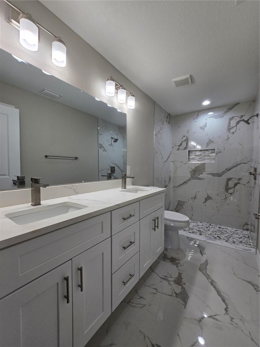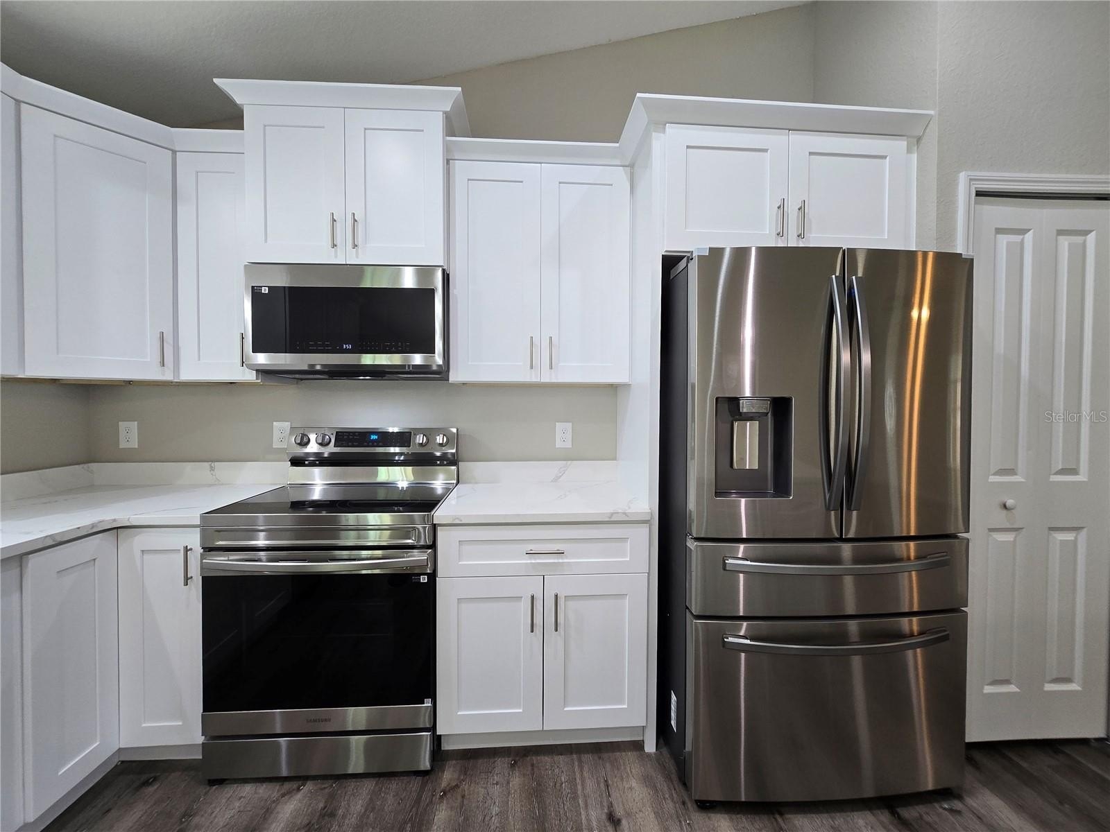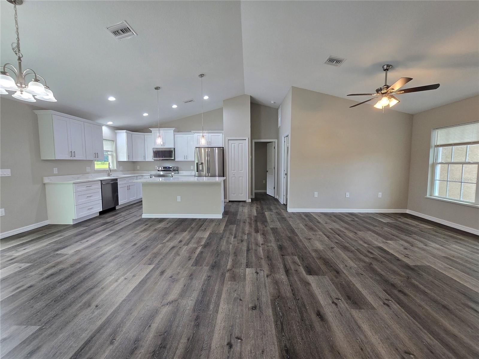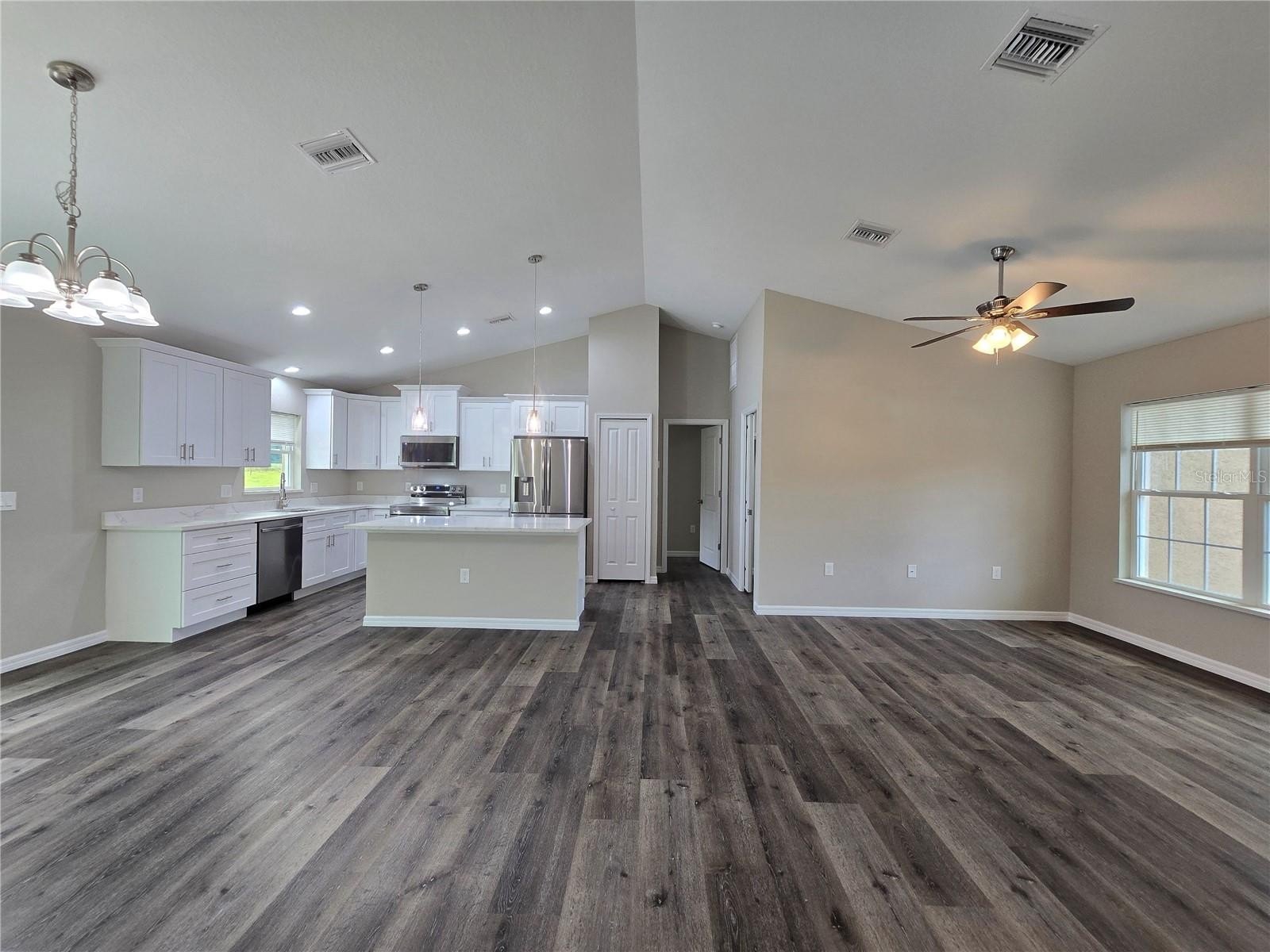 Come see this wonderfully styled, 3 bedroom, 2 bath, 2 car garage on a OVERSIZED .26 AC LOT WITH NO BACKYARD NEIGHBORS EVER! In the very popular Silver Springs Shores area. This home features a split plan, high ceilings & QUARTZ STONE counters in the KITCHEN, BATHROOMS & WINDOW LEDGES! When you step in side, you will notice the open design with tall ceilings and a split floor plan. The primary bedroom features an oversized closet & en suite bathroom with A FULLY TILED, EZ ENTRY SHOWER & linen closet. The kitchen, has whisper quiet drawers & UPGRADED cabinets with stylish knobs. Gorgeous sink with a beautiful open view. DELUXE SMART APPLIANCE PACKAGE INCLUDES Stainless steel Fridge, Dishwasher, Stove & Microwave comes with the home. A beautifully patterned Quartz counter island comes with room for chairs. Nearby, you have access to the laundry room & garage via a handy pocket door. Across the house, the secondary rooms share the bathroom and will have good space for a full size bedroom set, office, or a game room. The choices are endless! Ample closet space has been supplied as well for all of their storage needs. The .26 acre LOT gives you plenty of room for all of your toys! NOT IN AN HOA so you are free to build a fence, add a pool, do what you want, how you want! On a well and septic system so NO UTILITY BILLS is also a great plus! If you install back up power in preparation for any possible outage, you will still have use of water and sewer as long as you have electric! Close enough to give you access to Belleview, Summerfield, The Villages, The Interstate and beyond. Less than 10 min to Wal-Mart, Publix, Aldi & Save a Lot, The post office, 3 auto parts stores & car washes as well as many food & medical offices nearby for your ease. A short drive in either direction will lead you to Ocala's downtown square or to our famous Lake Weir, where you can boat, kayak, jet ski, or enjoy a meal on the lake over looking the sunset. First Time Homebuyer & Veteran friendly! Almost completed, you can be in before the Holidays!