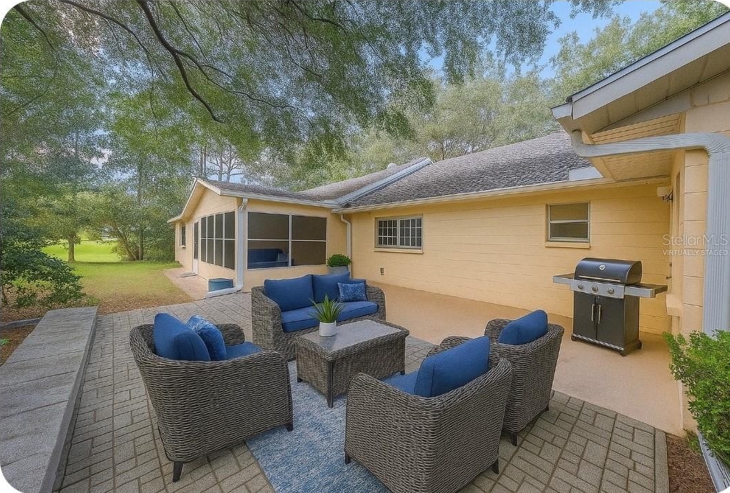One or more photo(s) has been virtually staged. Welcome to this charming Bostonian Villa nestled on a quiet road near the front of OTOW. This 2 bedroom, 2 bath home offers an inviting and easy-living layout with a spacious kitchen perfect for cooking, casual meals, or hosting friends. Enjoy your morning coffee in peace on the front porch, overlooking the park, and unwind after a day of golf or community activities while grilling and gathering on the extended concrete and paver patio. A bonus room off the back of the home provides flexible space-currently used as an office, but ideal for crafting, fitness, or a cozy reading lounge. Mature shade trees enhance the outdoor setting and add a sense of privacy and comfort. The 2 car garage provides plenty of storage for golf clubs, hobby supplies, or seasonal decor. Here you are surrounded by friendly neighbors and an abundance of amenities to enjoy-golf, fitness centers, pools, clubs, walking paths and more. Experience the lifestyle that On Top Of The Wold is known for: relaxed, active, and community-centered living. HVAC 2020, ROOF 2020, Windows 2009, 2023 Heat Pump GUEST BEDROOM HAS A MURPHY BED. WATER FILTER FOR DRINKING WATER - IS CONNECTED TO REFRIGERATOR FOR ICE. (UNDER SINK IN KITCHEN)