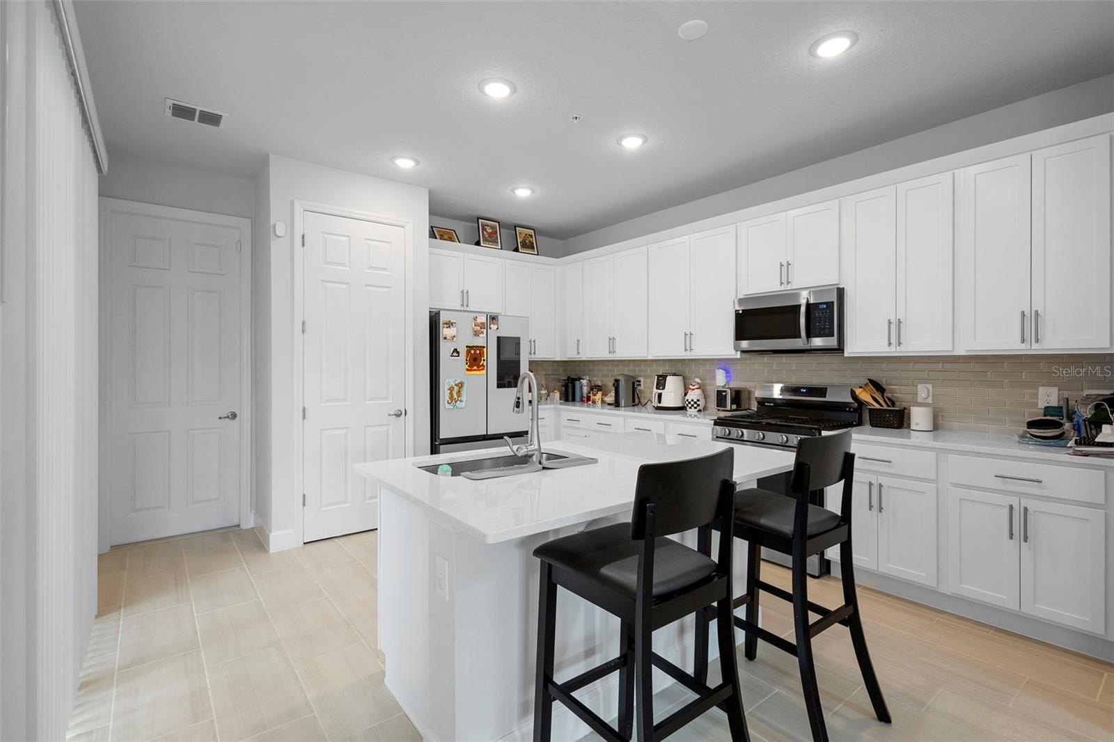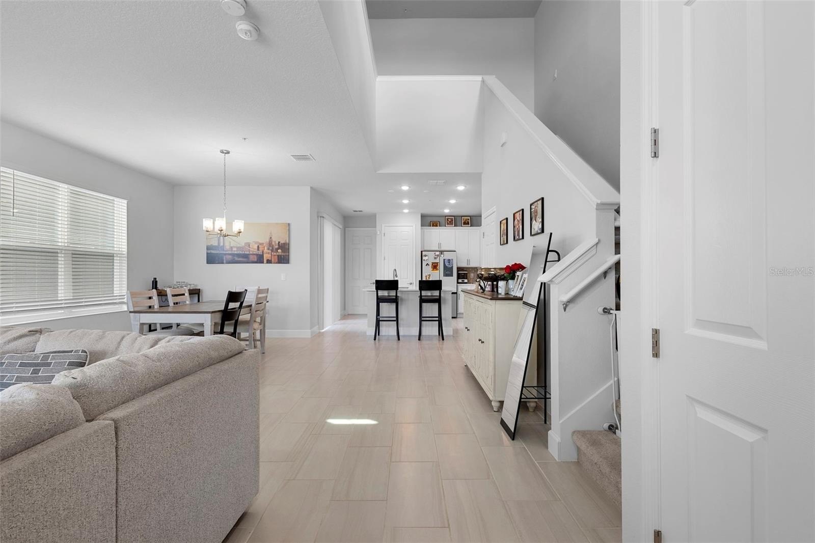 Built in 2024, this 3-bedroom, 2.5-bathroom home blends style, functionality, and convenience. Step inside and be greeted by tile flooring throughout the entire first floor, creating a sleek and durable foundation for your main living spaces. The open-concept kitchen is a true showstopper, featuring stainless steel appliances, an island with seating, wood cabinetry, and a modern tile backsplash—perfect for both everyday living and entertaining.