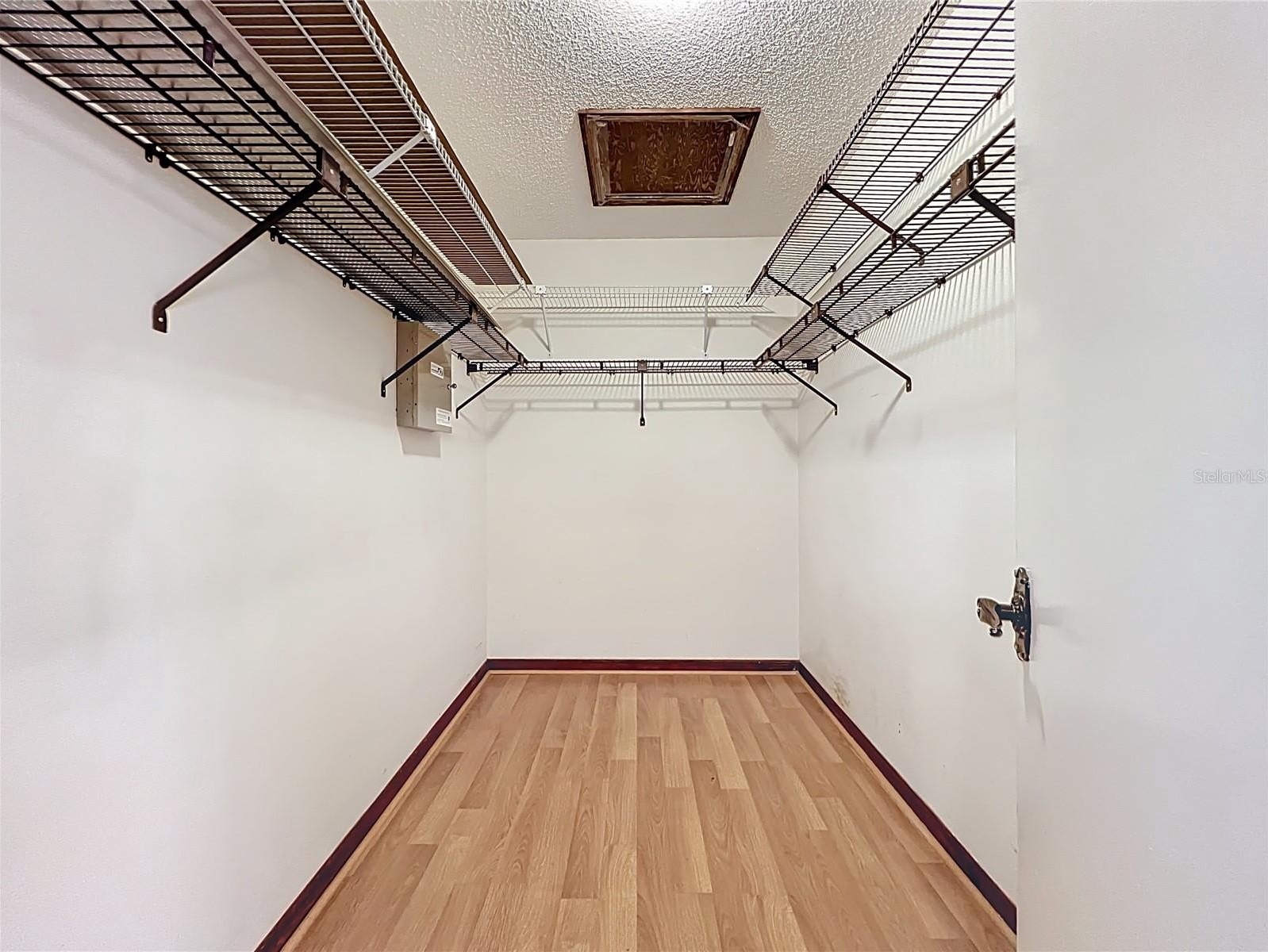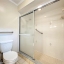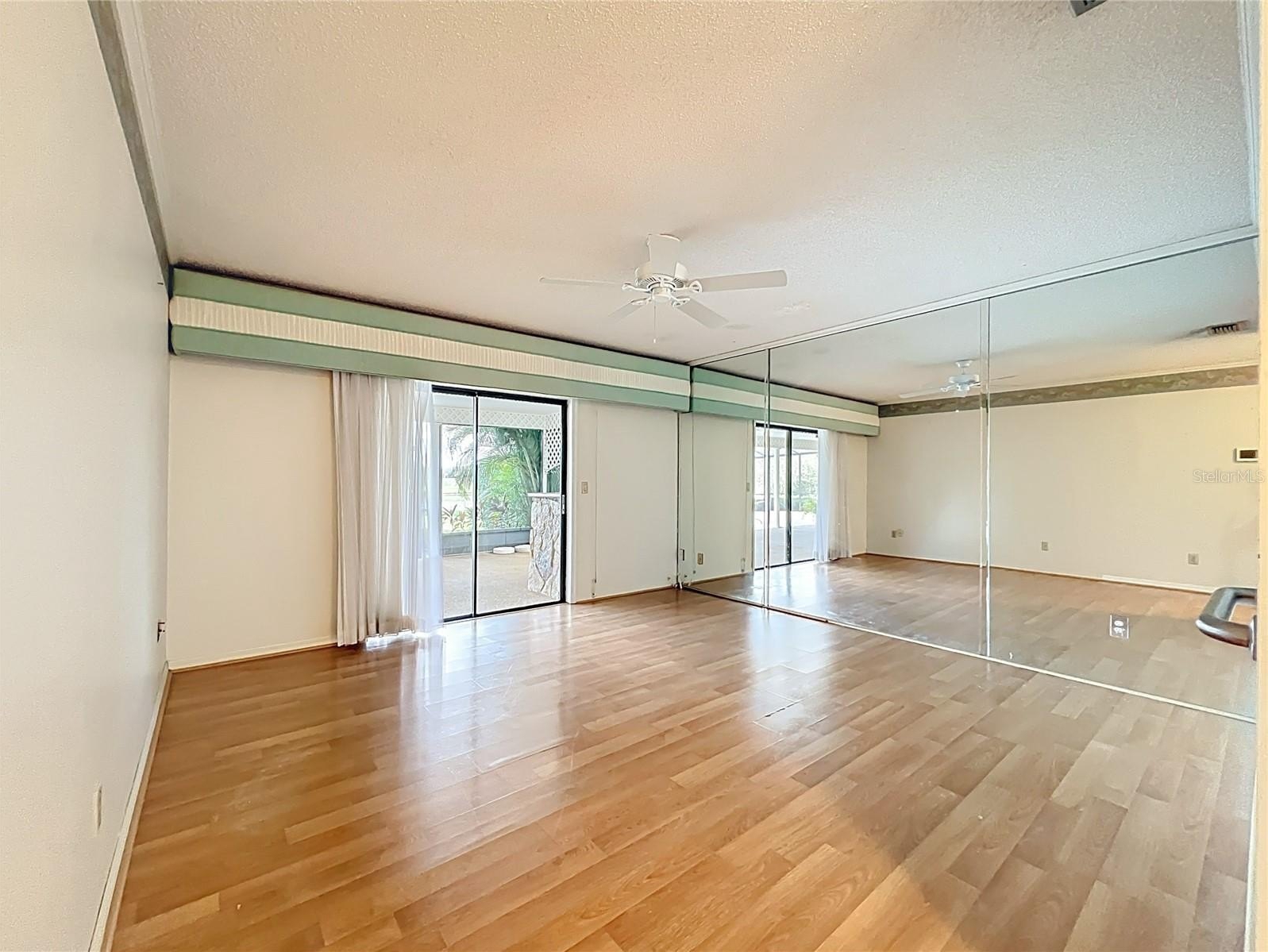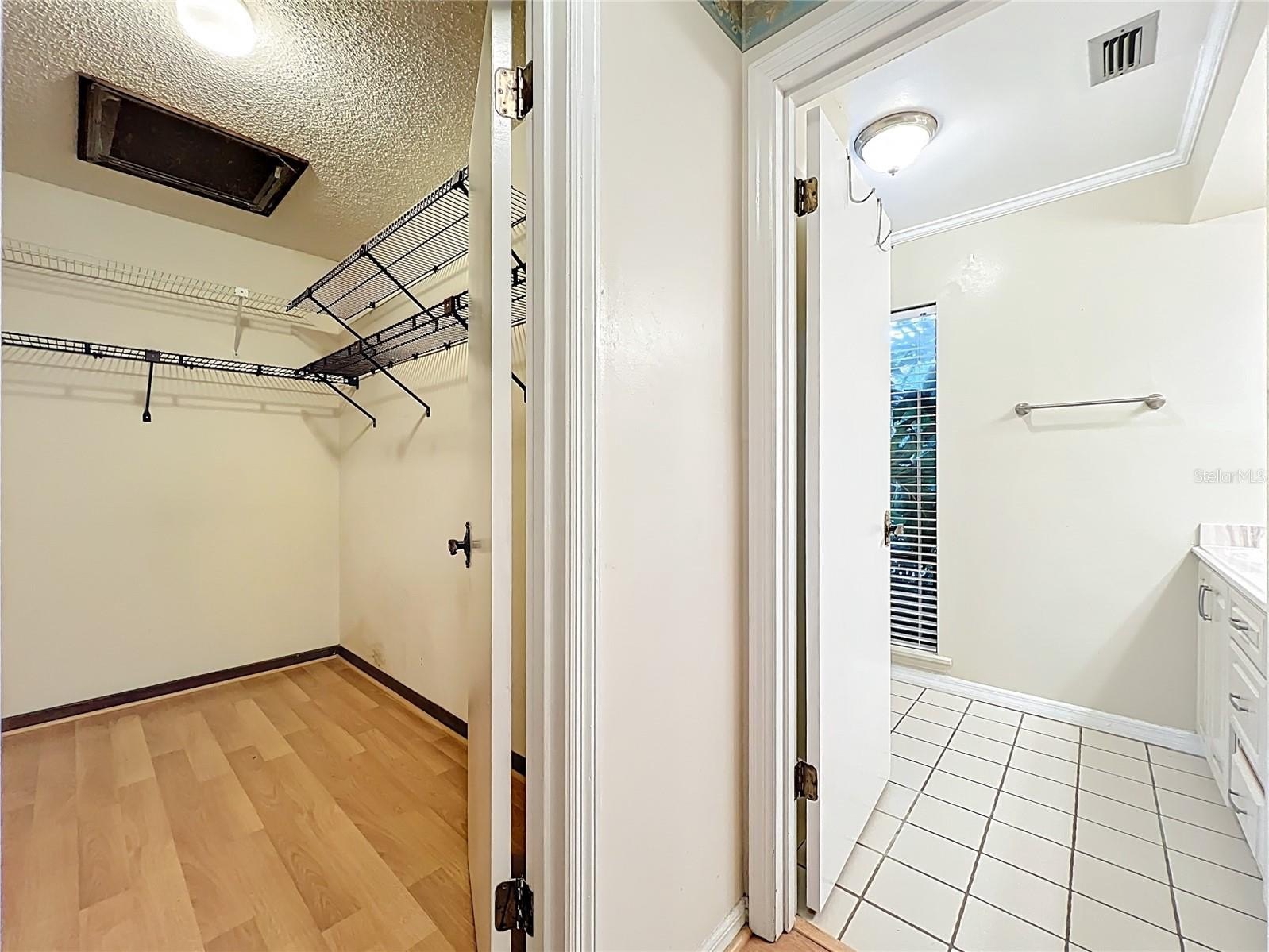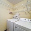 The primary suite offers direct patio access, a customized walk-in closet, and an bathroom with double vanities, a glass walk-in shower, and tile flooring. Additional features include an inside laundry room (washer and dryer included) and generous storage throughout.
