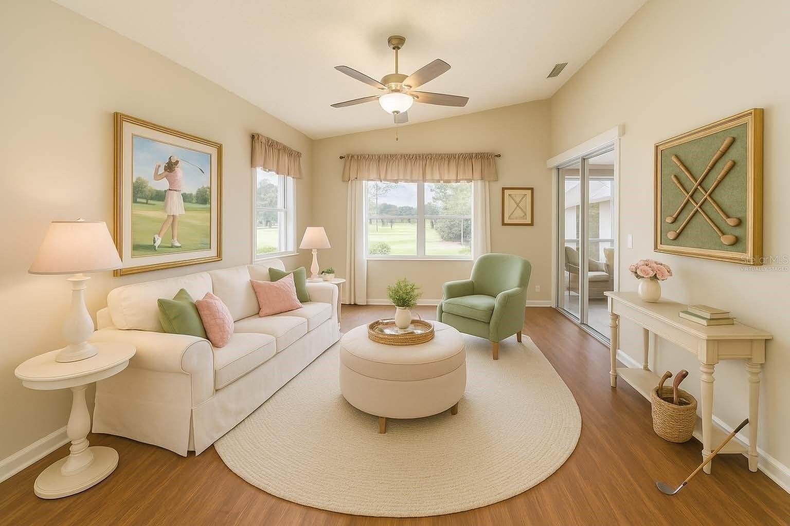 Get ready to pack your bags because this gem is MOVE-IN READY! This charming 2Bd/2BA home is sparkling clean and flaunts an open floor plan that is very inviting. Furry friends will love the private fenced backyard, perfect for their outdoor adventures! Inside, you'll find luxury-engineered vinyl plank flooring that’s as easy on the eyes as it is to clean. The kitchen and dining areas are cozy, and the living area flows right into the backyard with sliding glass doors that lead to the lanai—a perfect spot for sipping morning coffee while soaking up the early sunshine! The Master Bedroom boasts a spacious closet and those same great sliding glass doors to the screened-in lanai. The guest bedroom has a front yard view and a roomy closet to store all your goodies, and the guest bathroom has had a recent makeover with a chic new shower. This home features a newer roof (April 2017), an updated A/C and hot water tank (2021), and a shiny new refrigerator, this home is like a breath of fresh air—with new lighting, ceiling fans, and a splash of paint to boot! Outside, enjoy low-maintenance living with irrigation systems, rain gutters, and attractive stone edging. Situated in the fabulous Ocala Palms, a gated active 55+ community, you’ll find an 18-hole golf course for golf lovers and a swanky clubhouse that’s 19,000 square feet of fun! Get ready for a fitness center, Olympic-sized outdoor pool, hot tub, arts & crafts studio, and a slew of activities from pickleball to bocce ball. Plus, it’s conveniently located near shopping, dining, and healthcare. For adventure seekers, Ocala offers year-round festivals, canoeing, and horseback riding, and is just a hop, skip, and jump from theme parks like Disney and Universal Studios!