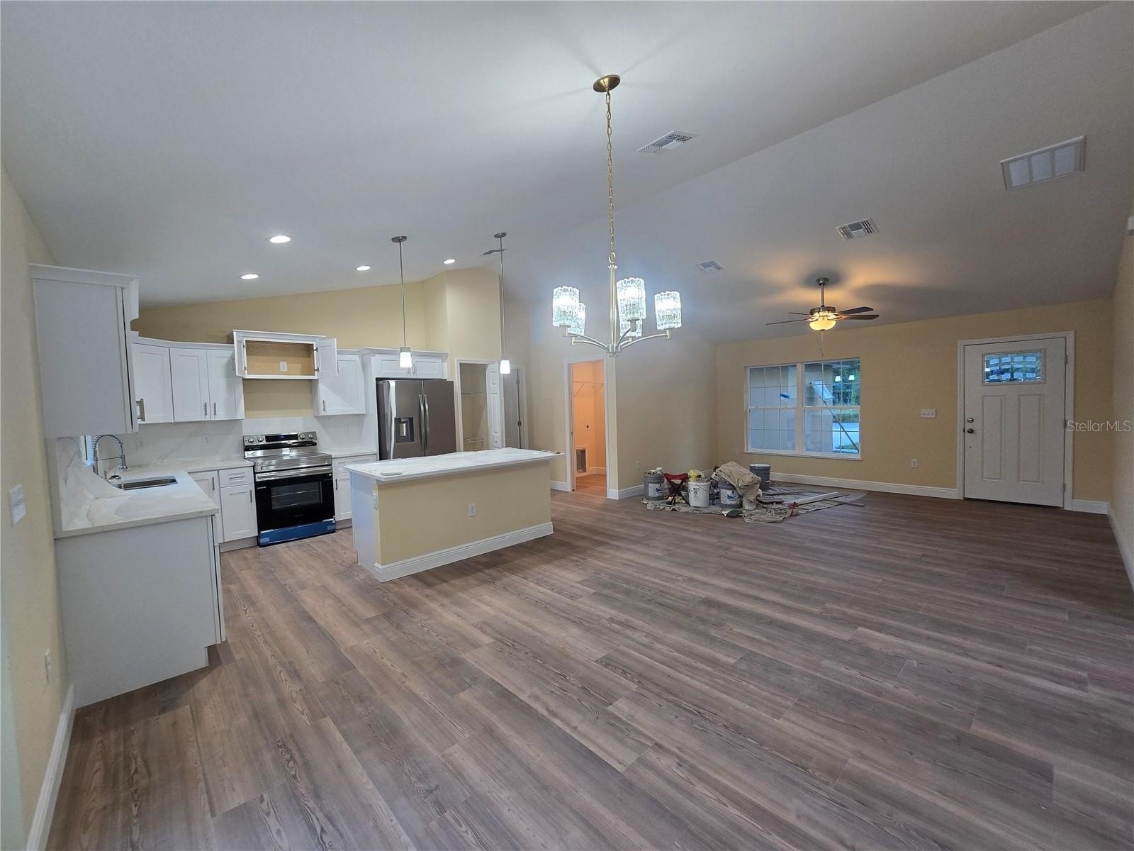 Come see this wonderfully styled, 3 bedroom, 2 bath, 2 car garage on a OVERSIZED .28 AC LOT THAT BACKS UP TO A QUIET FARM in the very popular Silver Springs Shores area. This home features a split plan, high ceilings & QUARTZ STONE counters in the KITCHEN, BATHROOMS & WINDOW LEDGES! When you step in side, you will notice the open design with tall ceilings and a split floor plan. The primary bedroom features an oversized closet & en suite bathroom with A FULLY TILED, EZ ENTRY SHOWER & linen closet. The kitchen, has whisper quiet drawers & UPGRADED cabinets with stylish knobs. Gorgeous sink with a beautiful open view. DELUXE SMART APPLIANCE PACKAGE INCLUDES Stainless steel Fridge, Dishwasher, Stove & Microwave comes with the home. A beautifully patterned Quartz counter island comes with room for chairs. Nearby, you have access to the laundry room & garage via a handy pocket door. Across the house, the secondary rooms share the bathroom and will have good space for a full size bedroom set, office, or a game room. The choices are endless! Ample closet space has been supplied as well for all of their storage needs. The .28 acre OVERSIZED LOT gives you plenty of room for all of your toys! NOT IN AN HOA so you are free to build a fence, add a pool, do what you want, how you want! On a well and septic system so NO UTILITY BILLS is also a great plus! If you install back up power in preparation for any possible outage, you will still have use of water and sewer as long as you have electric! Close enough to give you access to Belleview, Summerfield, The Villages, The Interstate and beyond. Less than 10 min to Wal-Mart, Publix, Aldi & Save a Lot, The post office, 3 auto parts stores & car washes as well as many food & medical offices nearby for ease. A short drive in either direction will lead to Ocala's downtown square or to our famous Lake Weir, where you can boat, kayak, jet ski, or enjoy a meal on the lake over looking the sunset. USDA, First Time Homebuyer & Veteran friendly! Almost completed, you can be in before the Holidays!
