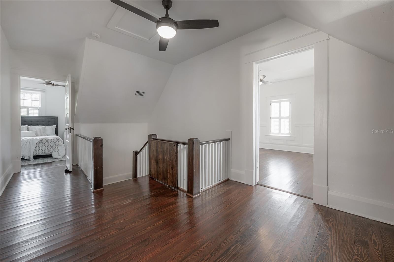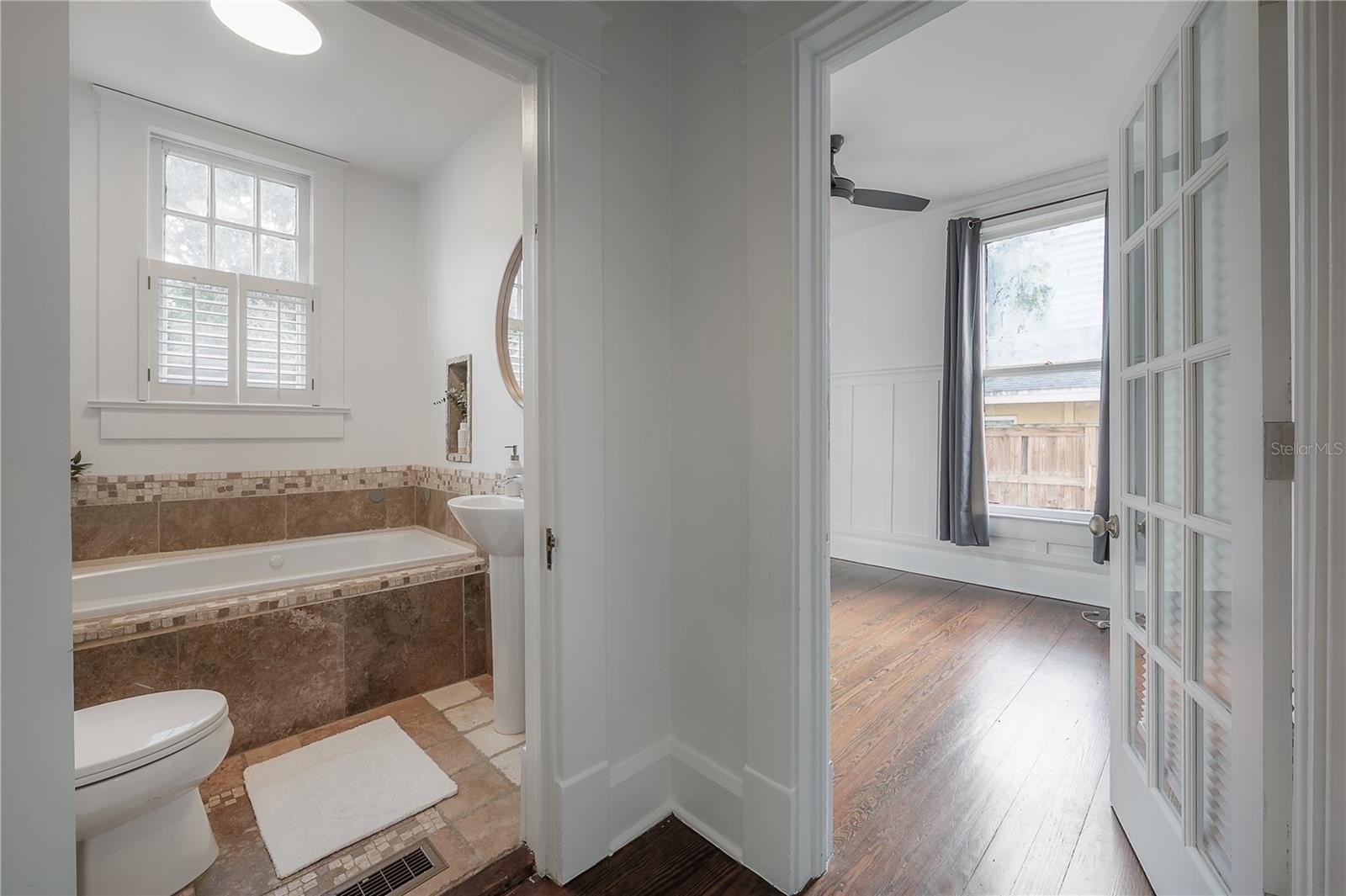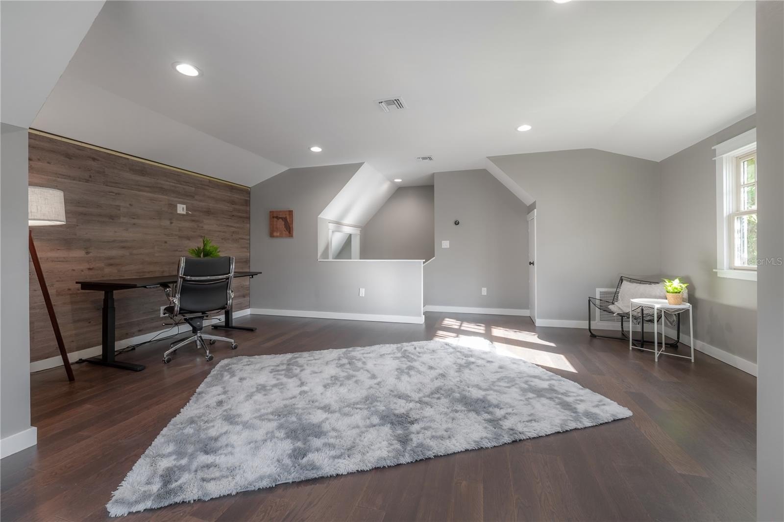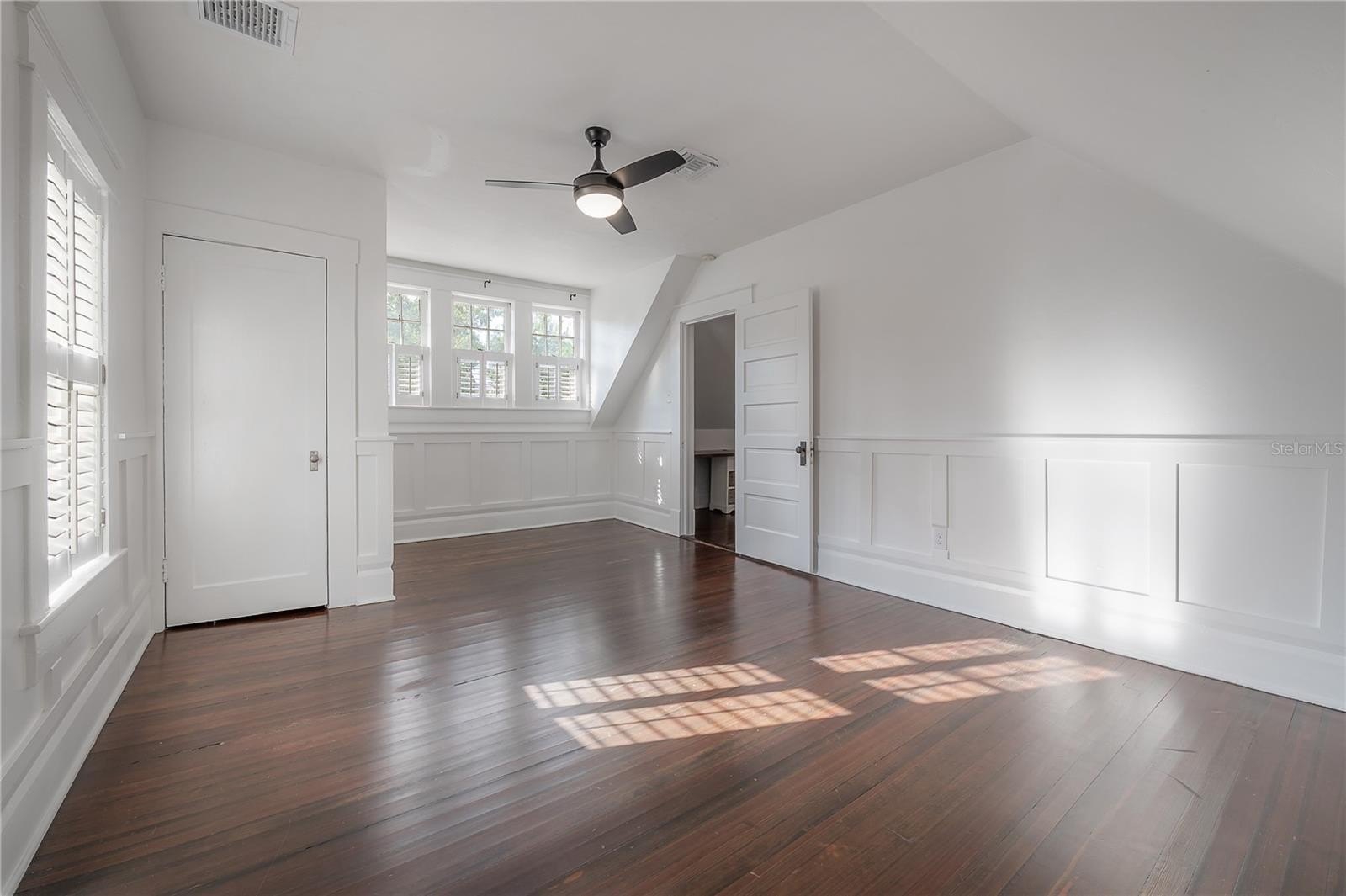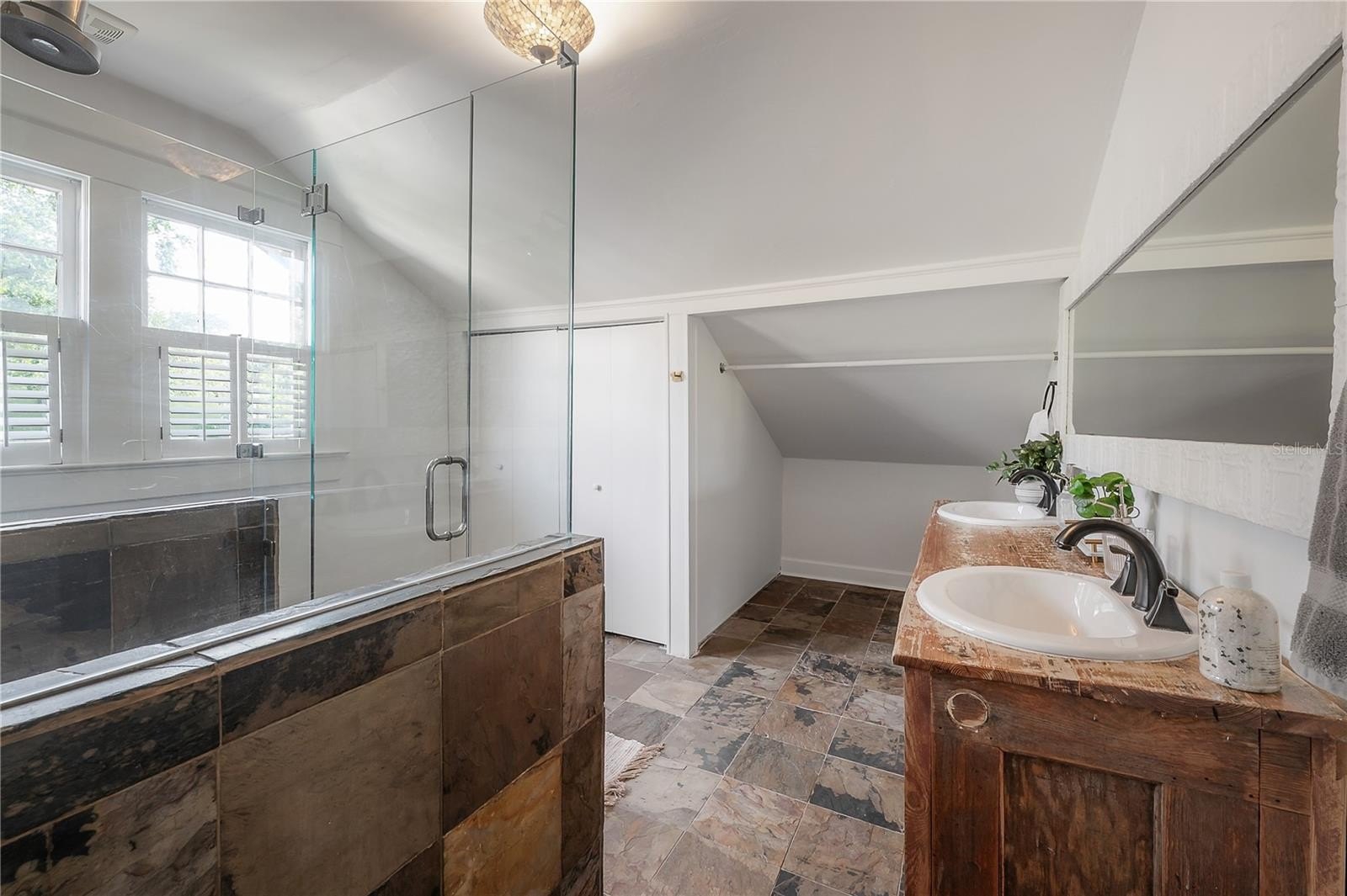 The main floor includes two full bathrooms and a versatile guest suite, ideal for visitors, a home office, or multi-generational living. Upstairs, a charming loft with built-in workstations provides an inspiring nook for work, study, or creative projects. The primary suite offers a sense of calm, complete with dual closets, built-in drawers, and a spa-inspired bath boasting an antique double vanity, rainfall shower, and slate flooring.