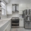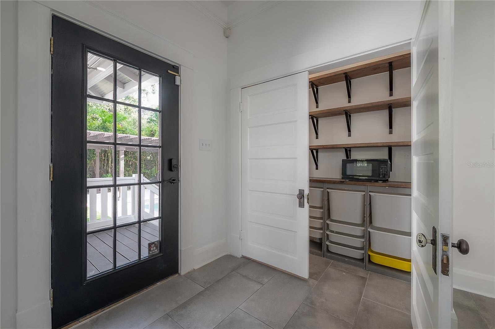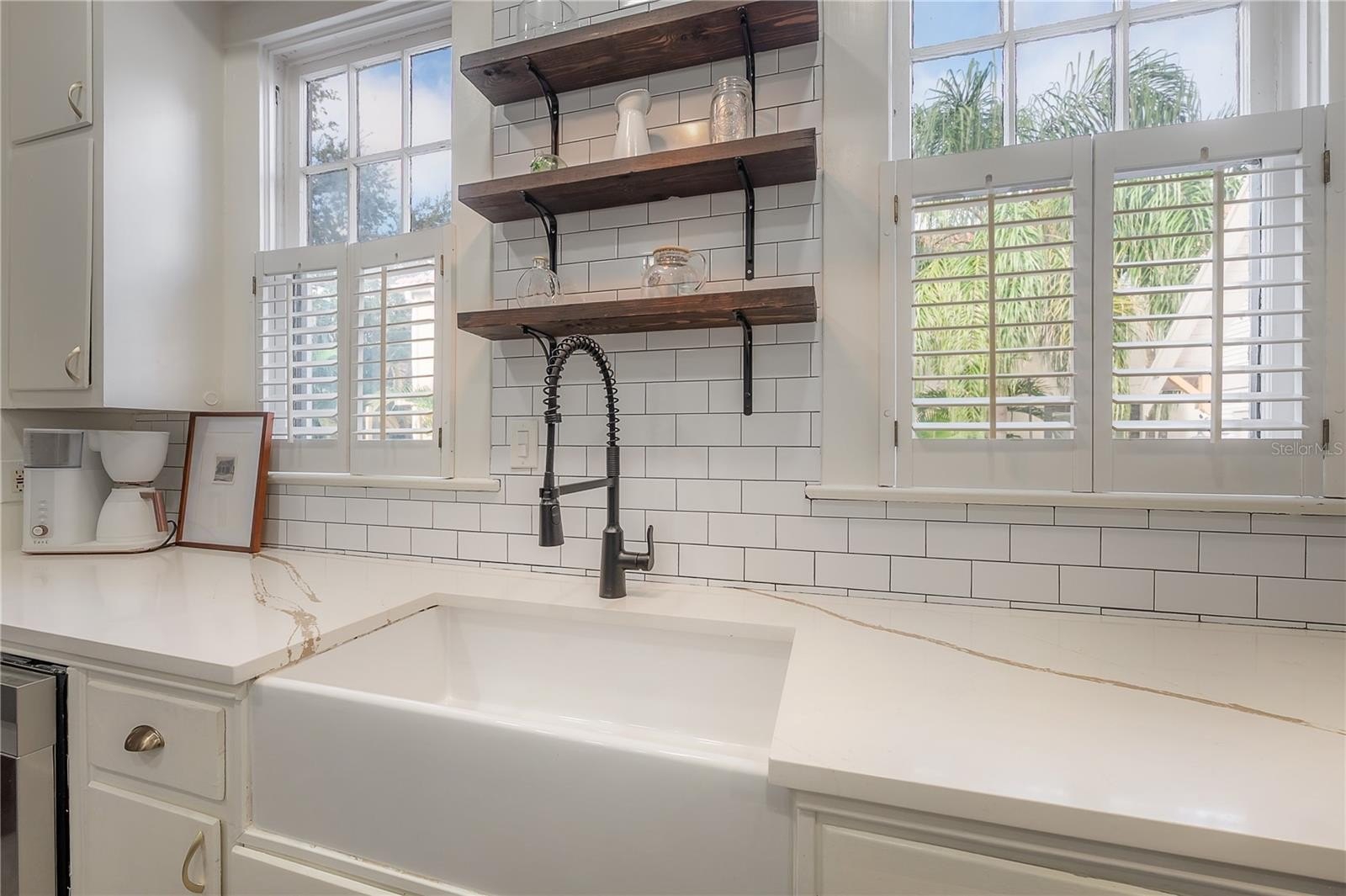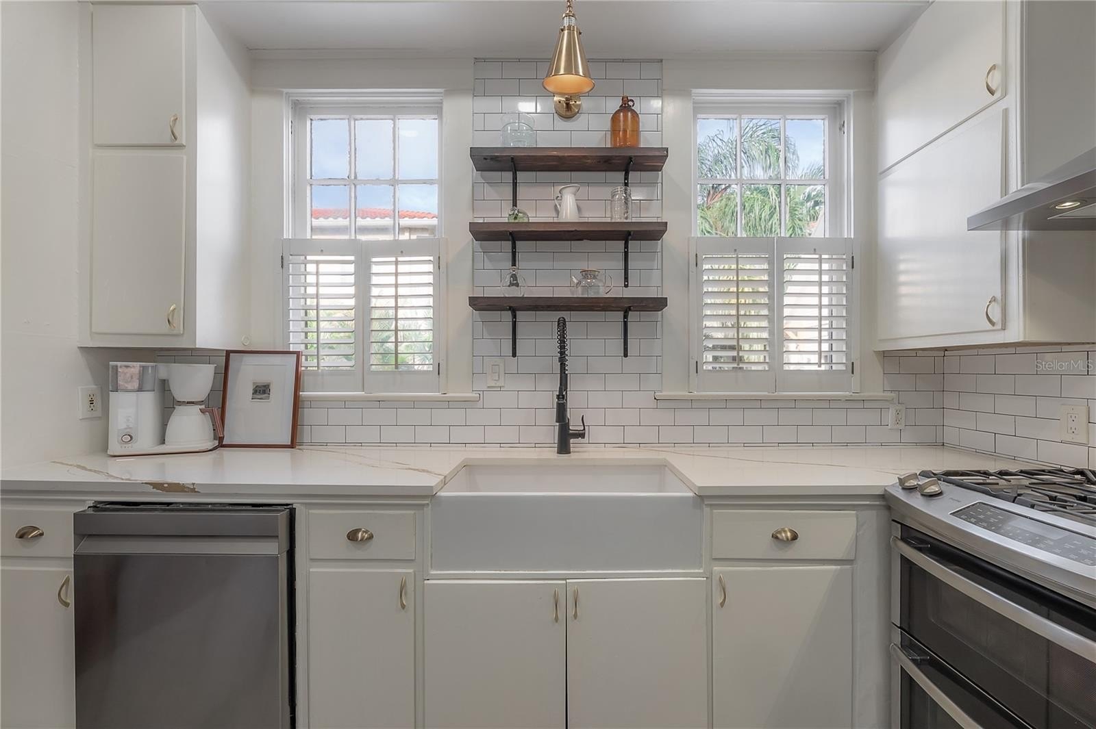 Inside, every detail tells a story. Refinished hardwood floors, a solid wood staircase, and vintage glass-paneled doors showcase timeless craftsmanship. High ceilings and classic millwork preserve the home’s history, while modern updates add a touch of luxury. The formal dining room flows seamlessly into the designer kitchen, featuring quartz countertops, a butcher block island, gas range, slate gray tile flooring, and stylish open shelving — a perfect balance of elegance and functionality.