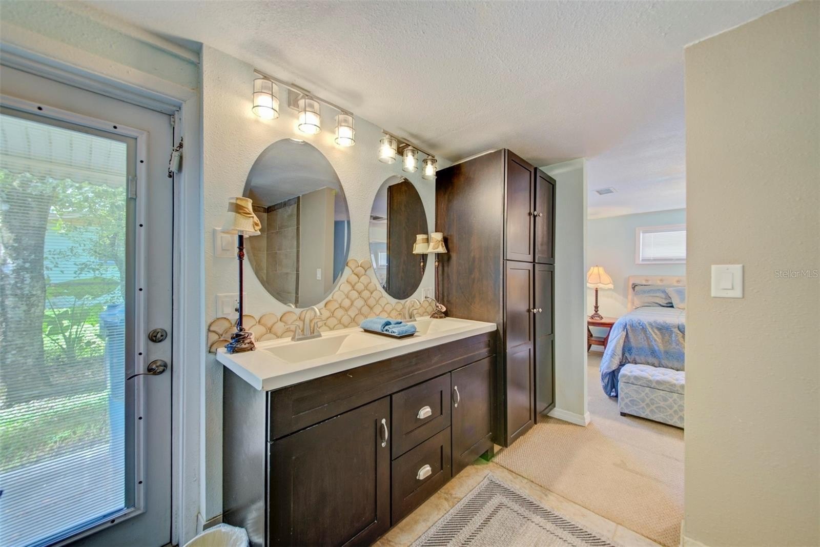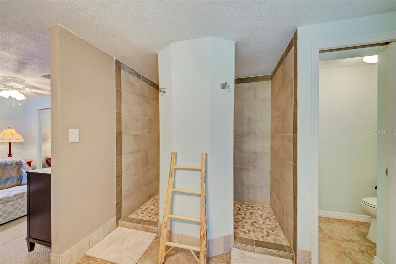 Discover the stunning primary suite, featuring a spa-inspired custom bathroom that could rival any high-end resort. From the expansive walk-in shower with dual showerheads and pebble-stone flooring, to the sleek tile work and thoughtfully designed built-ins, every detail whispers style, sophistication, and serenity. It’s the perfect space to unwind after a long day.