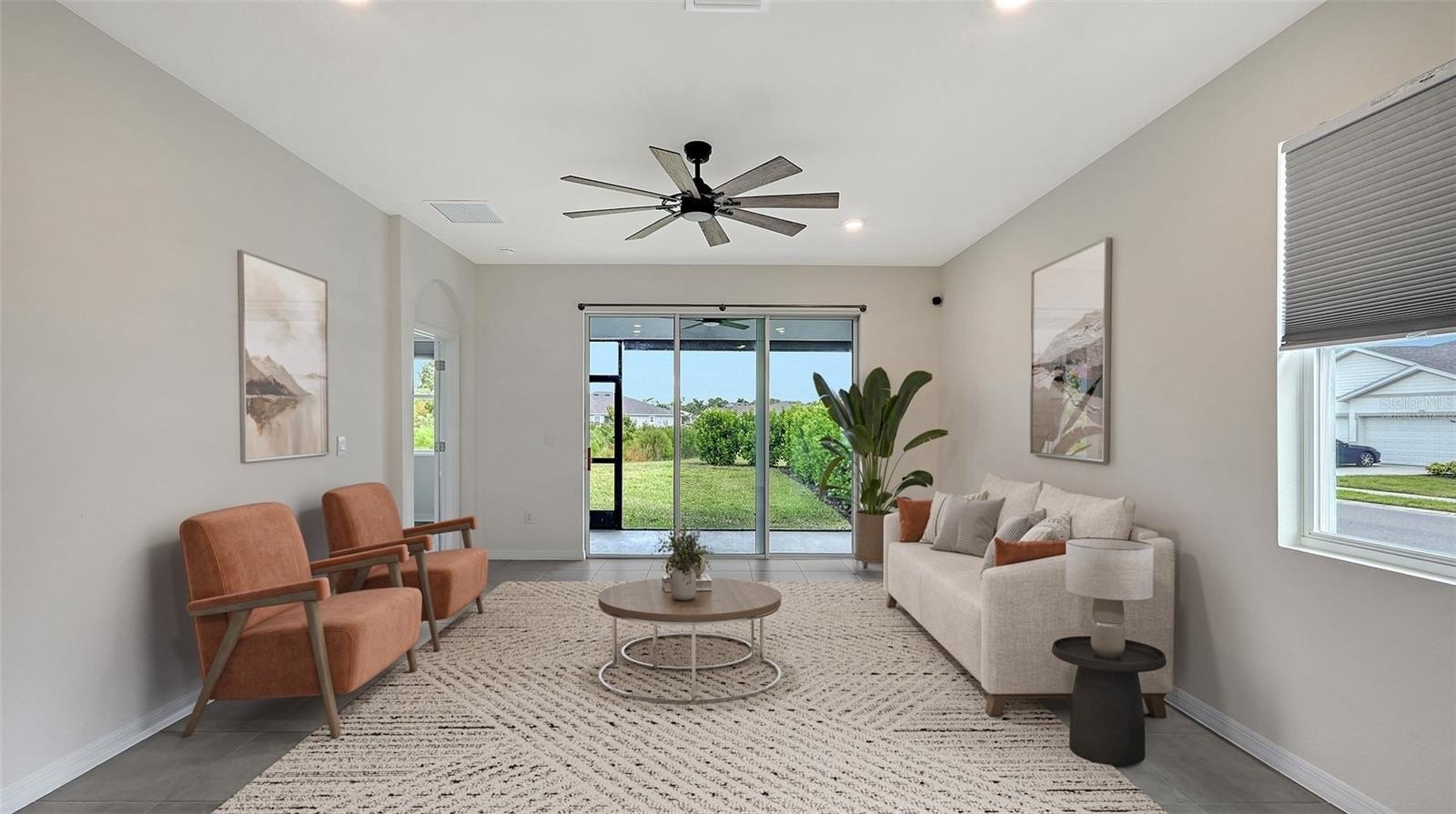 One or more photo(s) has been virtually staged. NEW PRICE! GORGEOUS villa on a corner lot with conservation nature views in the popular gated community of Coddington! Conveniently located on a cul-de-sac turn, this sparkling clean and almost new, 3 bed, 2 bath, 2 car garage villa is ready to be loved by the new owners! Beautiful stone accents on the front of the villa and a nice pathway welcomes you around to a side entry. There's an UPGRADED ceiling fan in the living room and on trend tile flooring throughout the open concept kitchen, dining and living room. The kitchen is a perfect place to entertain family and friends with gorgeous granite countertops, crown molding accents on the cabinets, a nice sized kitchen island and walk in pantry. Stainless appliances in the kitchen and a full sized washer and dryer, all new in 2023. All 3 bedrooms have UPGRADED luxury vinyl flooring, complimenting the designer inspired color tones throughout the villa. The primary bedroom has a relaxing view of the preserve, an upgraded tray ceiling and ceiling fan along with a generous sized walk in closet, ensuite bathroom with granite counters, dual vanity sinks and large walk in, tiled shower. The second bathroom also has granite countertops and a tub with shower. The screened in lanai has a view of the lush tropical preserve, upgraded ceiling fan and custom privacy shades. What a beautiful space to enjoy nature views and warm tropical breezes. The owners even UPGRADED the landscaping along the side of the backyard adding an attractive line of tropical plants for even more privacy! Lawn care is included in the low monthly HOA fee. The community of Coddington is resort style living at it's best with a heated community pool, covered cabana and playground in a perfect location near stunning gulf beaches, delicious restaurants, world class shopping, fun local activities, Lakewood Ranch and so much more! Isn't it time to make this wonderful villa yours?