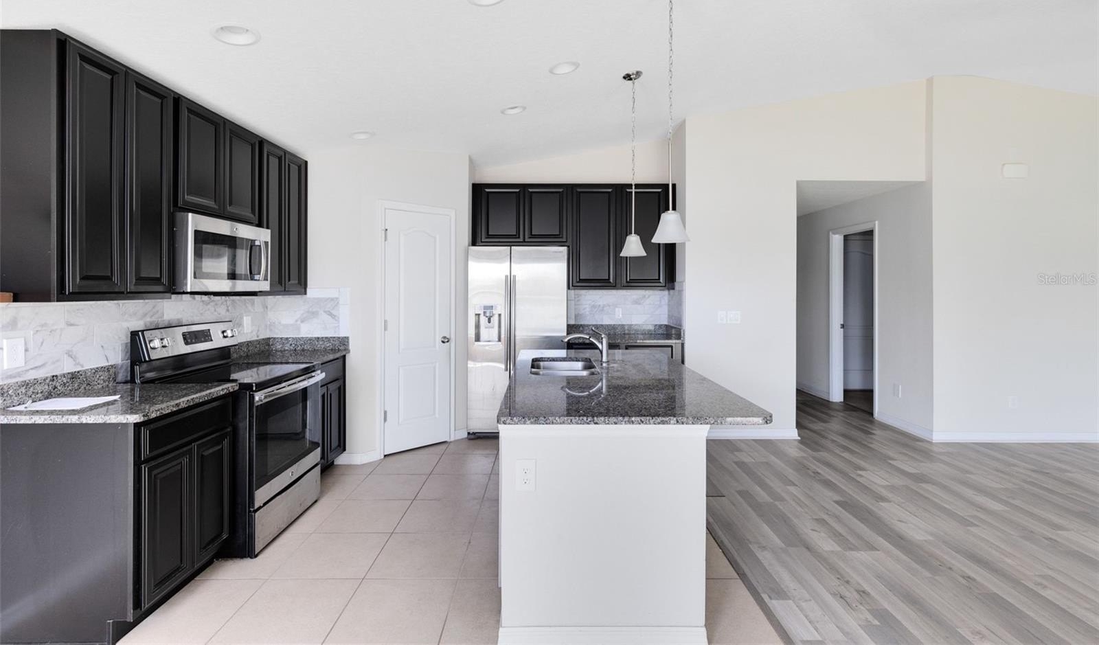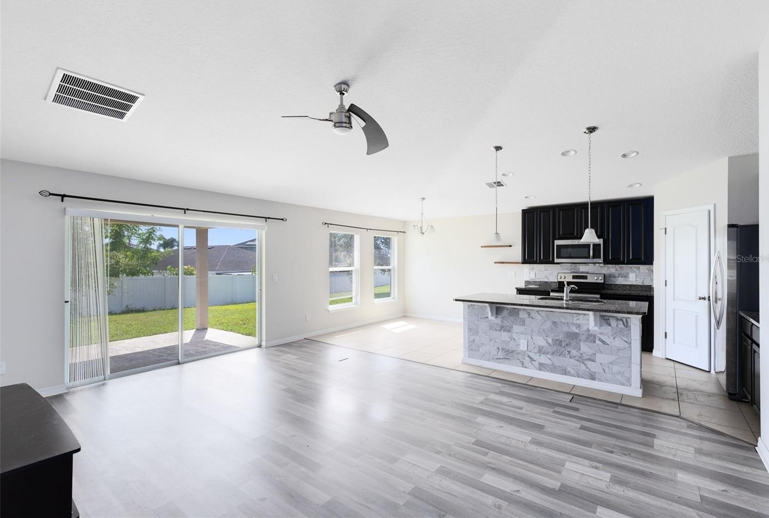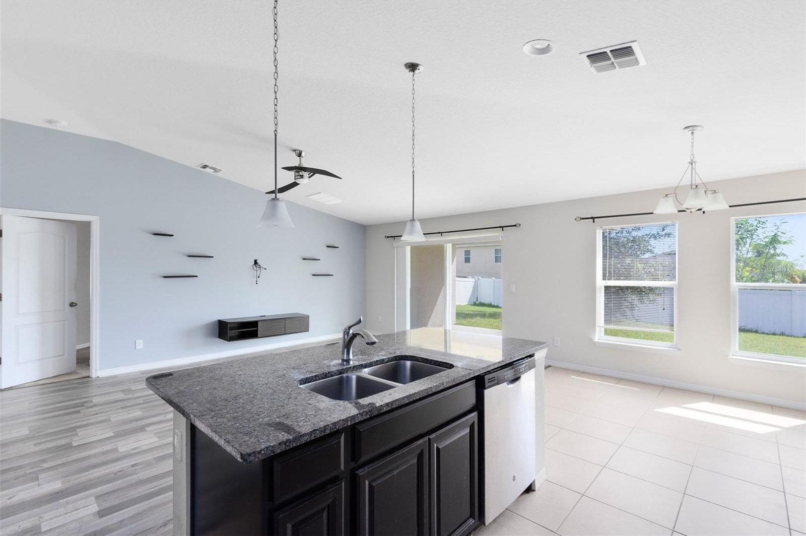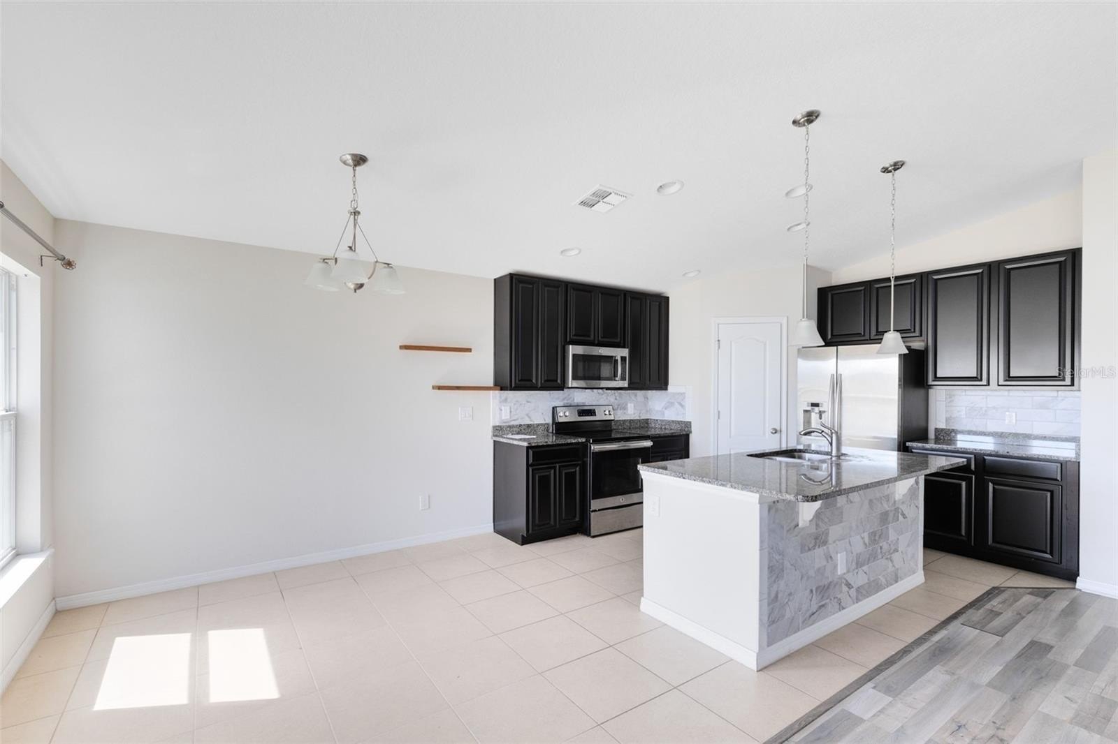 The kitchen is a true highlight, boasting granite countertops, stainless steel appliances, and ample cabinetry—perfect for both everyday living and entertaining. The spacious living and dining areas flow seamlessly to the covered back porch, creating an inviting space to relax and enjoy the outdoors.