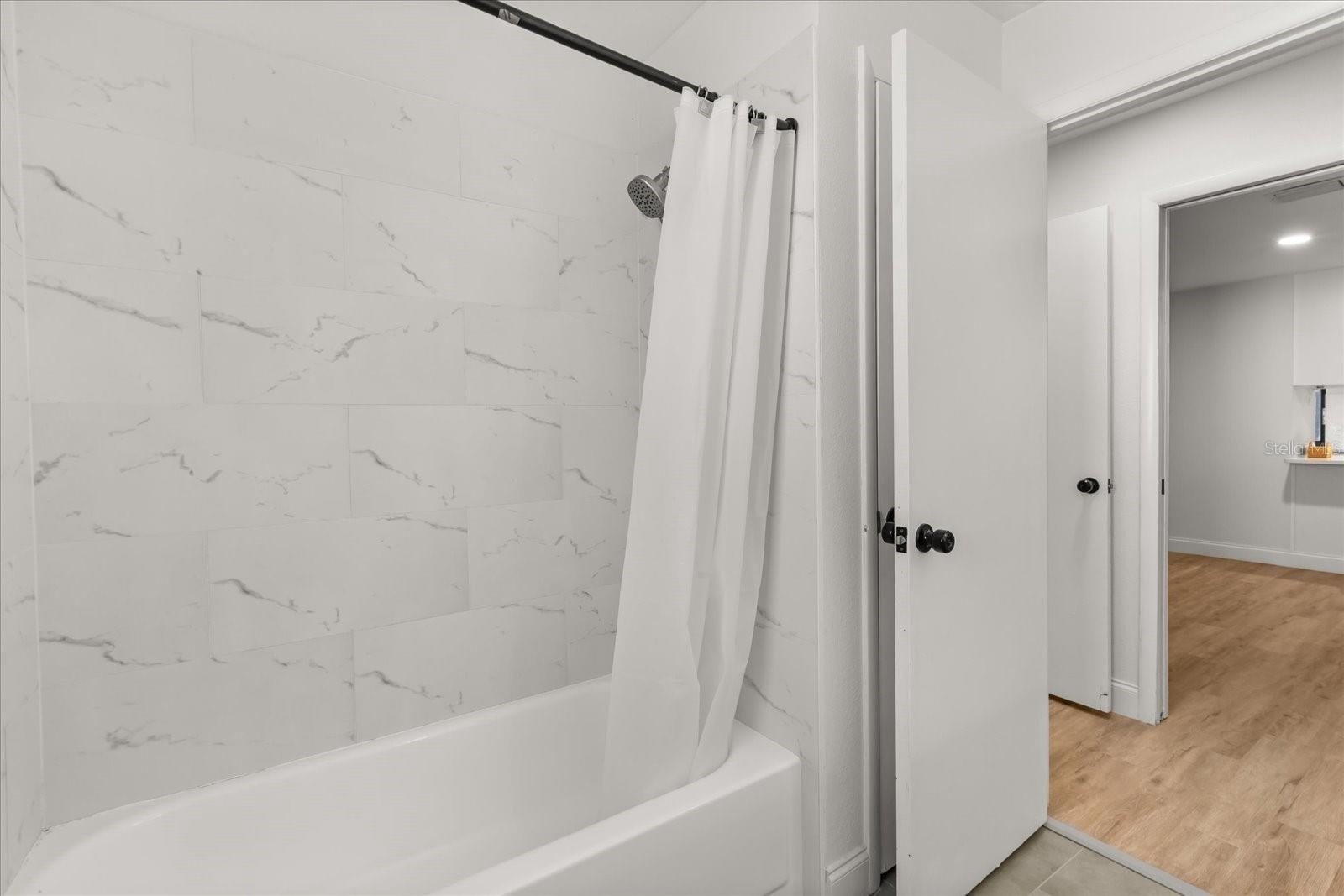The desirable three-way split floor plan is perfect for hosting family and friends. The primary suite is located on the right side of the home and features a large walk-in closet, an additional closet, and a gorgeous upgraded bathroom with quartz countertops and a marble shower. A pocket door connects the primary suite to the front bedroom—an ideal setup for a home office, nursery, or private retreat.