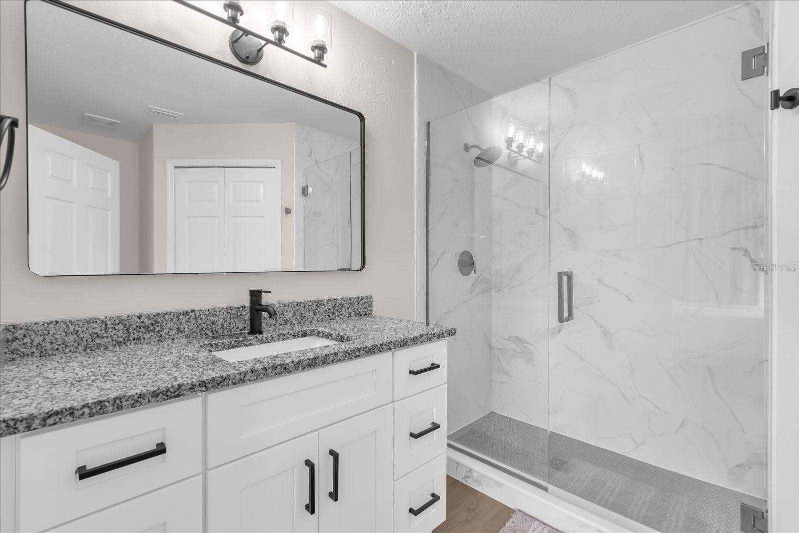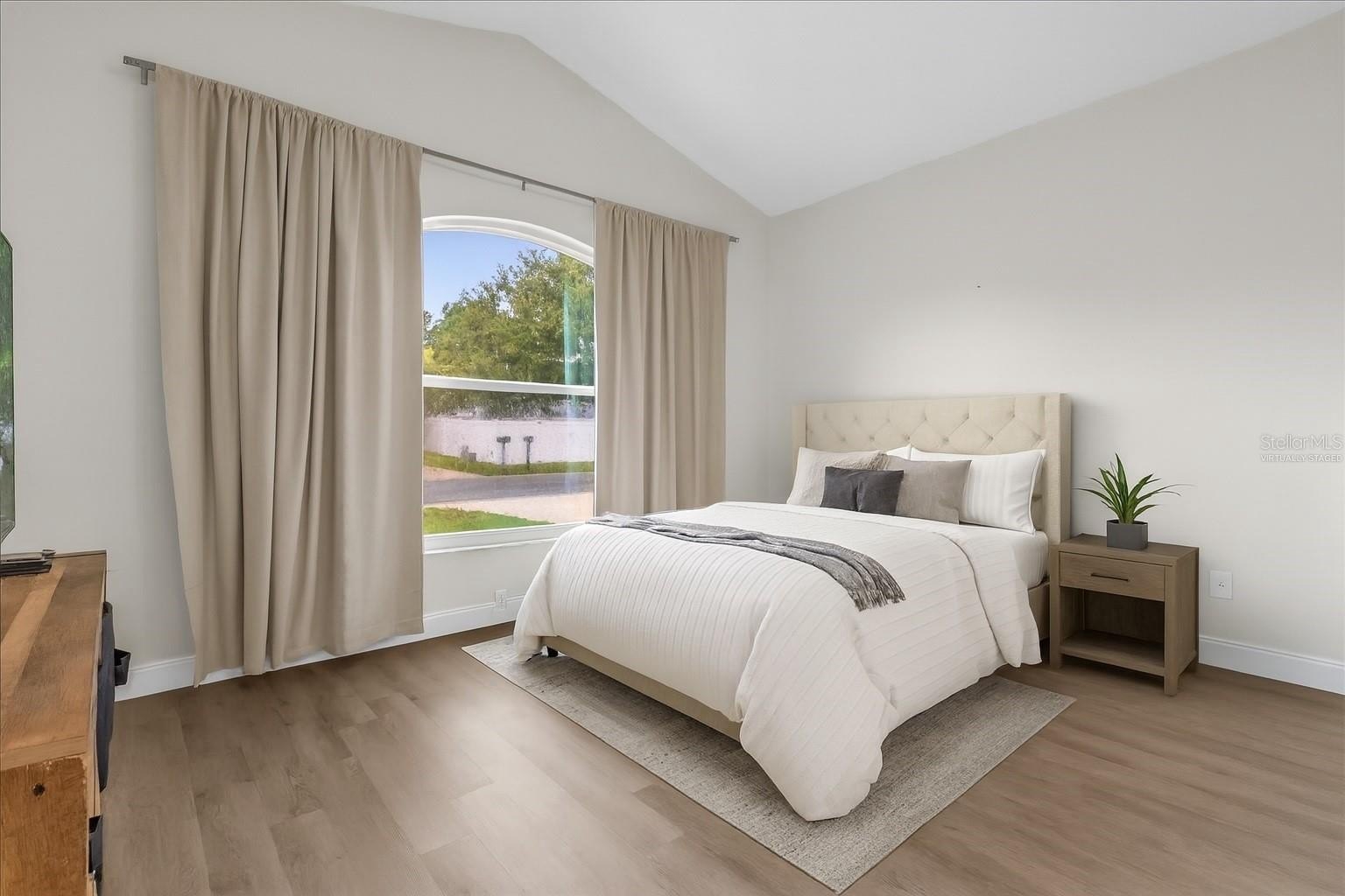 One or more photo(s) has been virtually staged. Welcome to 3622 Huntwicke Boulevard, a beautifully reimagined 3-bedroom, 2-bath home nestled in the sought-after gated community of Royal Ridge in Davenport. Fully renovated in 2024, this single-story residence combines modern elegance with everyday comfort, offering a thoughtfully designed split-bedroom layout that flows effortlessly beneath soaring vaulted ceilings. Step inside to discover warm luxury vinyl plank flooring stretching throughout the home, setting the stage for the stunning kitchen at its heart—featuring gleaming quartz countertops, Whirlpool stainless steel appliances, soft-close shaker cabinets, a deep farmhouse sink, a natural gas range, and striking hardware that perfectly blends style and function. The spacious living room is filled with natural light, creating an inviting space ideal for both relaxing evenings and lively gatherings. The primary suite is a true retreat, highlighted by custom arched windows, a vaulted ceiling, a walk-in closet, and a spa-like en-suite bath complete with granite countertops and a sleek frameless glass shower. Two additional bedrooms provide generous space and comfort, while the updated second bathroom showcases clean lines and modern fixtures. Step outside to a private, fully fenced backyard with a cozy patio—perfect for weekend barbecues, morning coffee, or unwinding after a long day. Situated just minutes from Posner Park’s shopping and dining and offering quick access to I-4, this home delivers on location, luxury, and lifestyle. Don’t miss your chance to make this turnkey beauty yours—schedule your private tour today.